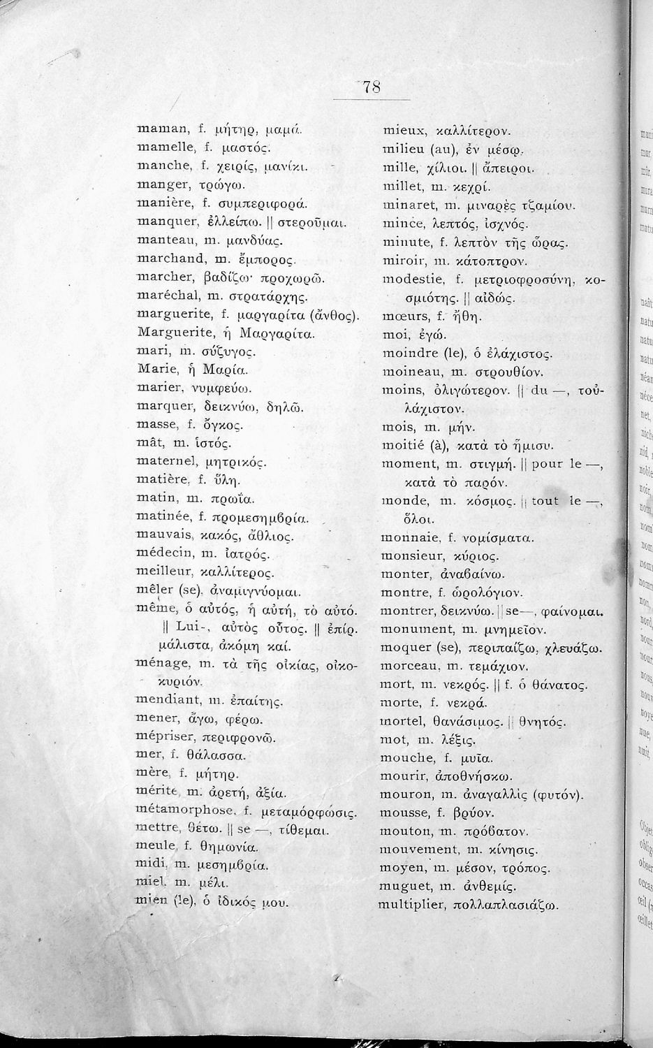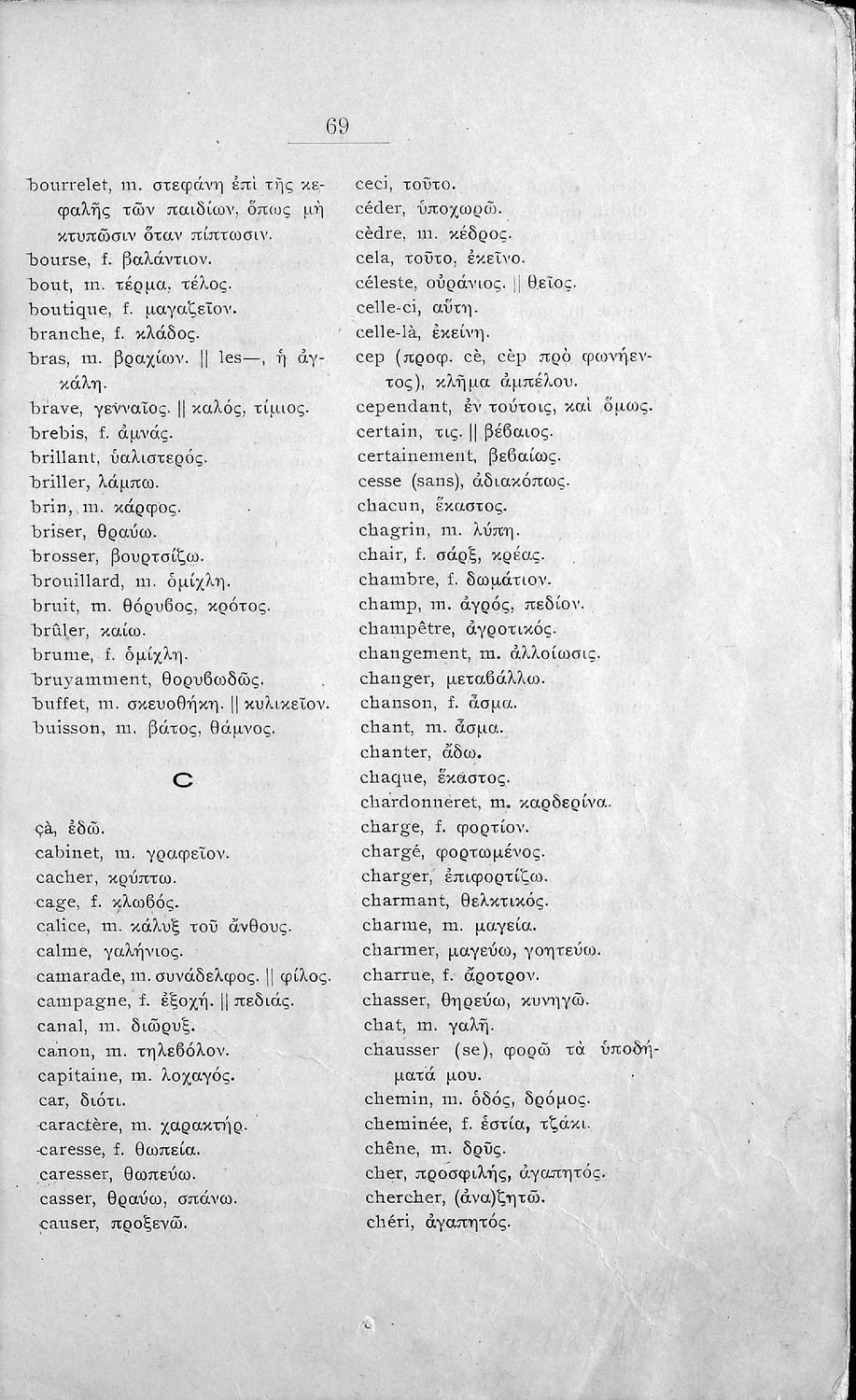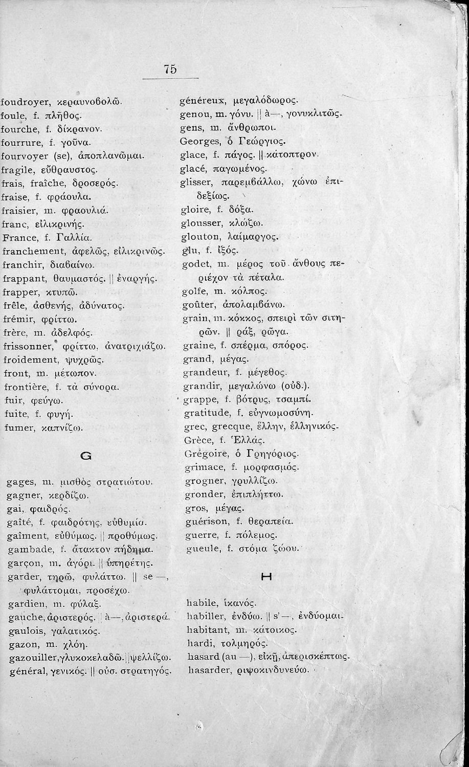 Σχολικό εγχειρίδιο Γαλλικών για τις Β’ και Γ’ Ελληνικού και Αστικού Σχολείου και Παρθεναγωγείου που περιλαμβάνει ασκήσεις προφοράς, συνομιλίας και γραμματικής, και λεξιλόγιο.