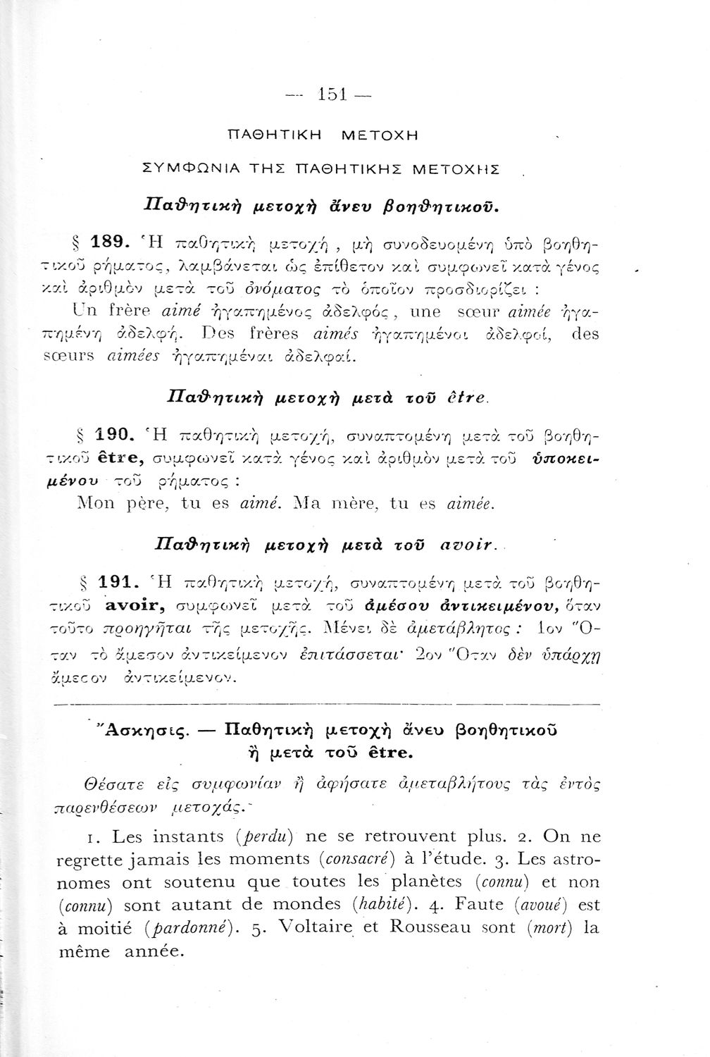 Γραμματική της Γαλλικής Γλώσσης προς χρήσιν πασών των τάξεων των Γυμνασίων και των αντιστοίχων τάξεων των λοιπών Σχολείων της Μέσης Εκπαιδεύσεως