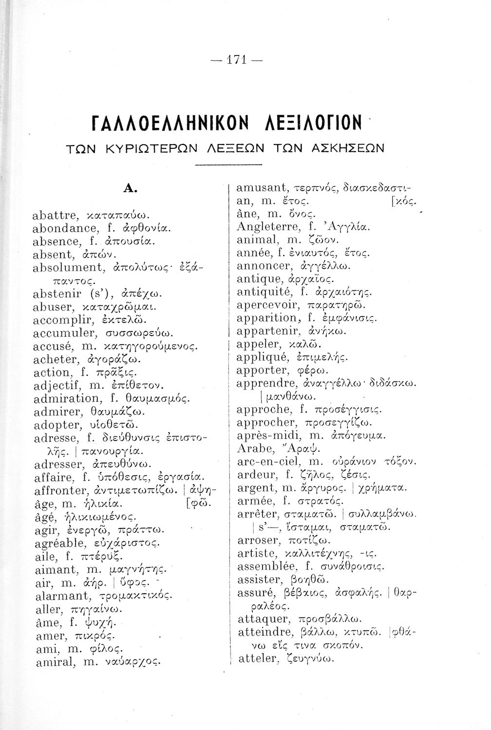 Γραμματική της Γαλλικής Γλώσσης προς χρήσιν πασών των τάξεων των Γυμνασίων και των αντιστοίχων τάξεων των λοιπών Σχολείων της Μέσης Εκπαιδεύσεως
