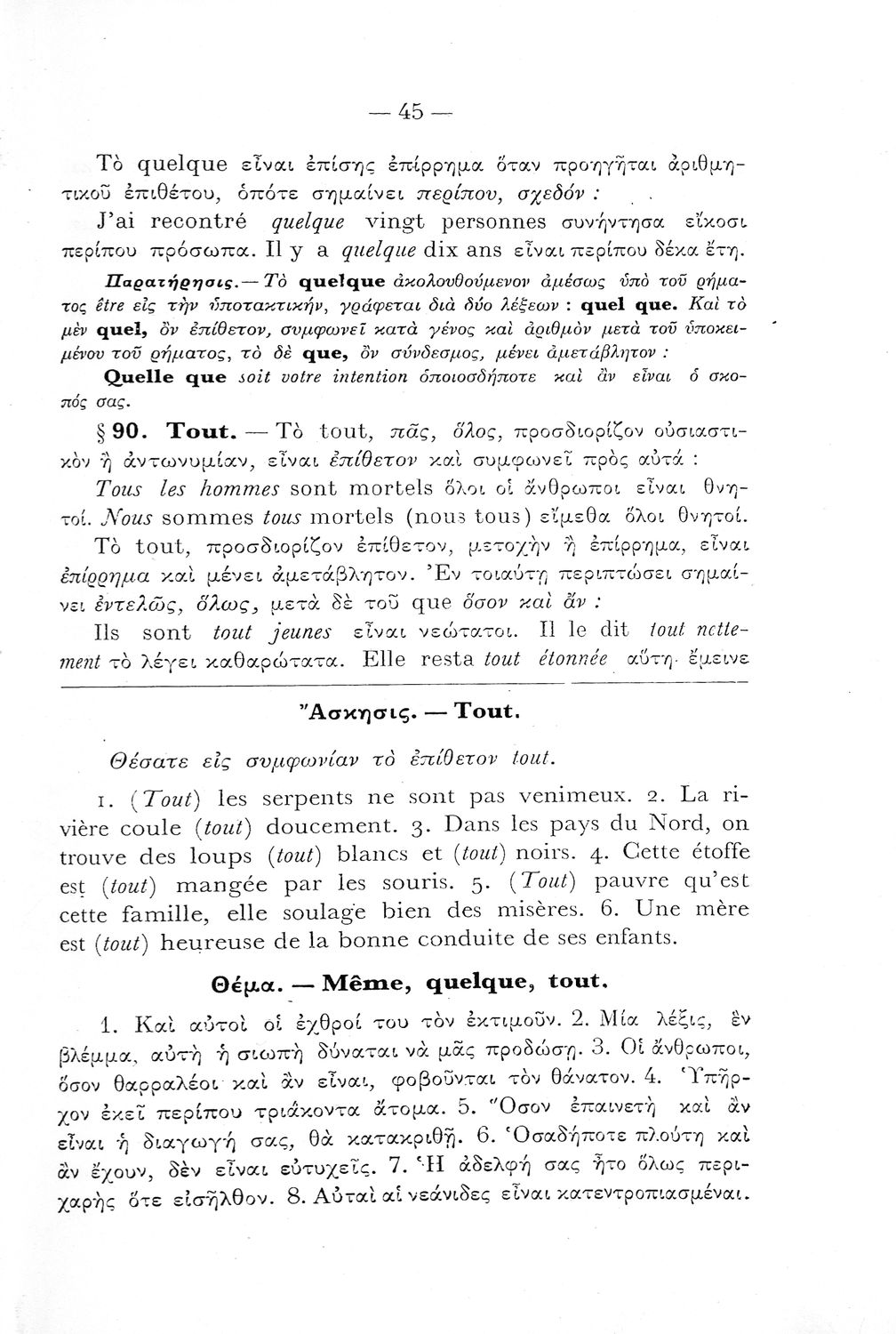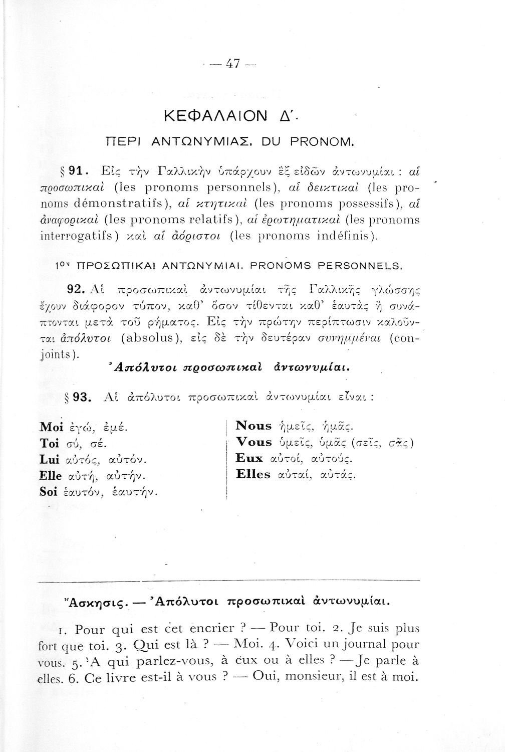 Σχολικό εγχειρίδιο Γαλλικών Γυμνασίου που περιέχει τους βασικούς κανόνες γραμματικής και συντακτικού, κείμενα για τη διδασκαλία τους, λεξιλόγιο και ασκήσεις.
