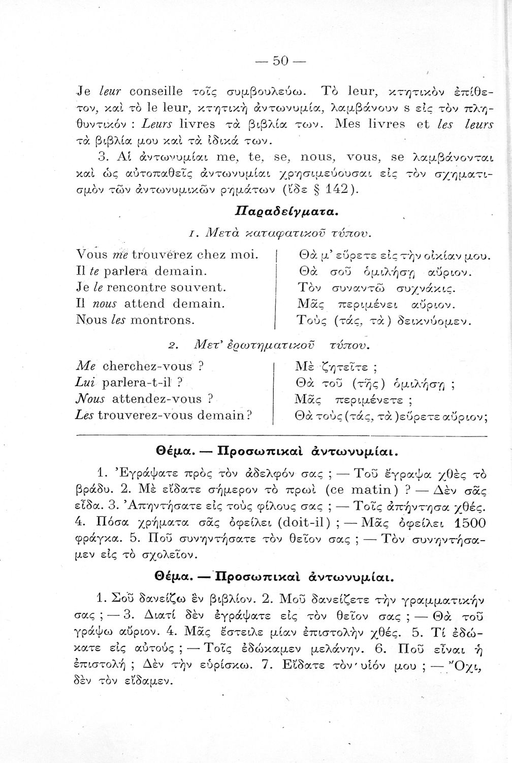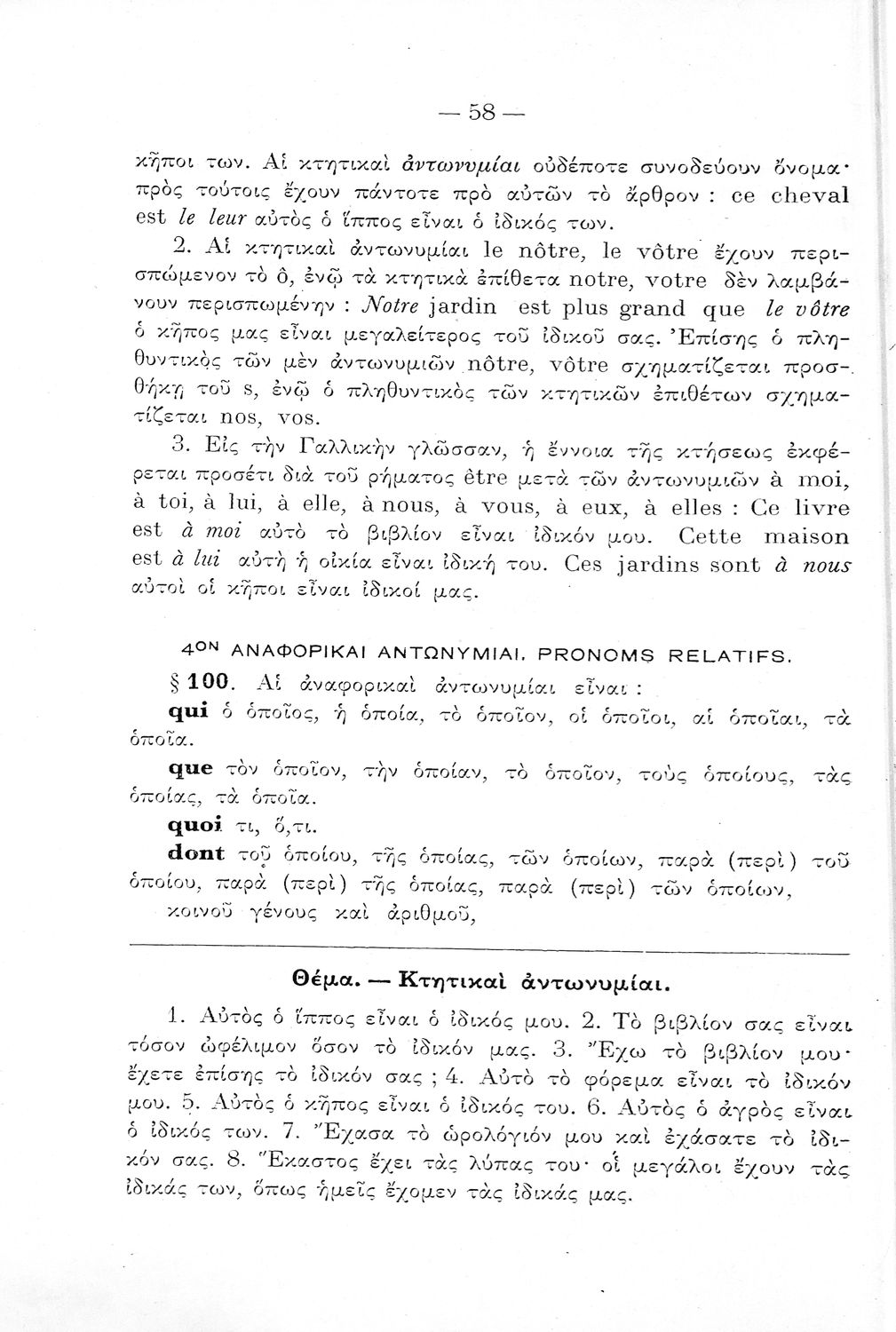 Κωδικός αναγνώρισης: 01-17308 Τίτλος: Γραμματική της Γαλλικής Γλώσσης προς χρήσιν πασών των τάξεων των Γυμνασίων και των αντιστοίχων τάξεων των λοιπών Σχολείων της Μέσης Εκπαιδεύσεως Συγγραφέας: Θεόδωρος. Γ. Κύπριος Μέγεθος και υπόστρωμα: Σχολικό εγχειρίδιο, 22εκ., μαλακό εξώφυλλο, 199 σελίδες. |