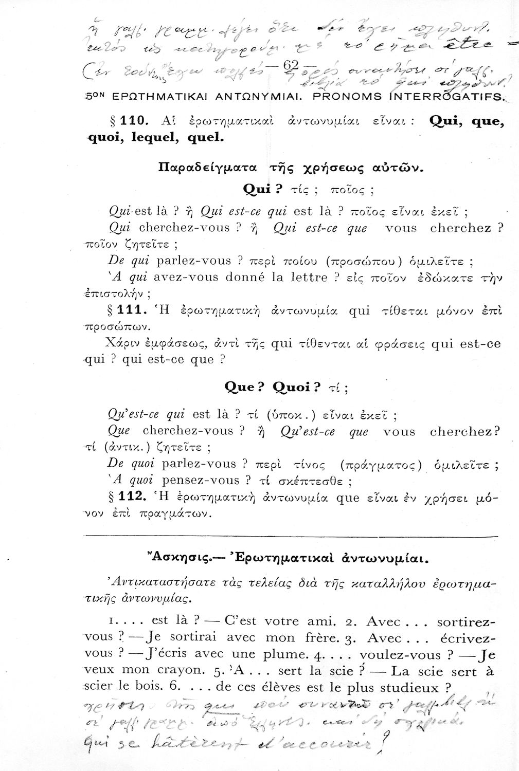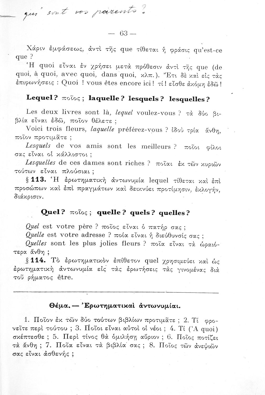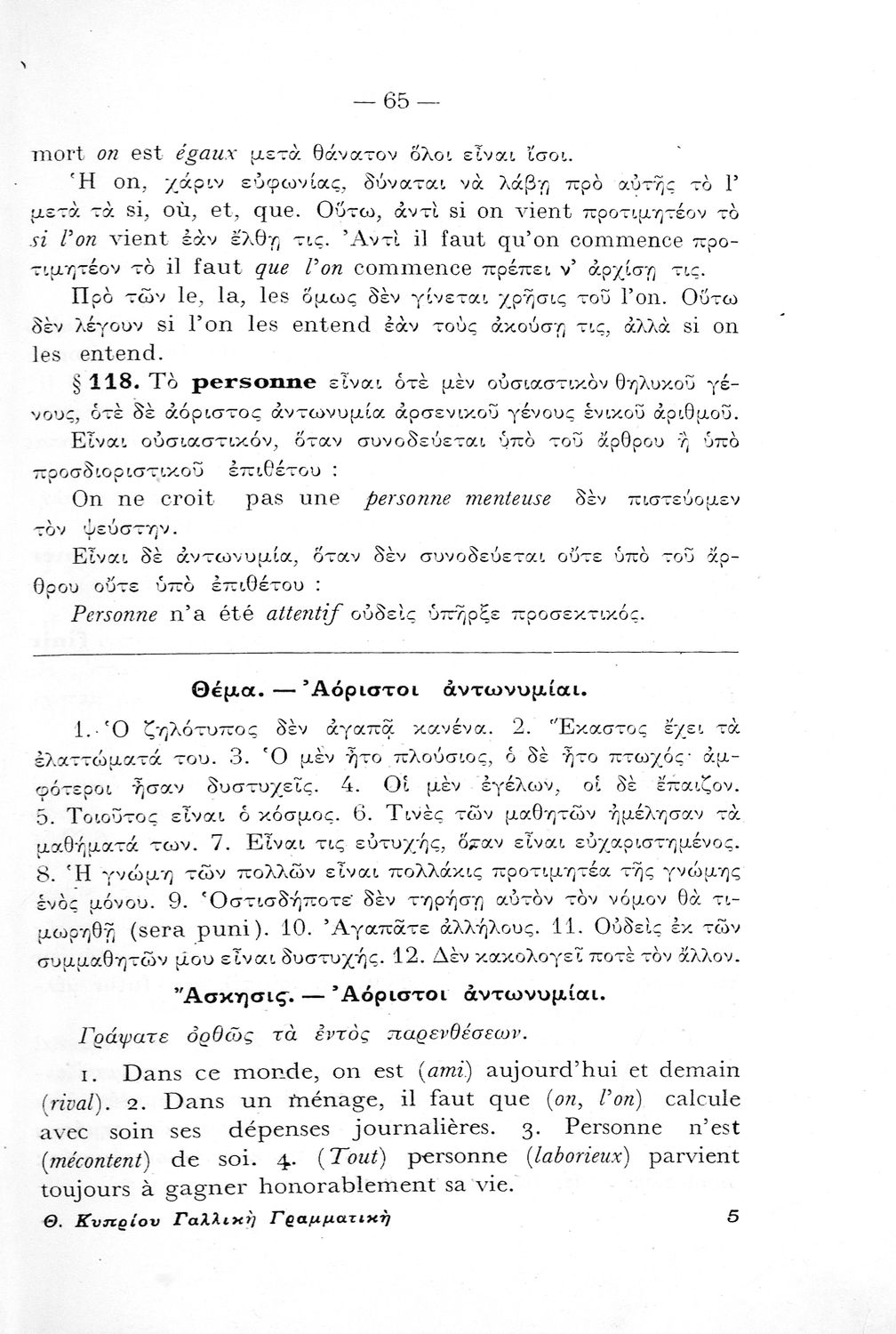 Κωδικός αναγνώρισης: 01-17308 Τίτλος: Γραμματική της Γαλλικής Γλώσσης προς χρήσιν πασών των τάξεων των Γυμνασίων και των αντιστοίχων τάξεων των λοιπών Σχολείων της Μέσης Εκπαιδεύσεως Συγγραφέας: Θεόδωρος. Γ. Κύπριος Μέγεθος και υπόστρωμα: Σχολικό εγχειρίδιο, 22εκ., μαλακό εξώφυλλο, 199 σελίδες. |