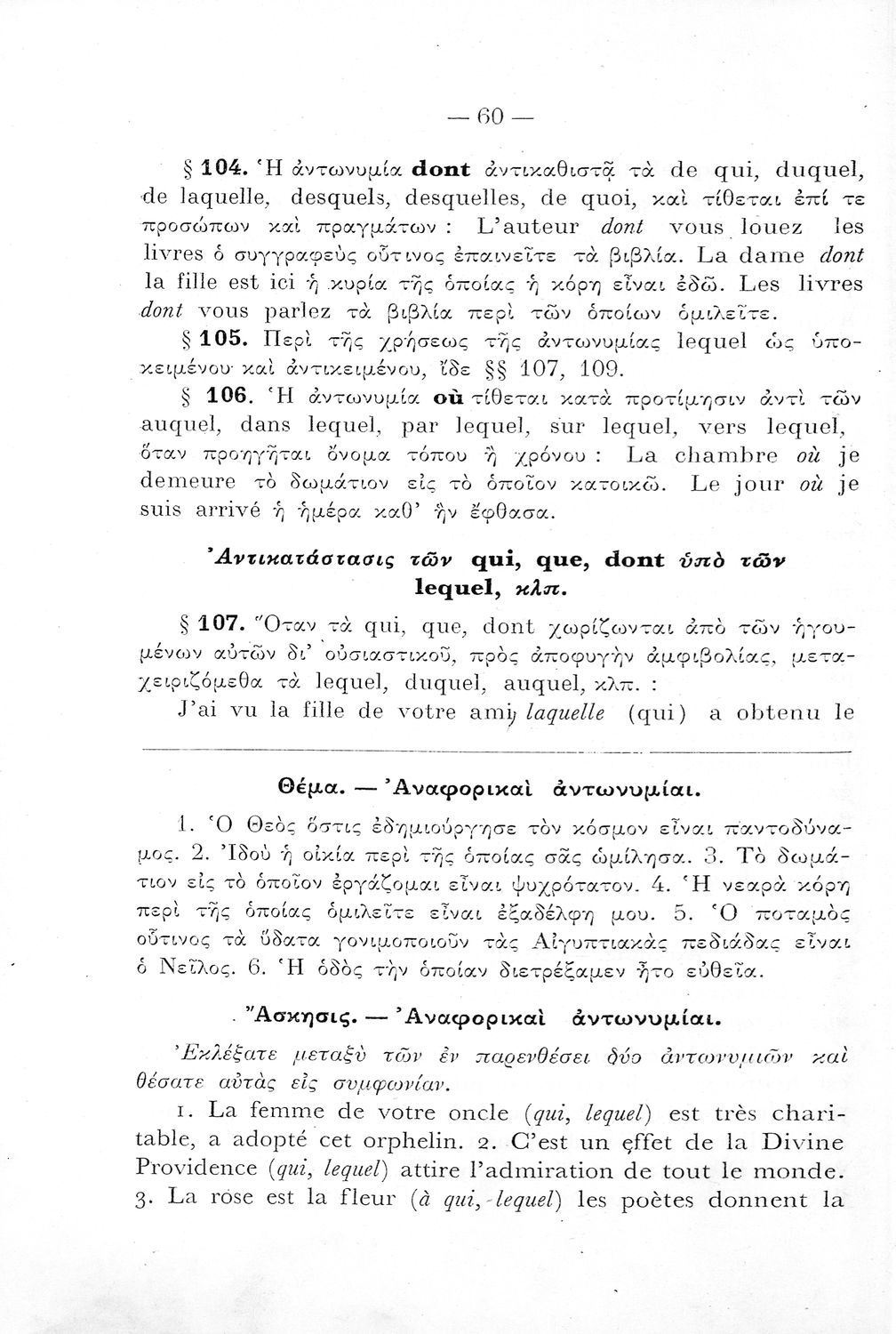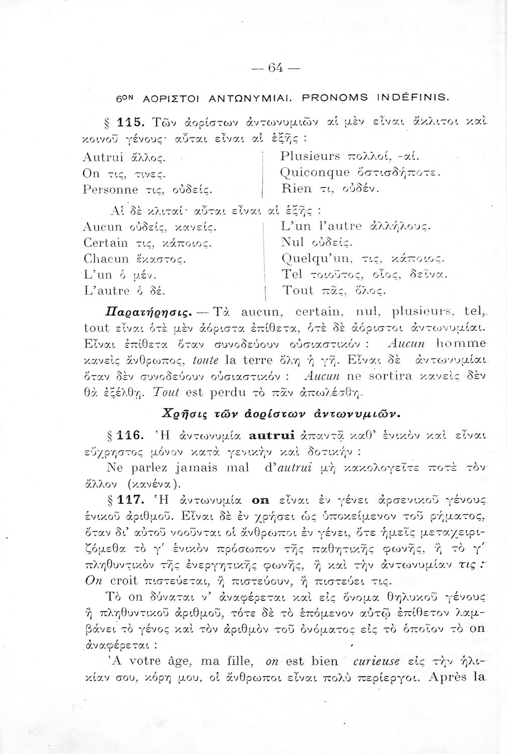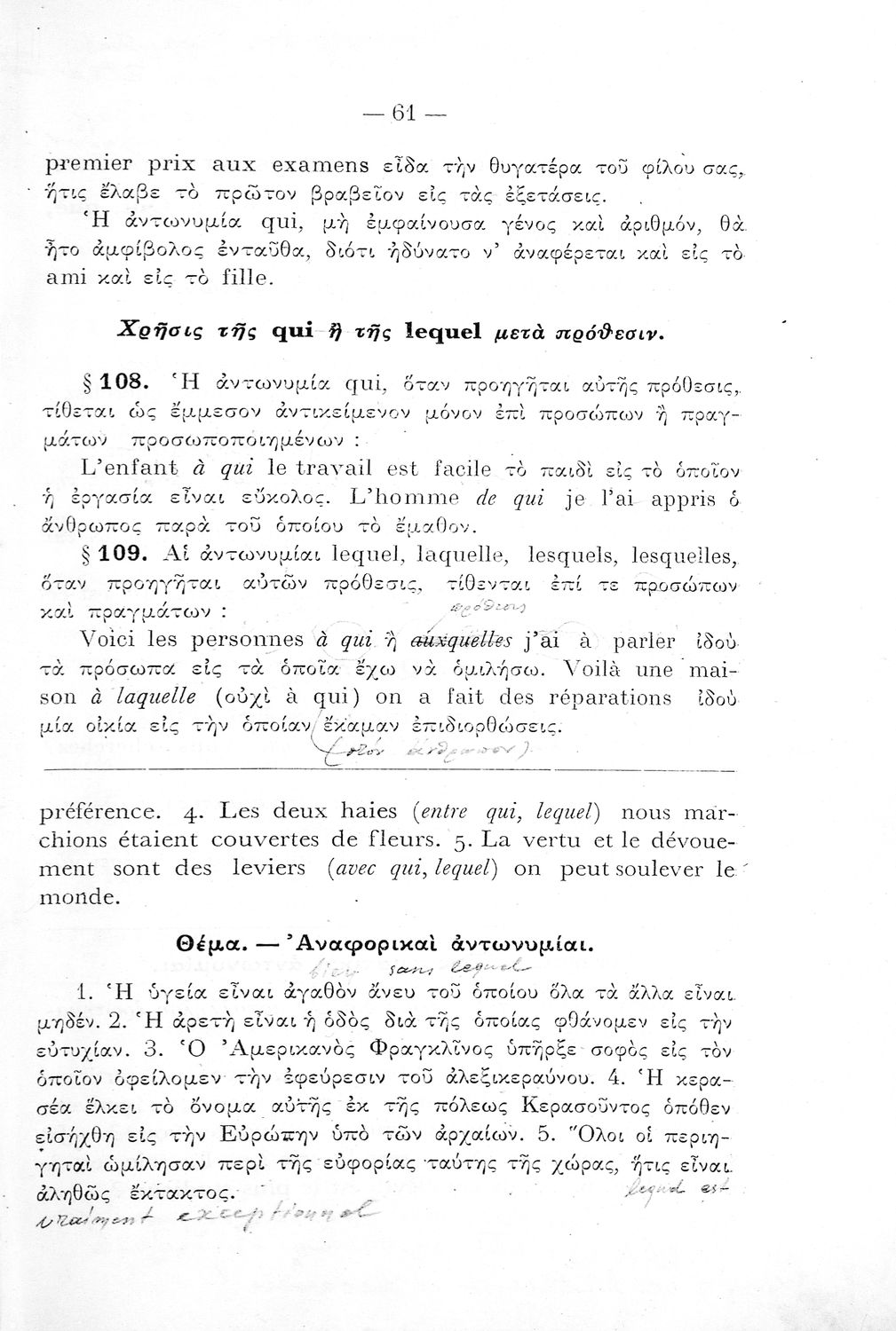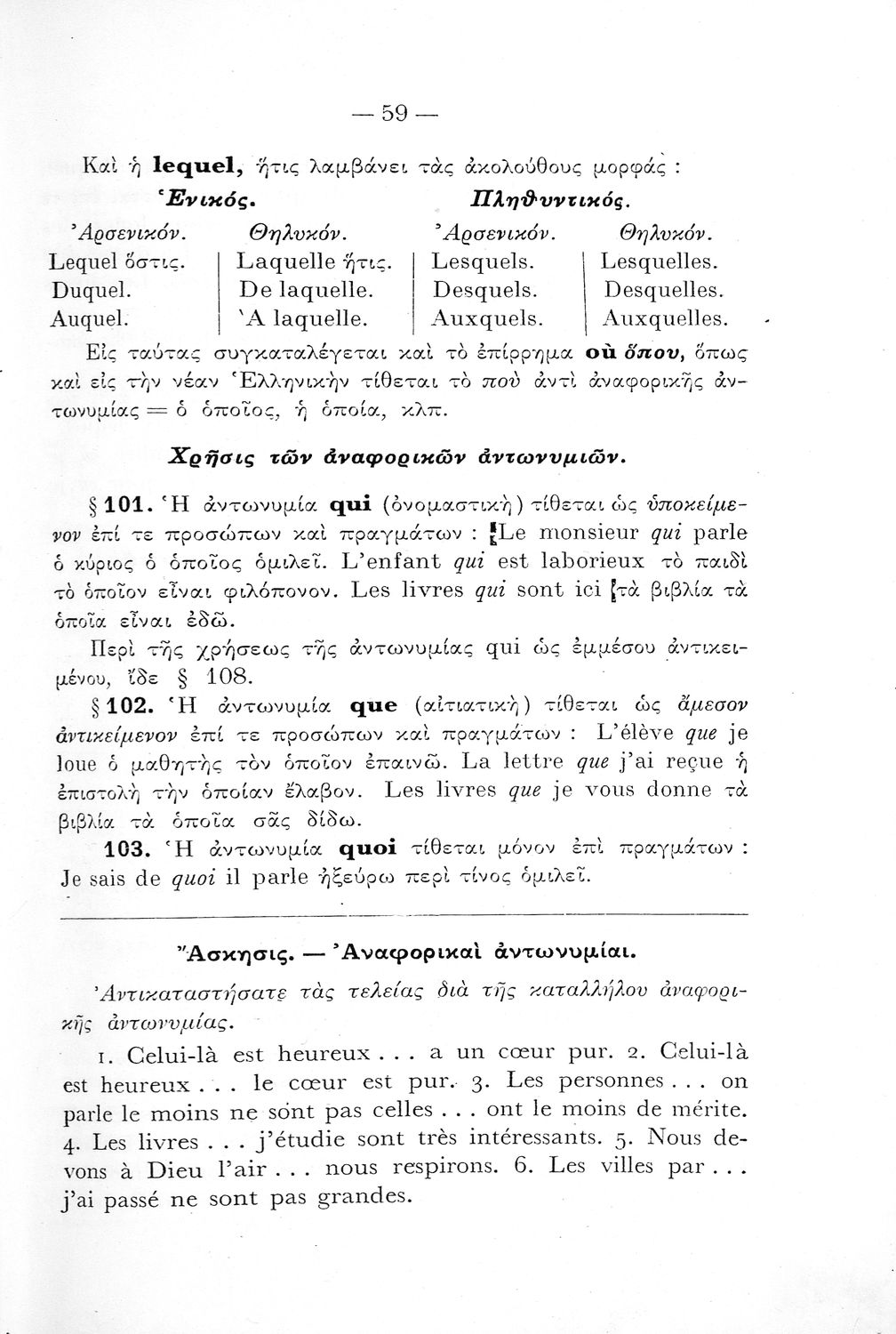 Κωδικός αναγνώρισης: 01-17308 Τίτλος: Γραμματική της Γαλλικής Γλώσσης προς χρήσιν πασών των τάξεων των Γυμνασίων και των αντιστοίχων τάξεων των λοιπών Σχολείων της Μέσης Εκπαιδεύσεως Συγγραφέας: Θεόδωρος. Γ. Κύπριος Μέγεθος και υπόστρωμα: Σχολικό εγχειρίδιο, 22εκ., μαλακό εξώφυλλο, 199 σελίδες. |