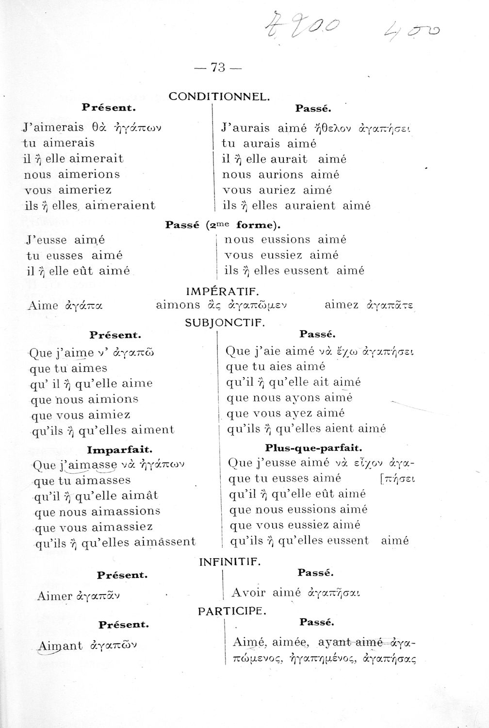 Βαθμίδα εκπαίδευσης: Δευτεροβάθμια Τάξη: Γυμνάσιο Μάθημα: Γαλλικά Γλώσσα: Καθαρεύουσα Παρουσίαση περιεχομένου: Σχολικό εγχειρίδιο Γαλλικών Γυμνασίου που περιέχει τους βασικούς κανόνες γραμματικής και συντακτικού, κείμενα για τη διδασκαλία τους, λεξιλόγιο και ασκήσεις. |