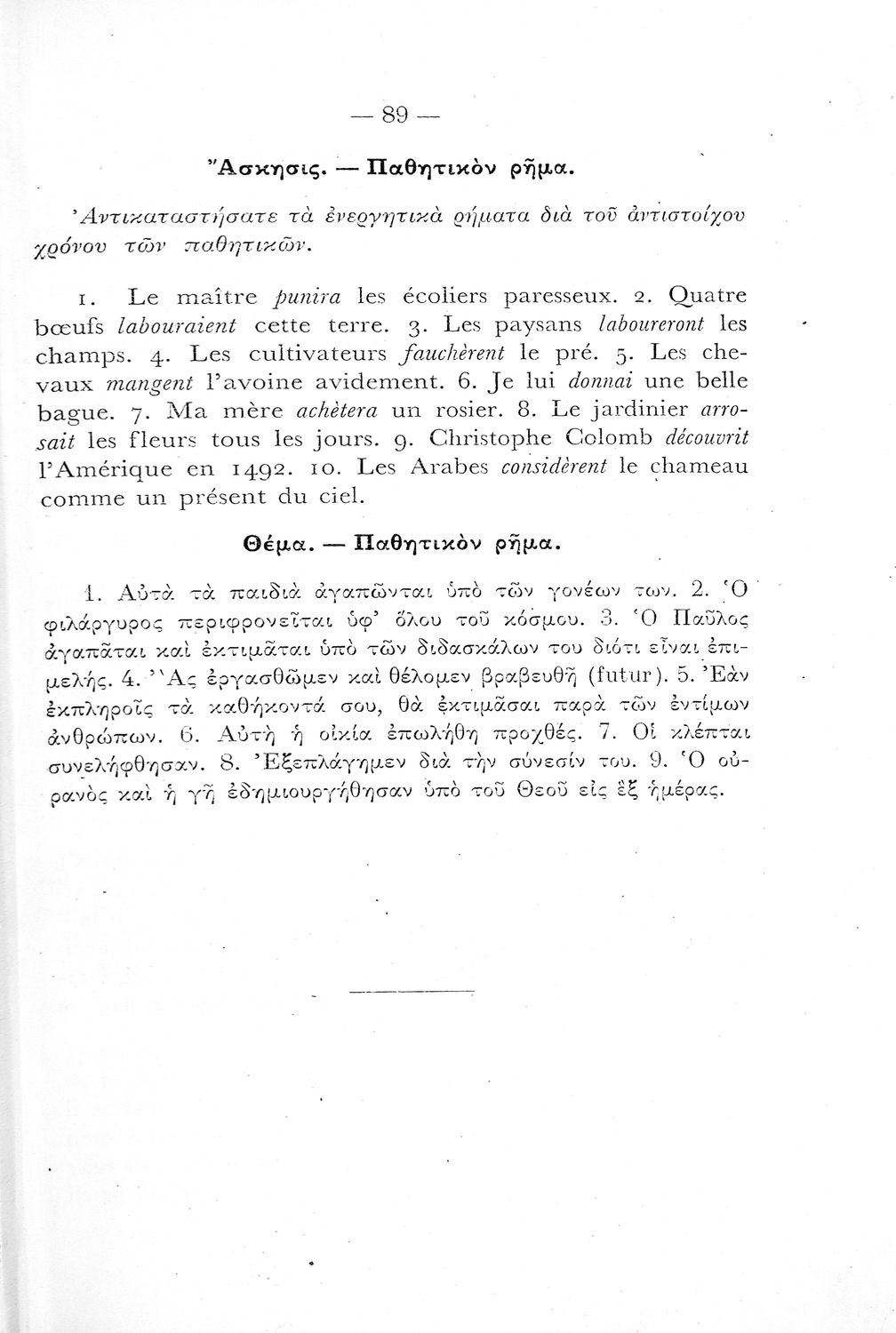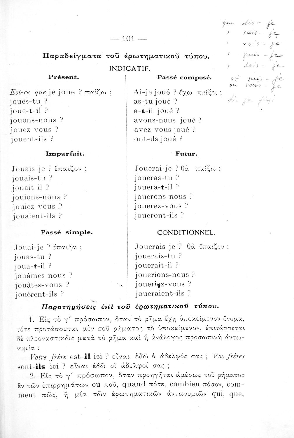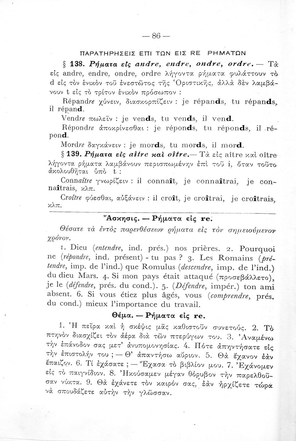 Βαθμίδα εκπαίδευσης: Δευτεροβάθμια Τάξη: Γυμνάσιο Μάθημα: Γαλλικά Γλώσσα: Καθαρεύουσα Παρουσίαση περιεχομένου: Σχολικό εγχειρίδιο Γαλλικών Γυμνασίου που περιέχει τους βασικούς κανόνες γραμματικής και συντακτικού, κείμενα για τη διδασκαλία τους, λεξιλόγιο και ασκήσεις. |