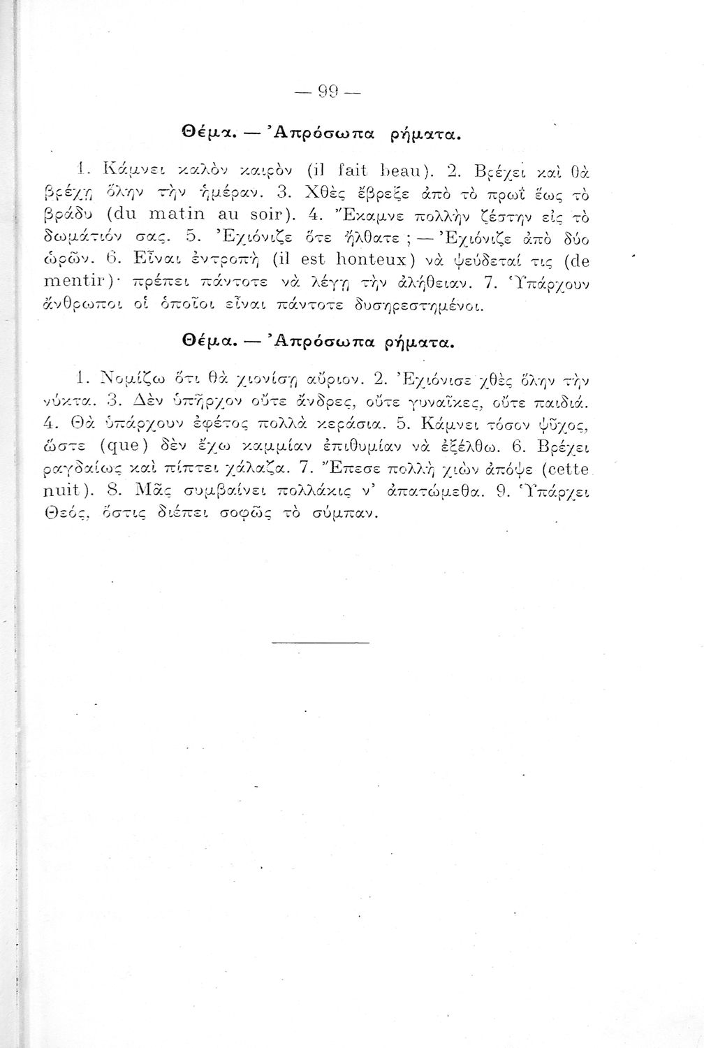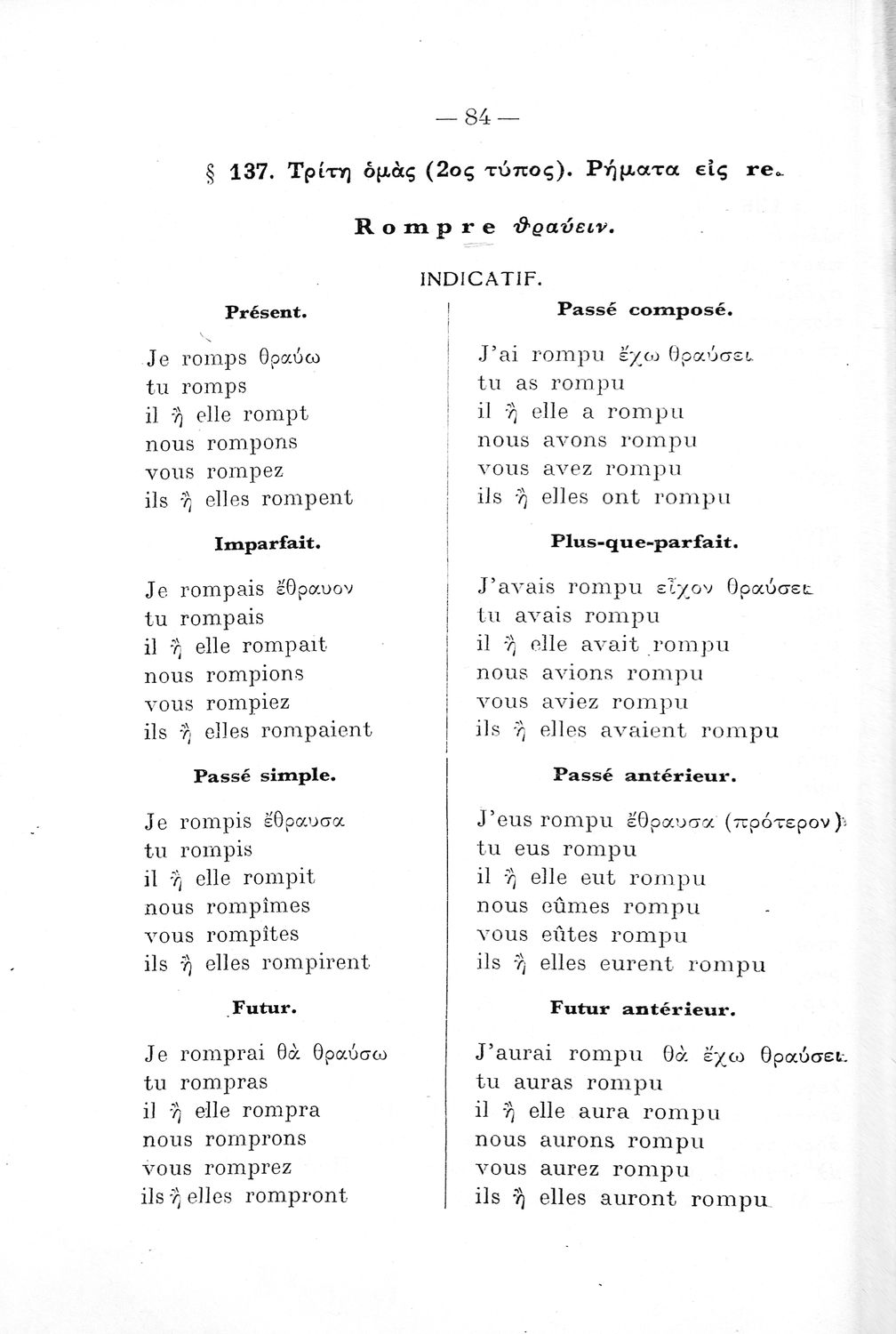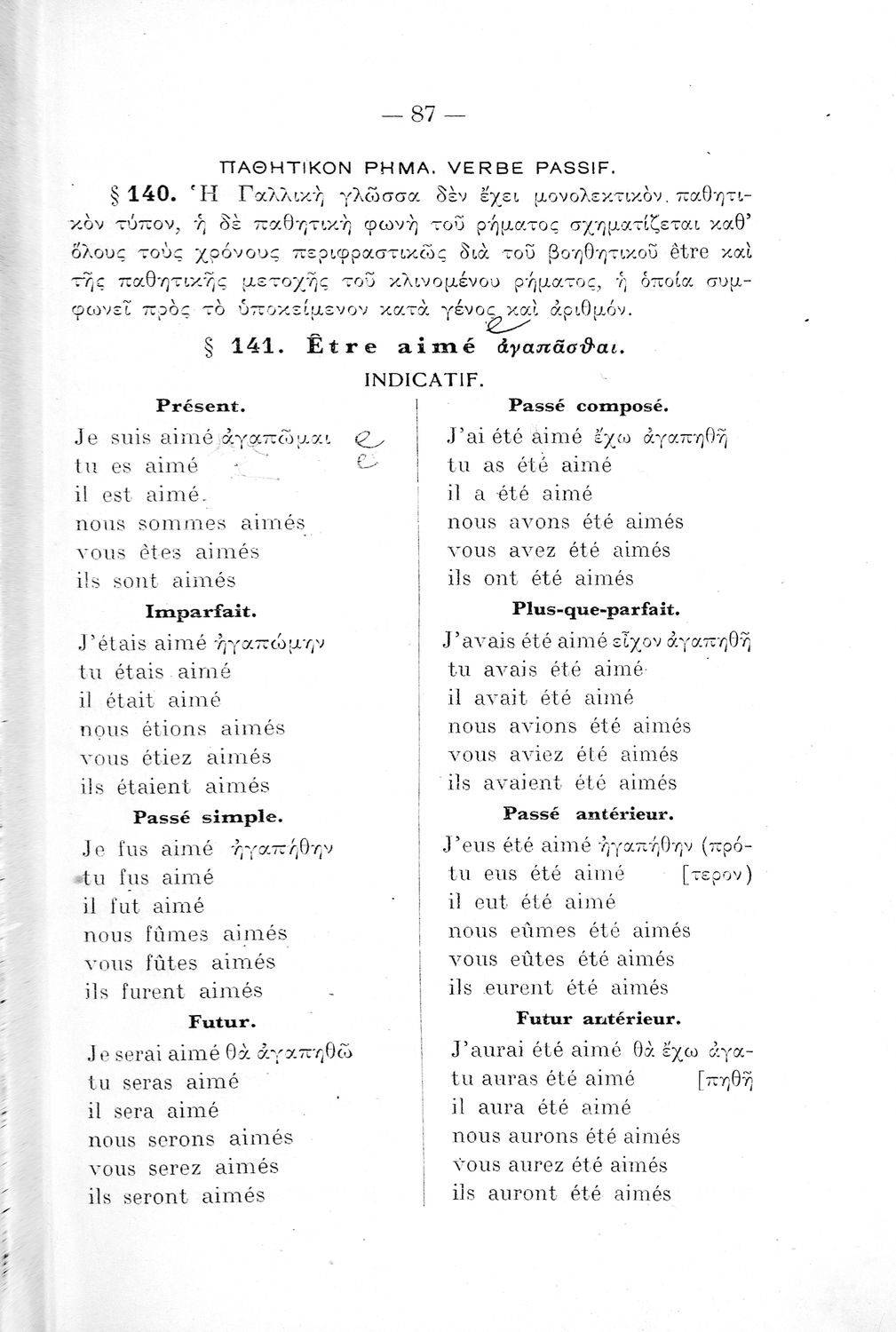 Βαθμίδα εκπαίδευσης: Δευτεροβάθμια Τάξη: Γυμνάσιο Μάθημα: Γαλλικά Γλώσσα: Καθαρεύουσα Παρουσίαση περιεχομένου: Σχολικό εγχειρίδιο Γαλλικών Γυμνασίου που περιέχει τους βασικούς κανόνες γραμματικής και συντακτικού, κείμενα για τη διδασκαλία τους, λεξιλόγιο και ασκήσεις. |