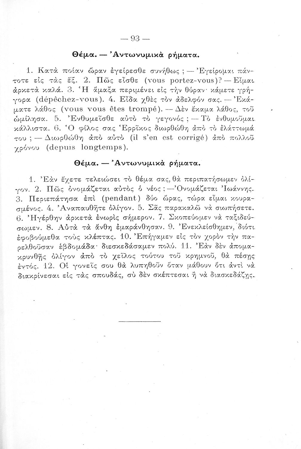 LDR 01140 2200193 4500 035 ## _a01-17308 040 ## _aΙνστιτούτο Εκπαιδευτικής Πολιτικής 041 ## _ael 100 ## _aΘεόδωρος. Γ. Κύπριος 110 ## _a17308 245 0# _aΓραμματική της Γαλλικής Γλώσσης προς χρήσιν πασών των τάξεων των Γυμνασίων και των αντιστοίχων τάξεων των λοιπών Σχολείων της Μέσης Εκπαιδεύσεως 260 ## _aΑθήνα _bΙωάννης Δ. Κολλάρος 300 ## _a199 _c22 520 ## _aΣχολικό εγχειρίδιο Γαλλικών Γυμνασίου που περιέχει τους βασικούς κανόνες γραμματικής και συντακτικού, κείμενα για τη διδασκαλία τους, λεξιλόγιο και ασκήσεις. 521 ## _aΓυμνάσιο 522 ## _aΕλλάδα 546 ## _aΚαθαρεύουσα 563 ## _aΜαλακό Εξώφυλλο 650 #4 _aΑντωνυμίες _aΕπίθετα _aΟνόματα _aΡήματα