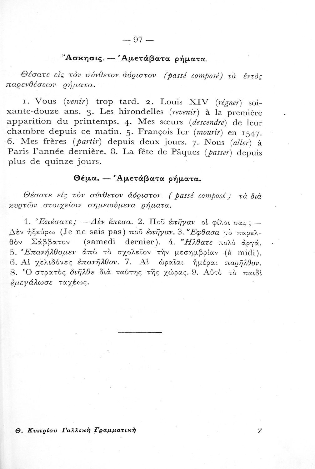 Κωδικός αναγνώρισης: 01-17308 Τίτλος: Γραμματική της Γαλλικής Γλώσσης προς χρήσιν πασών των τάξεων των Γυμνασίων και των αντιστοίχων τάξεων των λοιπών Σχολείων της Μέσης Εκπαιδεύσεως Συγγραφέας: Θεόδωρος. Γ. Κύπριος Μέγεθος και υπόστρωμα: Σχολικό εγχειρίδιο, 22εκ., μαλακό εξώφυλλο, 199 σελίδες. |