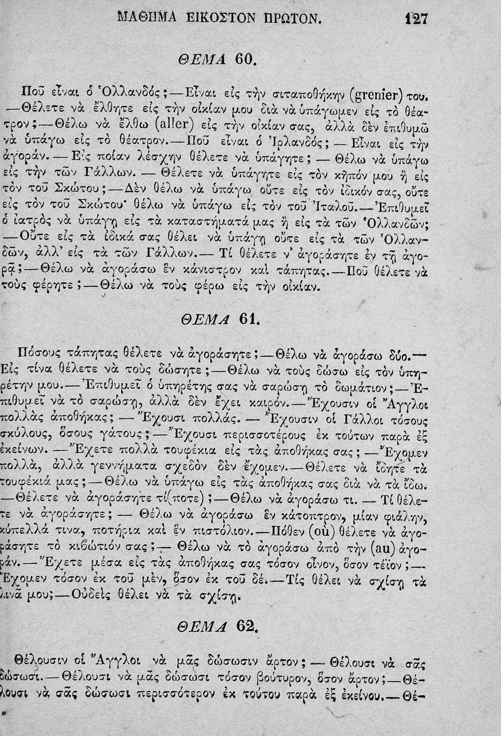 Σχολικό εγχειρίδιο για τις τάξεις των Γυμνασίων, Αστικών σχολείων, Παρθεναγωγείων, Διδασκαλεία και Εμπορικές σχολές. Το βιβλίο περιλαμβάνει ασκήσεις γραμματικής, συντακτικού και λεξιλογίου για πρακτική ...