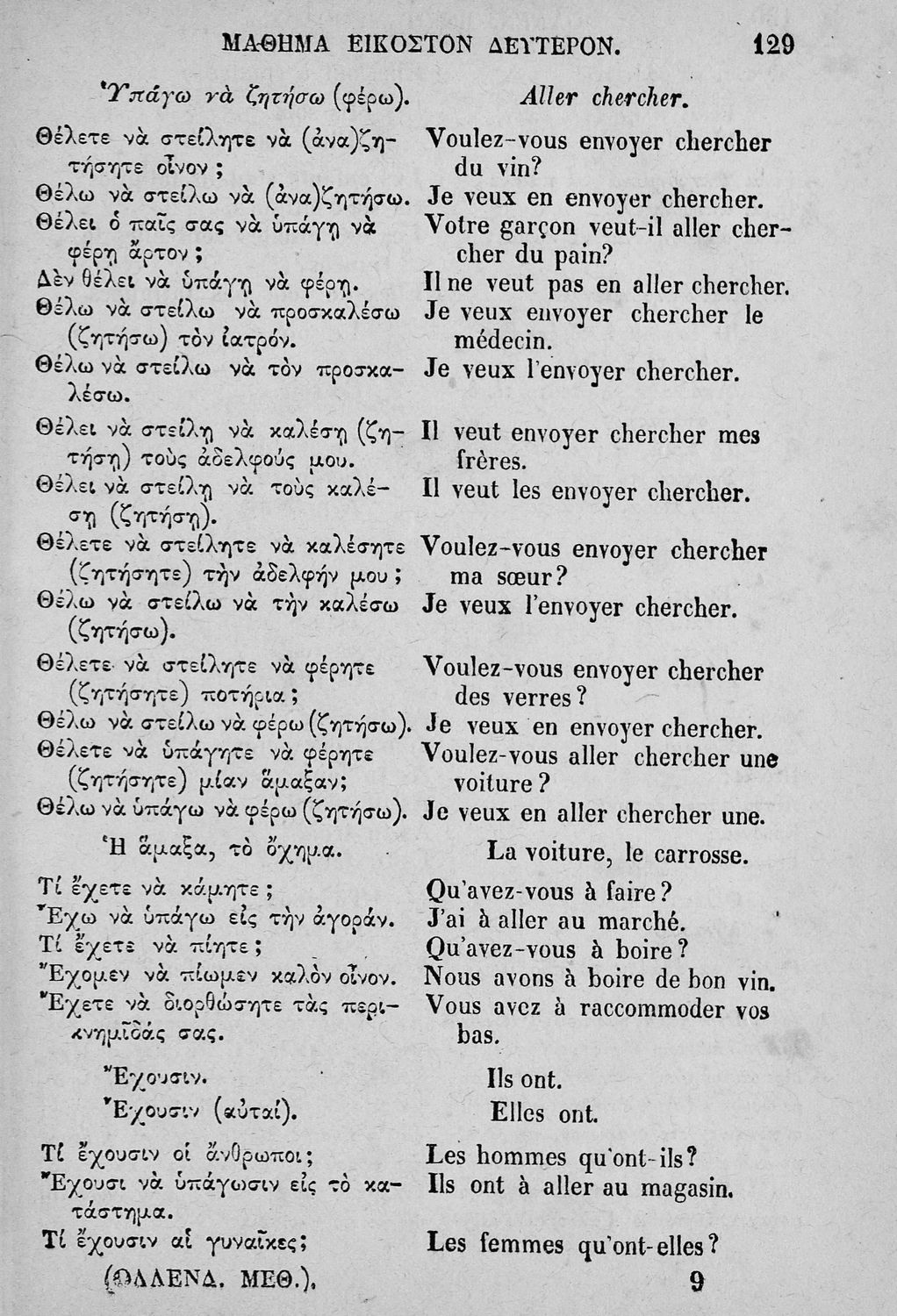 Σχολικό εγχειρίδιο Γαλλικών που περιλαμβάνει κείμενα, λεξιλόγιο και ασκήσεις. Ο συγγραφέας ήταν καθηγητής της Δημόσιας Εμπορικής Σχολής Αθηνών και του Αρσακείου.