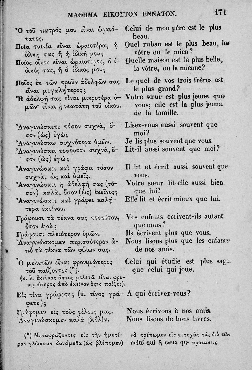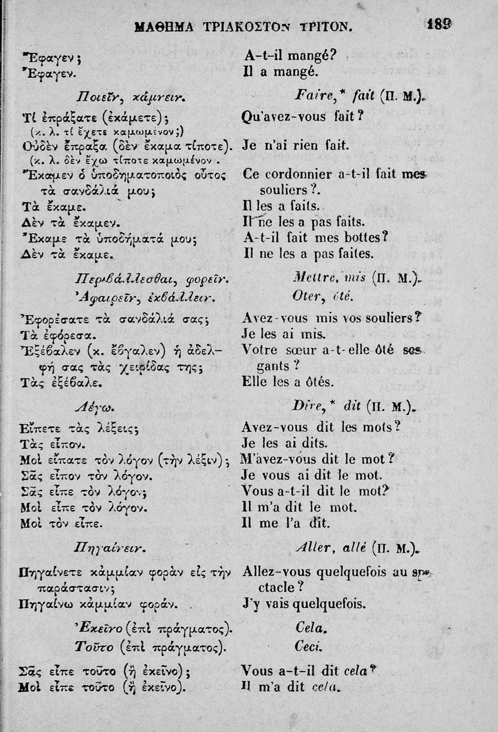 Σχολικό εγχειρίδιο Γαλλικών που περιλαμβάνει κείμενα, λεξιλόγιο και ασκήσεις. Ο συγγραφέας ήταν καθηγητής της Δημόσιας Εμπορικής Σχολής Αθηνών και του Αρσακείου.