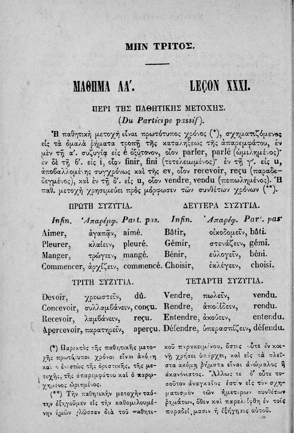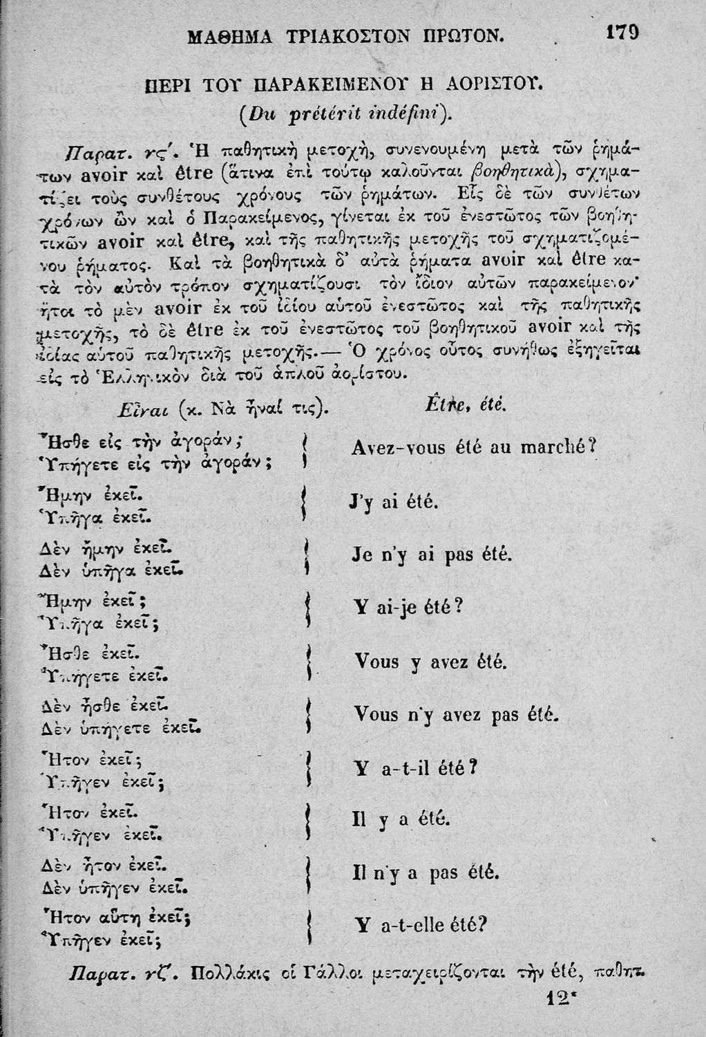 Σχολικό εγχειρίδιο Γαλλικών για τα Ελληνικά Σχολεία και Γυμνάσια που περιέχει τους κανόνες γραμματικής και συντακτικού.