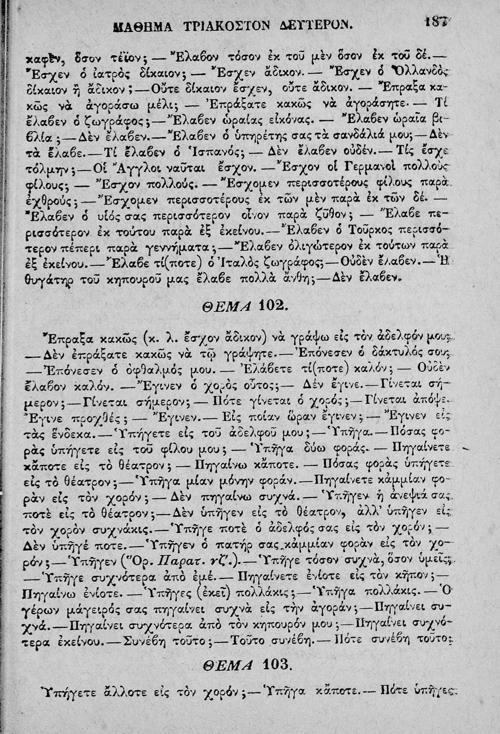 Σχολικό εγχειρίδιο για τις τάξεις των Γυμνασίων, Αστικών σχολείων, Παρθεναγωγείων, Διδασκαλεία και Εμπορικές σχολές. Το βιβλίο περιλαμβάνει ασκήσεις γραμματικής, συντακτικού και λεξιλογίου για πρακτική ...