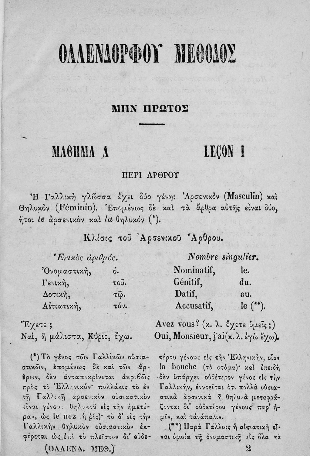 Τίτλος: Νεώτατη μέθοδος Ολλενδόρφου προς εκμάθησιν της γαλλικής γλώσσης