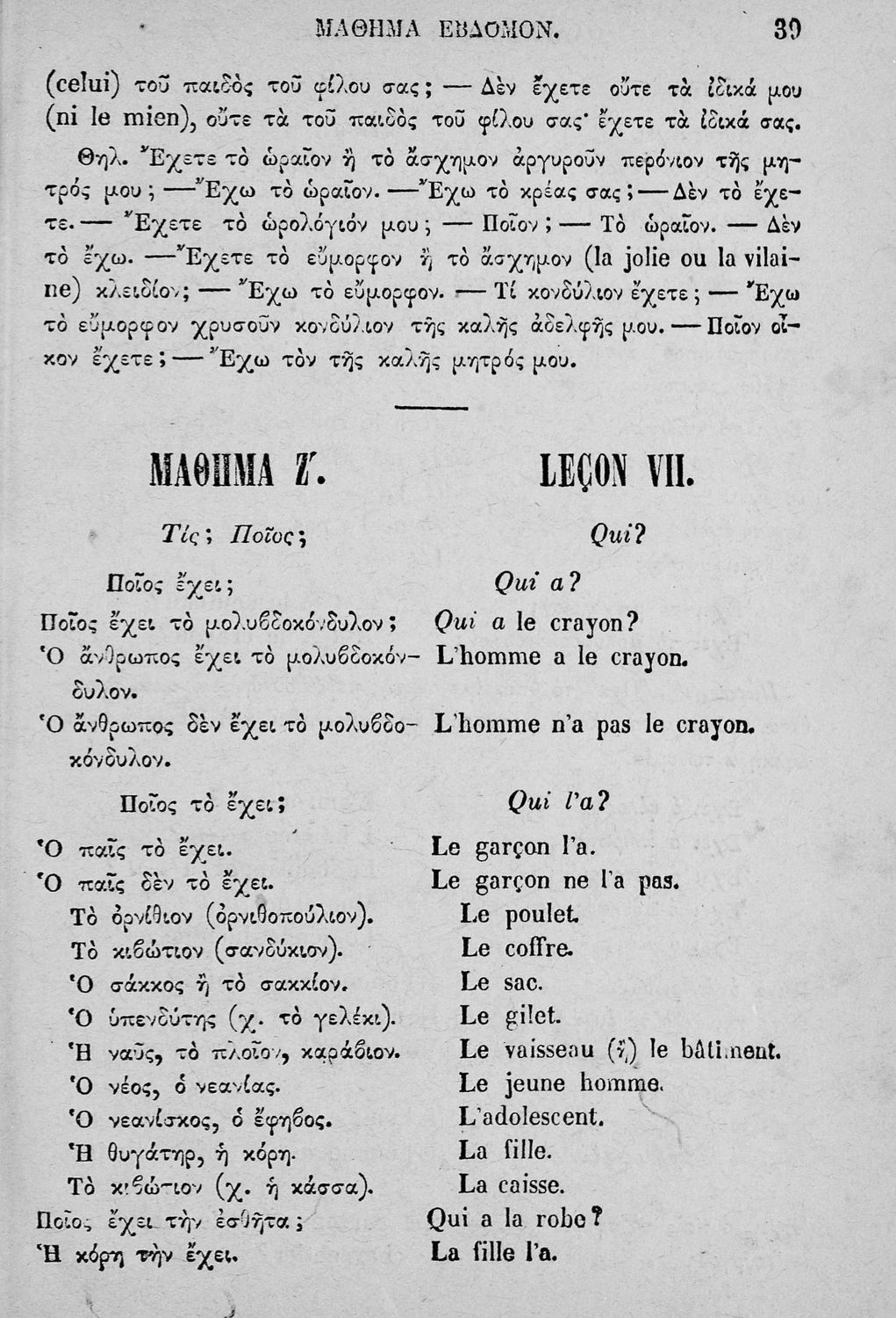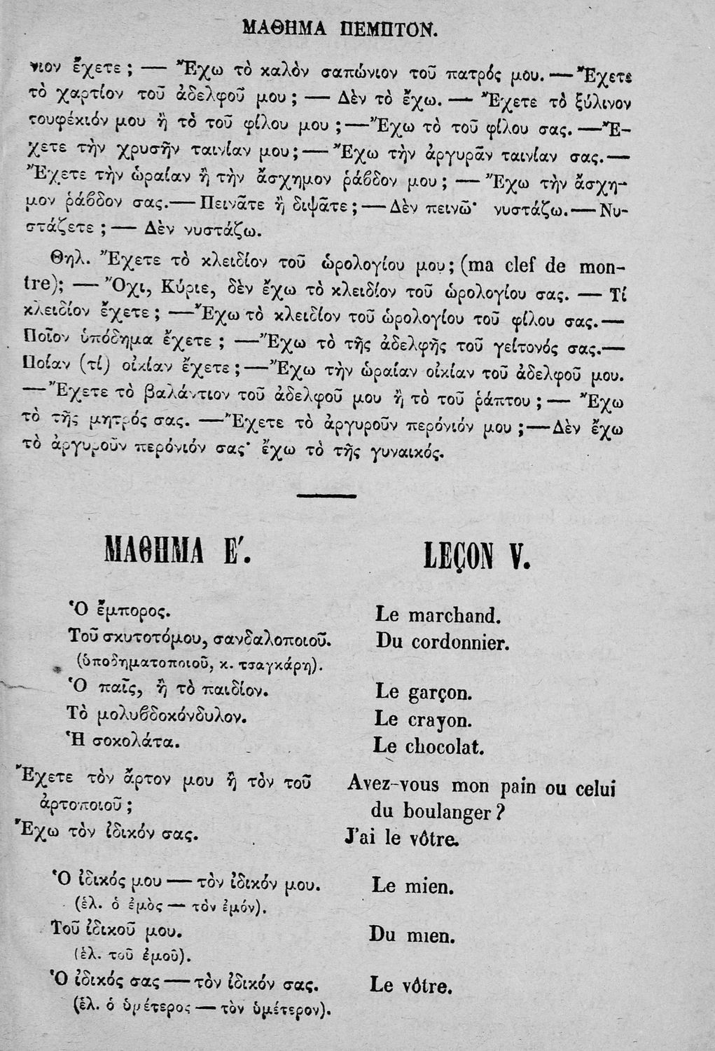 Σχολικό εγχειρίδιο Γαλλικών που περιλαμβάνει κείμενα, λεξιλόγιο και ασκήσεις. Ο συγγραφέας ήταν καθηγητής της Δημόσιας Εμπορικής Σχολής Αθηνών και του Αρσακείου.
