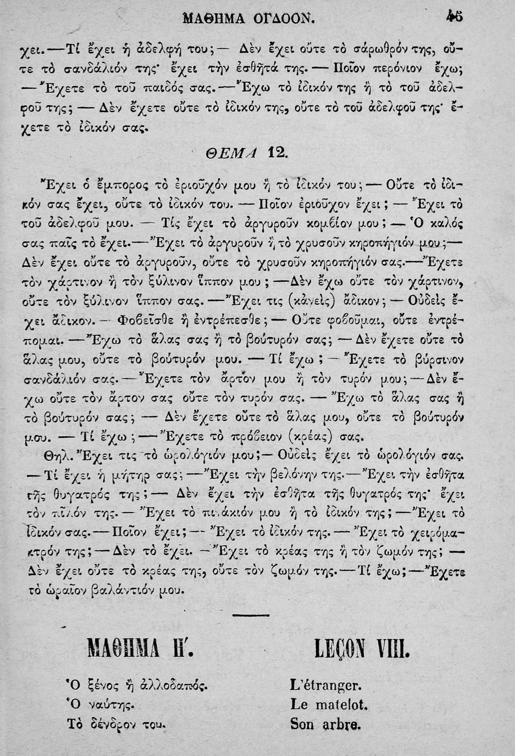 Σχολικό εγχειρίδιο για τις τάξεις των Γυμνασίων, Αστικών σχολείων, Παρθεναγωγείων, Διδασκαλεία και Εμπορικές σχολές. Το βιβλίο περιλαμβάνει ασκήσεις γραμματικής, συντακτικού και λεξιλογίου για πρακτική ...