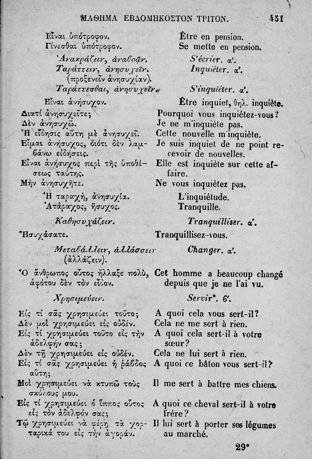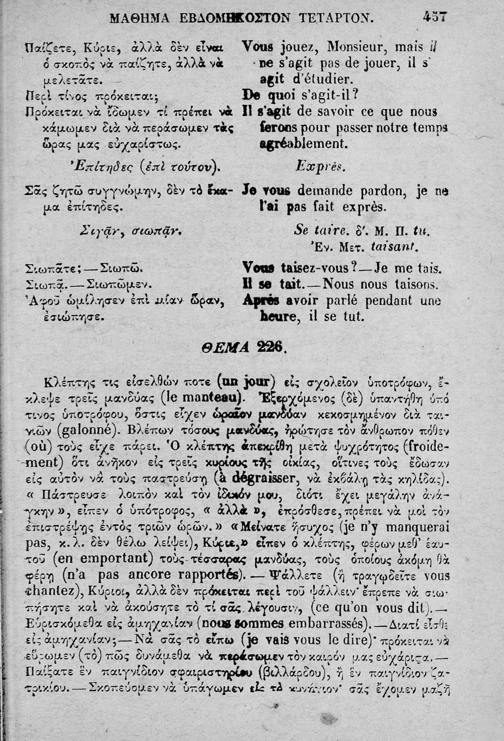 Σχολικό εγχειρίδιο Γαλλικών που περιλαμβάνει κείμενα, λεξιλόγιο και ασκήσεις. Ο συγγραφέας ήταν καθηγητής της Δημόσιας Εμπορικής Σχολής Αθηνών και του Αρσακείου.