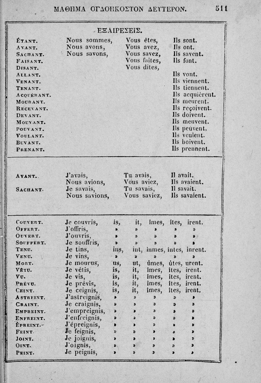 Σχολικό εγχειρίδιο Γαλλικών για τα Ελληνικά Σχολεία και Γυμνάσια που περιέχει τους κανόνες γραμματικής και συντακτικού.