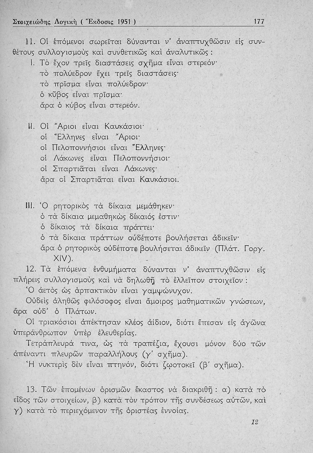 Τίτλος: Στοιχειώδης λογική μετά στοιχείων γνωσιολογίας προς χρήσιν των μαθητών της ΣΤ΄ τάξεως των Εξαταξίων Γυμνασίων παλαιού τύπου