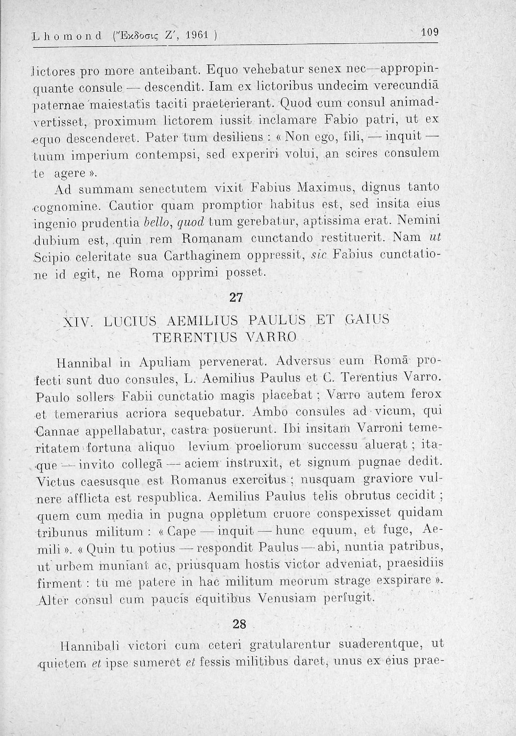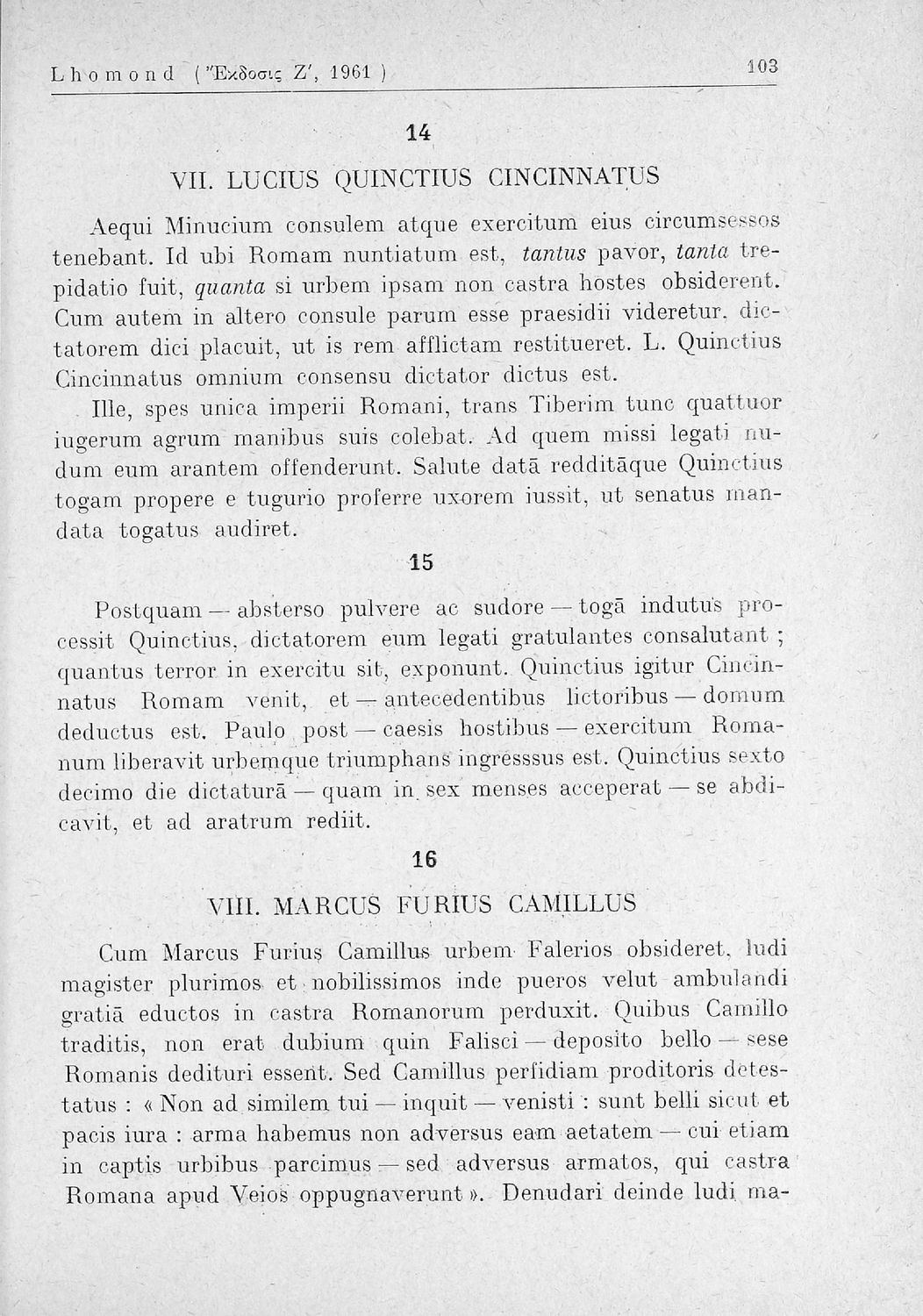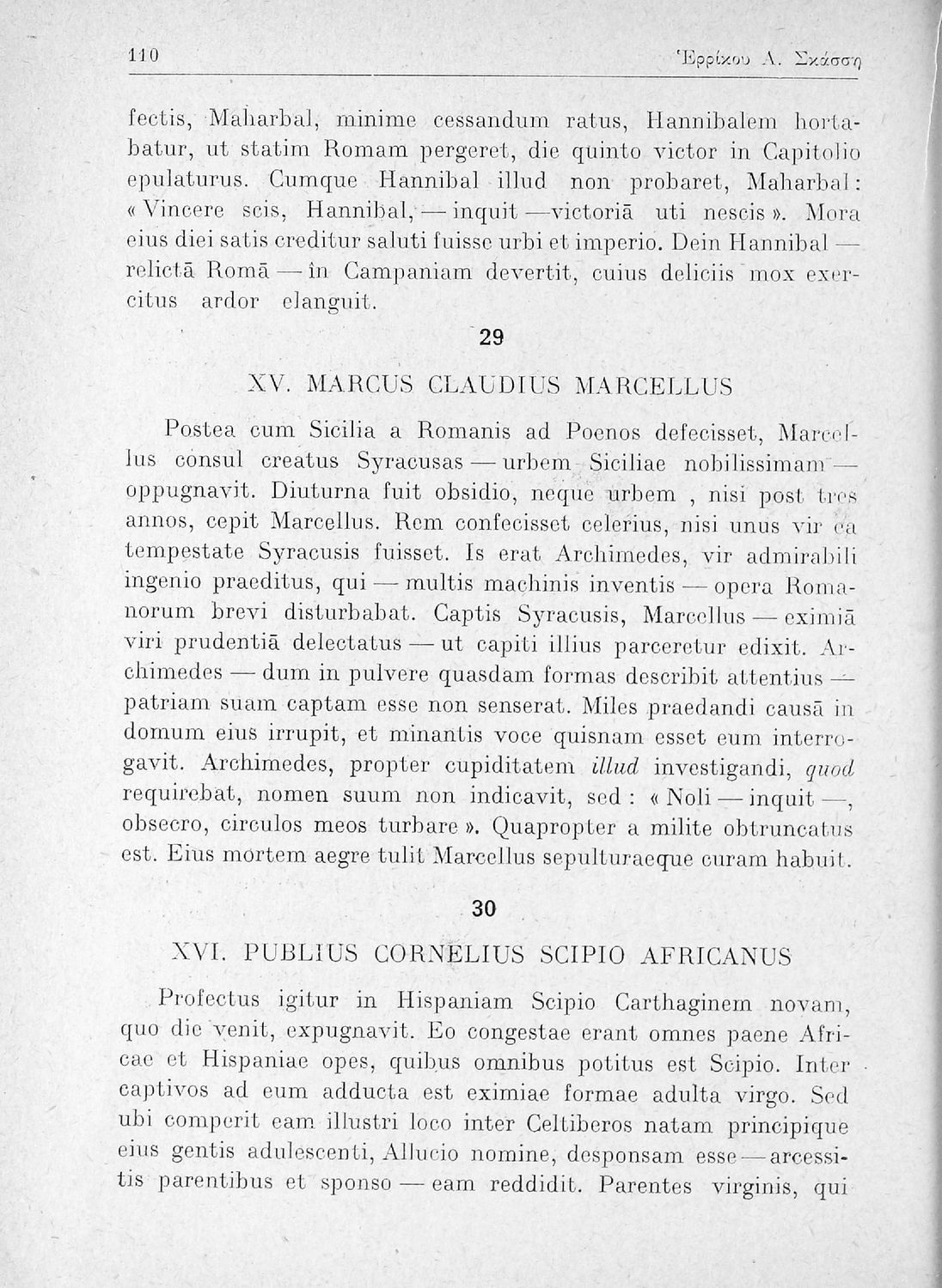 Αναγνωστικό Λατινικών για τη Γ΄ Γυμνασίου που περιέχει 54 κείμενα/περικοπές στα λατινικά, ερμηνευτικά υπομνήματα, λεξιλόγιο και κατάλογο με τα συντακτικά φαινόμενα (αφαιρετική, προθέσεις, σύνδεσμοι) που διδάσκονται με βάση τις περικοπές. Αναγνωστικό Λατινικών που περιέχει σύντομο βιογραφικό σημείωμα του Lhomond, 64 αποσπάσματα από το Σχολικό εγχειρίδιο του, ερμηνευτικές σημειώσεις και λεξιλόγιο. Παρουσιάζει βίους επιφανών Ρωμαίων από το 753 π.Χ μέχρι το 14 μ.Χ. Ο επιμελητής ήταν καθηγητής της Λατινικής Φιλολογίας στο Πανεπιστήμιο Αθηνών.