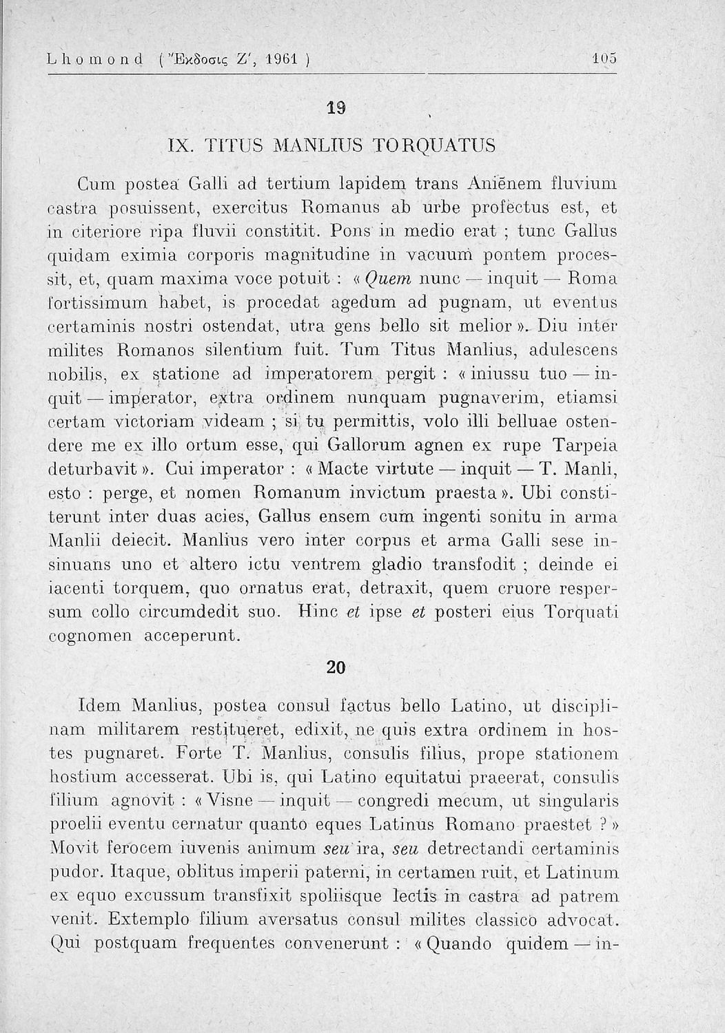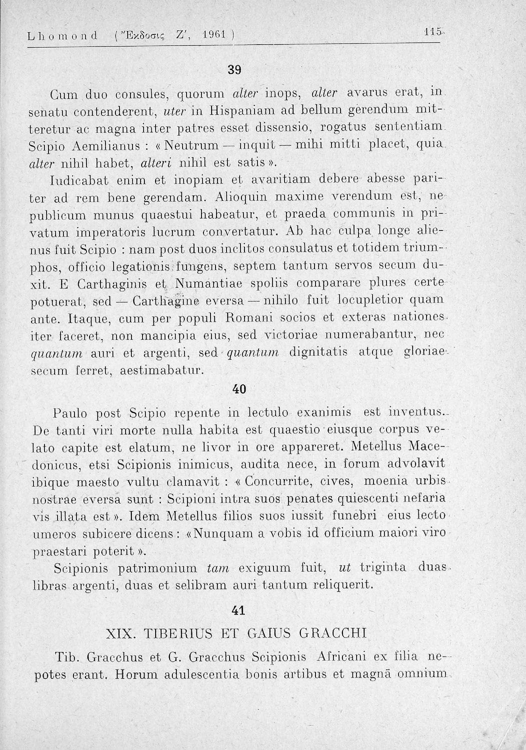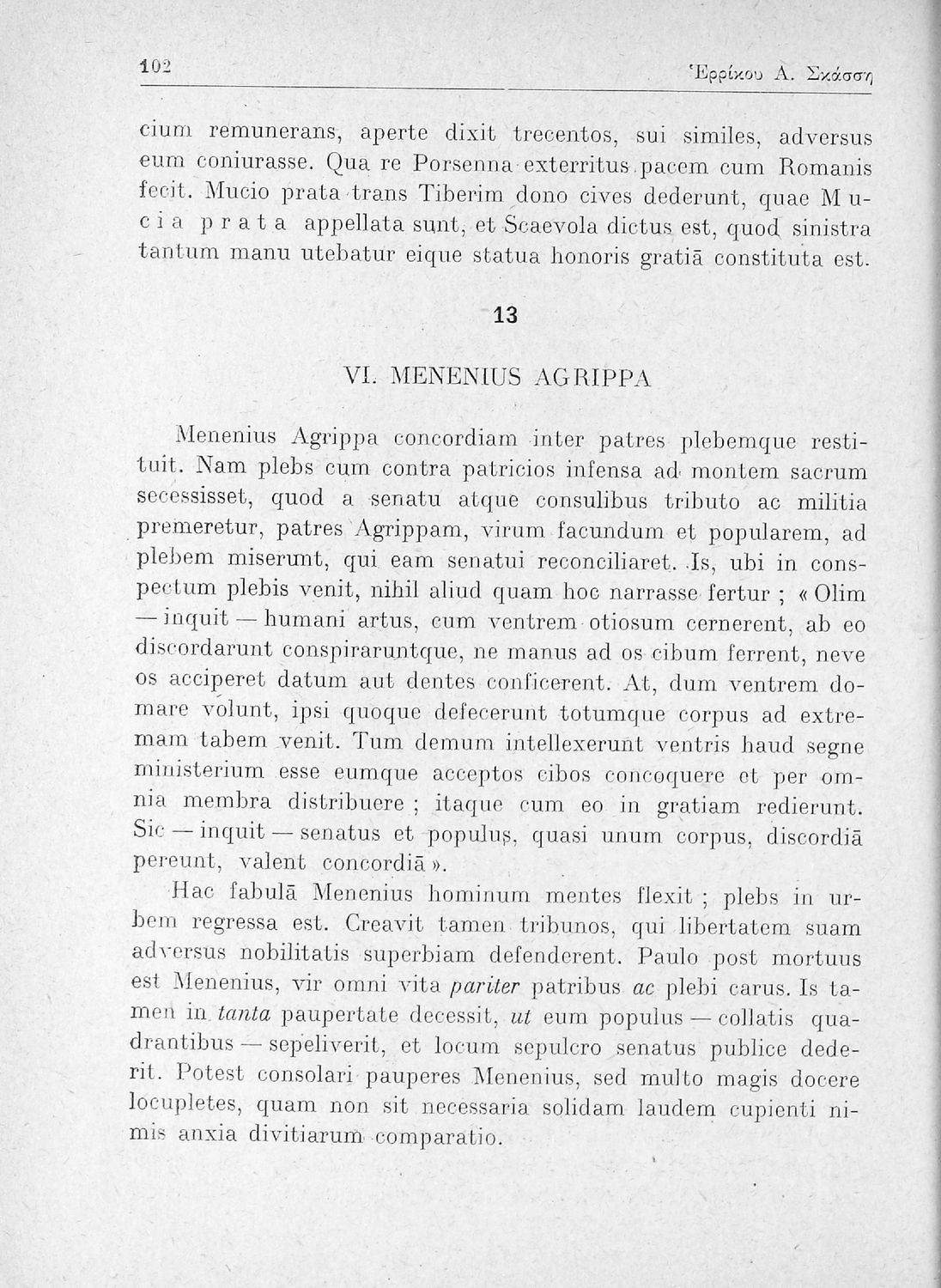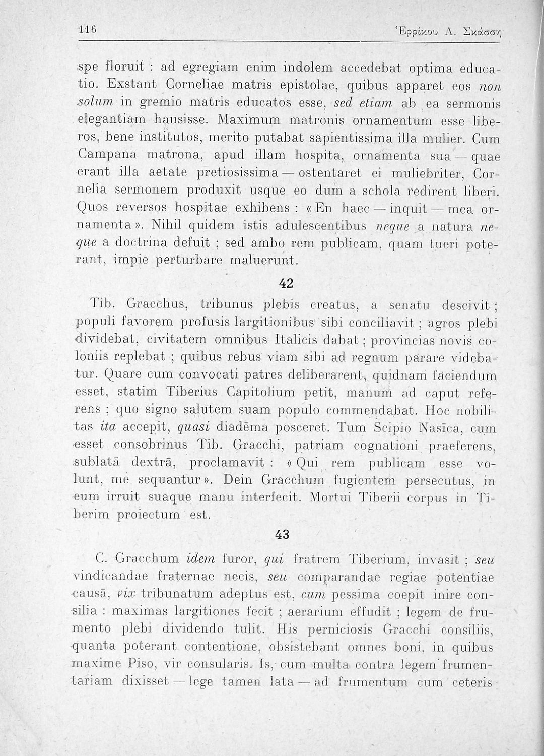 Αναγνωστικό Λατινικών για τη Γ΄ Γυμνασίου που περιέχει 54 κείμενα/περικοπές στα λατινικά, ερμηνευτικά υπομνήματα, λεξιλόγιο και κατάλογο με τα συντακτικά φαινόμενα (αφαιρετική, προθέσεις, σύνδεσμοι) που διδάσκονται με βάση τις περικοπές. Αναγνωστικό Λατινικών που περιέχει σύντομο βιογραφικό σημείωμα του Lhomond, 64 αποσπάσματα από το Σχολικό εγχειρίδιο του, ερμηνευτικές σημειώσεις και λεξιλόγιο. Παρουσιάζει βίους επιφανών Ρωμαίων από το 753 π.Χ μέχρι το 14 μ.Χ. Ο επιμελητής ήταν καθηγητής της Λατινικής Φιλολογίας στο Πανεπιστήμιο Αθηνών.