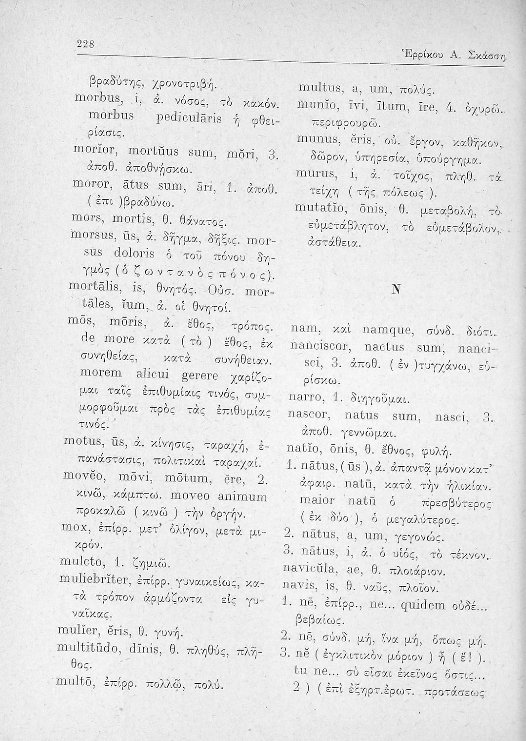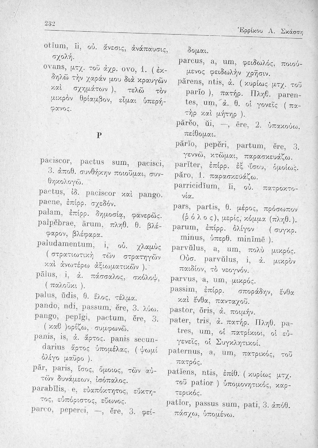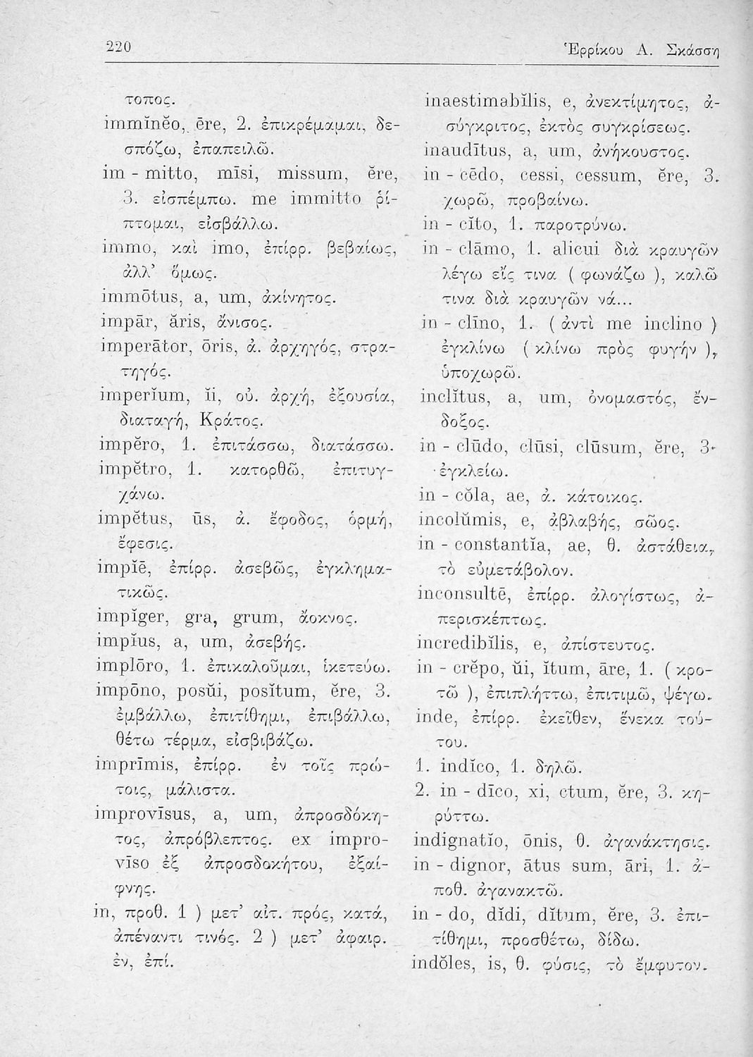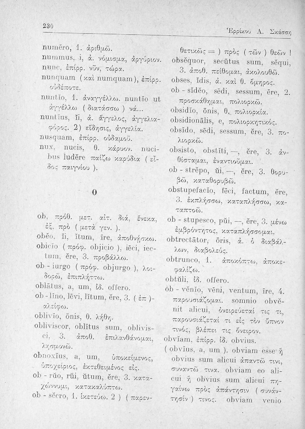 LDR 02123 2200217 4500 035 ## _a01-17315 040 ## _aΙνστιτούτο Εκπαιδευτικής Πολιτικής 041 ## _ael 100 ## _aΚυριάκος Κοσμάς _aLhomond _aΕρρίκος Σκάσσης (σχόλια) 110 ## _a17315 245 0# _aΑναγνωστικόν της λατινικής γλώσσης δια την Γ΄ τάξιν των Εξαταξίων Γυμνασίων, De viris illustribus urbis Romae 250 ## _a11η Έκδοση 260 ## _aΑθήνα _bΟργανισμός Εκδόσεως Σχολικών Βιβλίων _c1961 300 ## _a254 _c20 520 ## _aΑναγνωστικό Λατινικών για τη Γ΄ Γυμνασίου που περιέχει 54 κείμενα/περικοπές στα λατινικά, ερμηνευτικά υπομνήματα, λεξιλόγιο και κατάλογο με τα συντακτικά φαινόμενα (αφαιρετική, προθέσεις, σύνδεσμοι) που διδάσκονται με βάση τις περικοπές. Αναγνωστικό Λατινικών που περιέχει σύντομο βιογραφικό σημείωμα του Lhomond, 64 αποσπάσματα από το Σχολικό εγχειρίδιο του, ερμηνευτικές σημειώσεις και λεξιλόγιο. Παρουσιάζει βίους επιφανών Ρωμαίων από το 753 π.Χ μέχρι το 14 μ.Χ. Ο επιμελητής ήταν καθηγητής της Λατινικής Φιλολογίας στο Πανεπιστήμιο Αθηνών. 521 ## _aΓ' Γυμνασίου 522 ## _aΕλλάδα 546 ## _aΑπλή καθαρεύουσα 563 ## _aΣκληρό Εξώφυλλο 583 ## _a1049/27-4-1961 _c1961 650 #4 _aΑινείας _aΑννίβας _aΑσκληπιός _aΑύγουστος _aΒρούτος _aΓαλάτες _aΚαίσαρας _aΚαρχηδόνα _aΚιγκιννάτος _aΚικέρωνας _aΠάτροκλος _aΡωμύλος _aΣαβίνοι _aΣκιπίων _aΤυρταίος