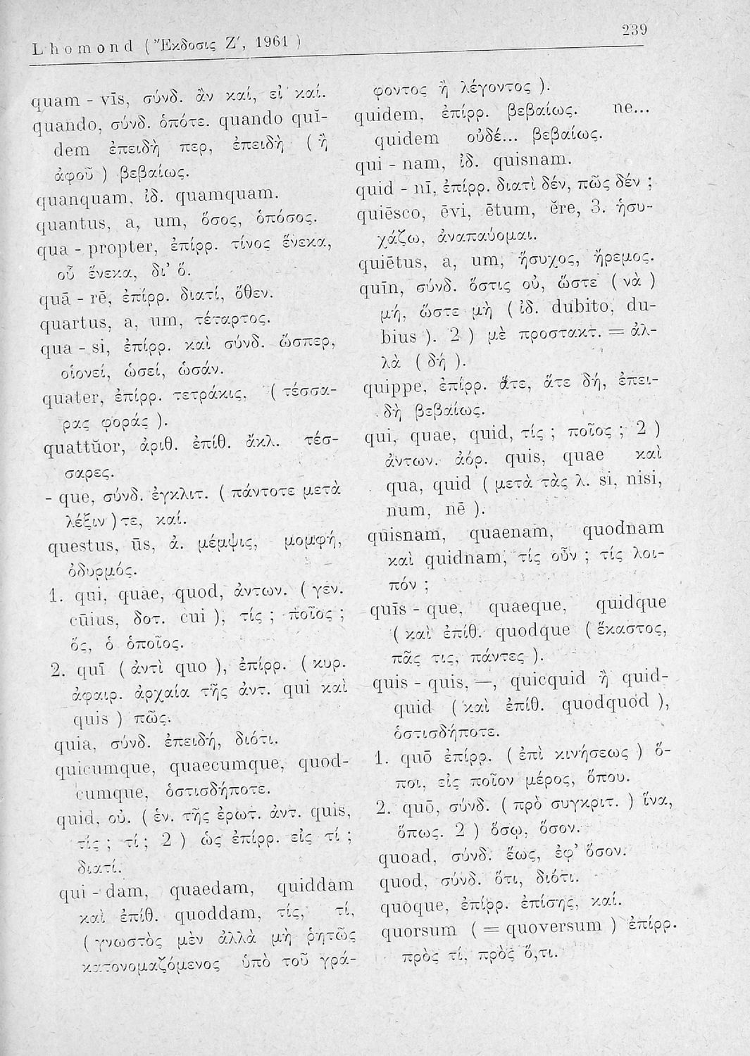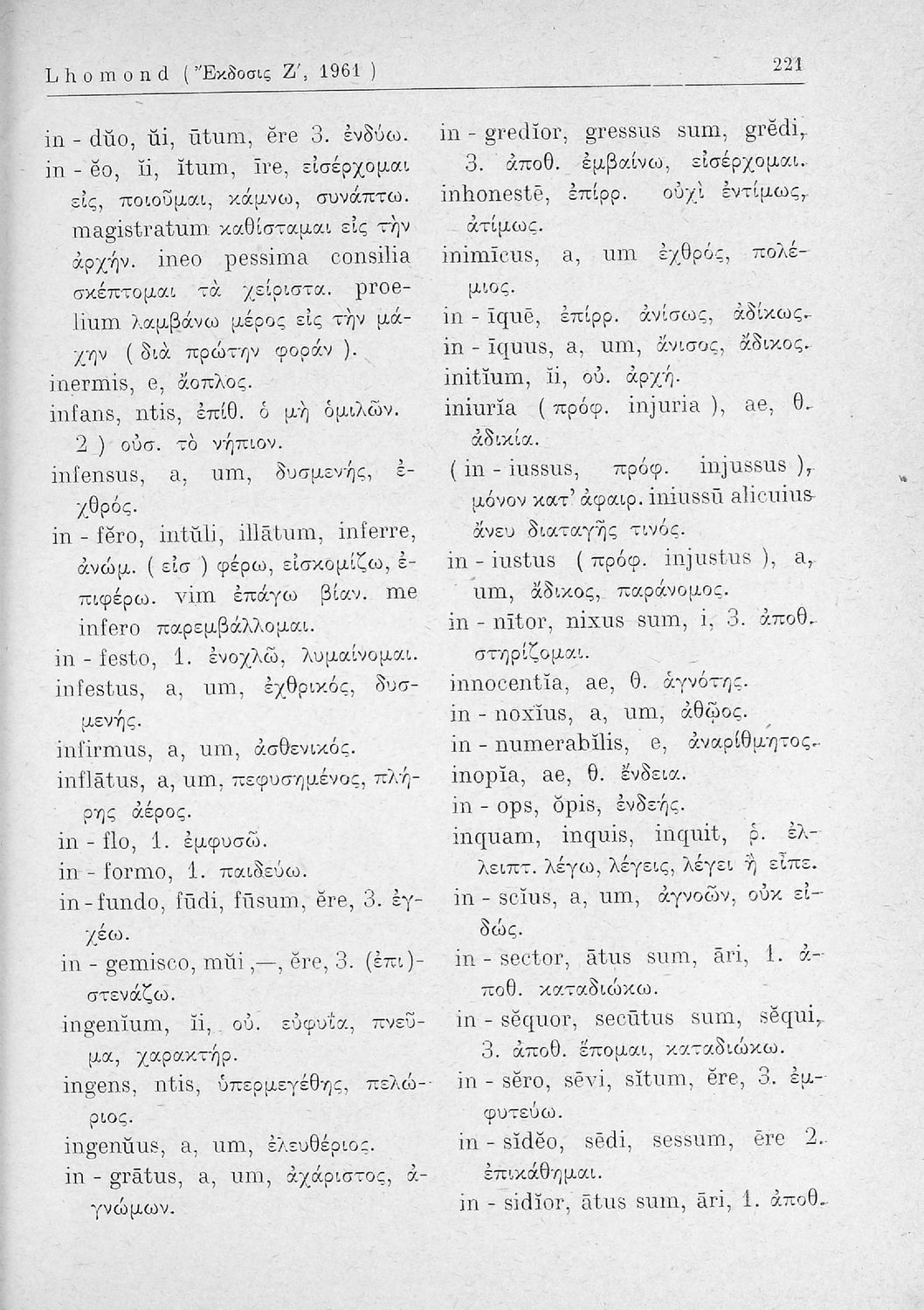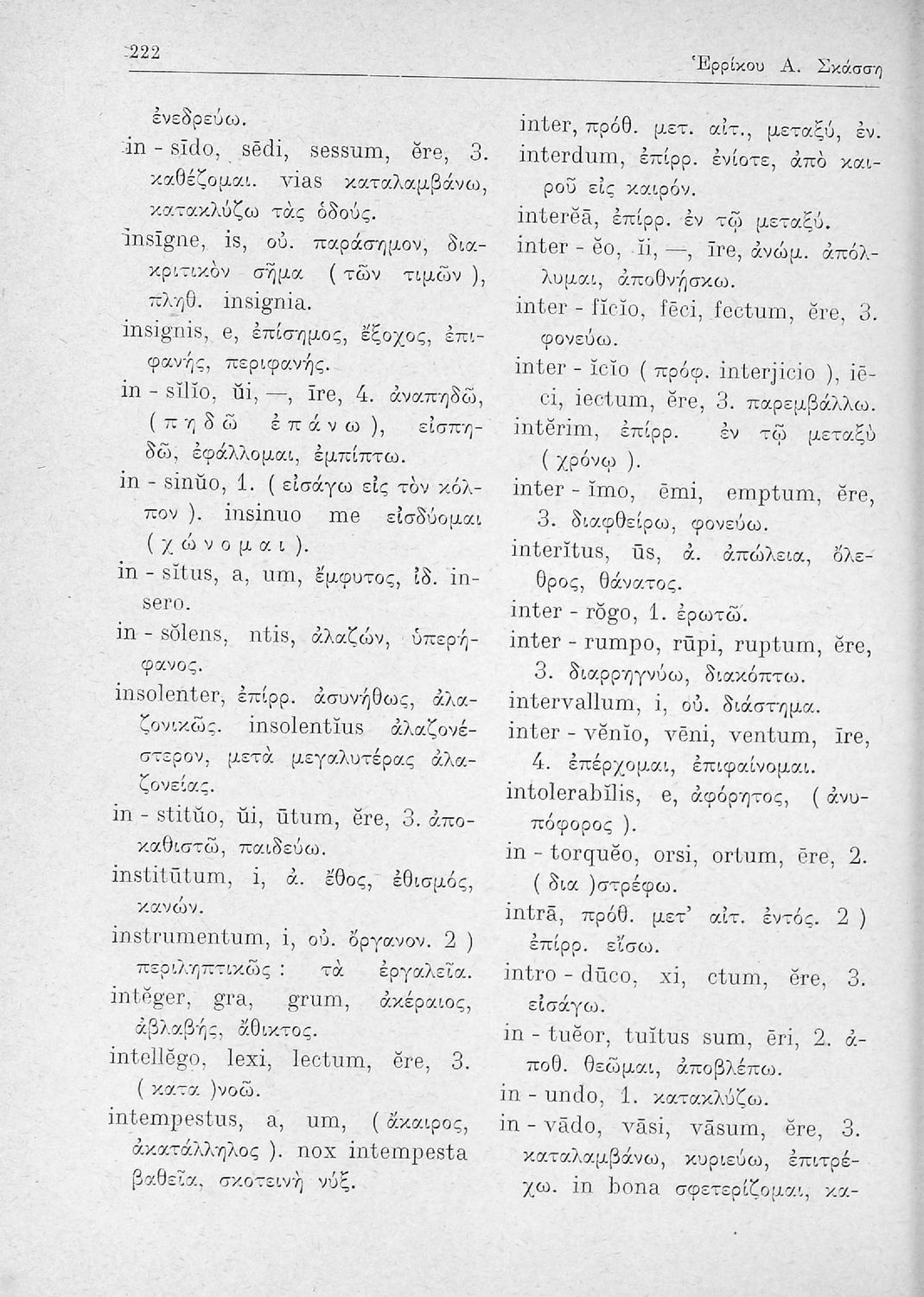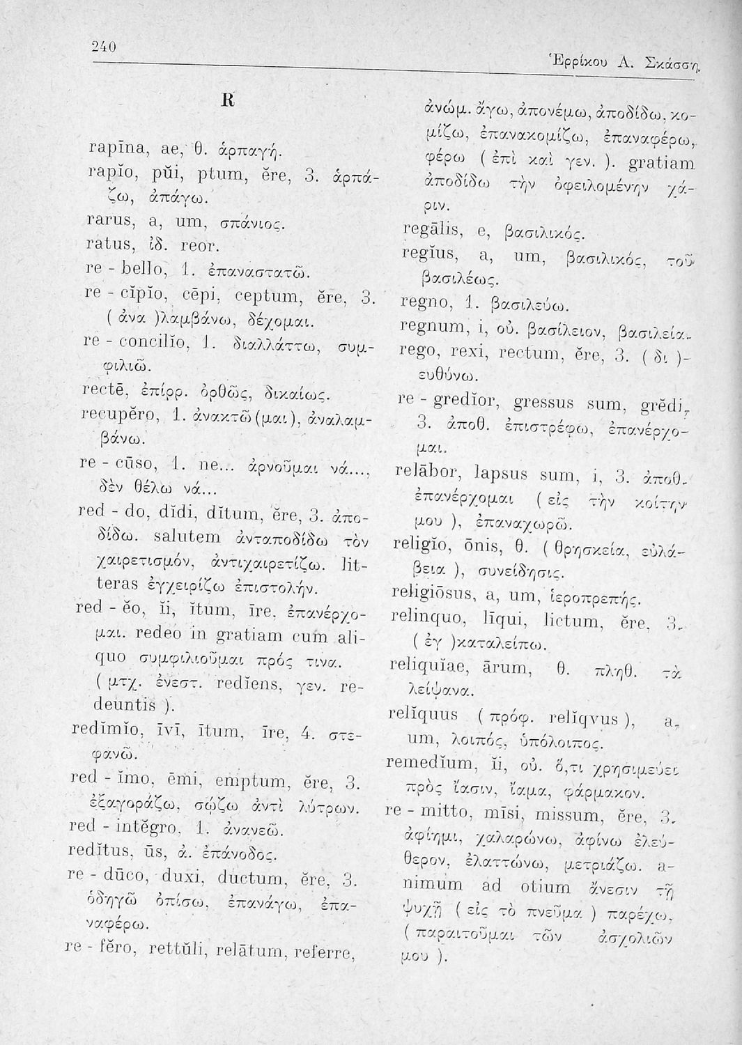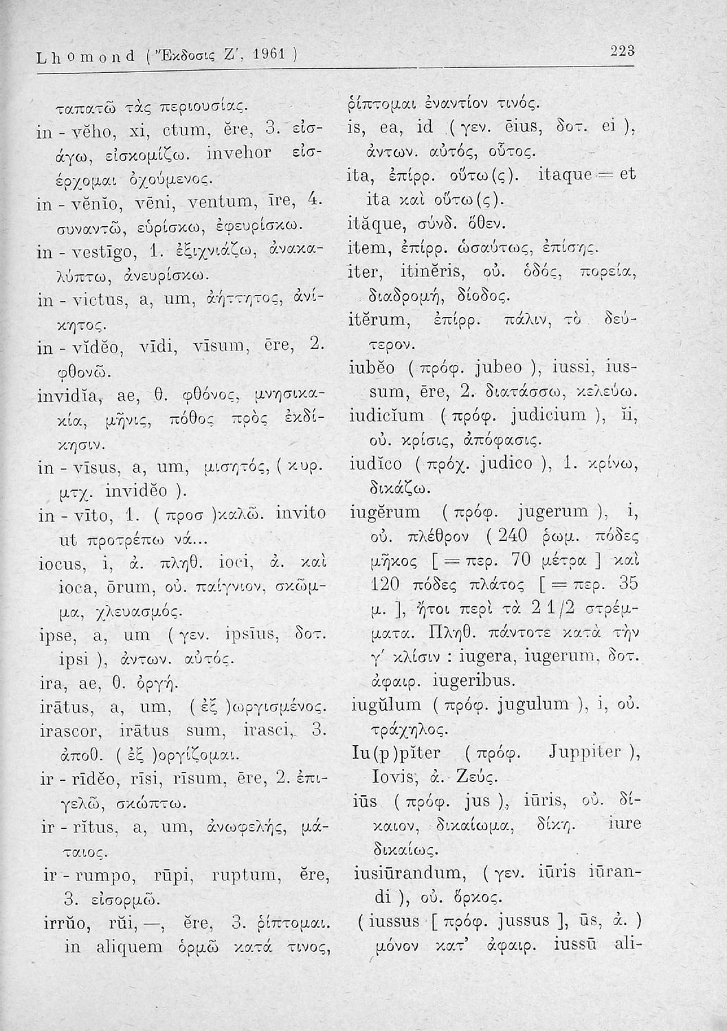 LDR 02123 2200217 4500 035 ## _a01-17315 040 ## _aΙνστιτούτο Εκπαιδευτικής Πολιτικής 041 ## _ael 100 ## _aΚυριάκος Κοσμάς _aLhomond _aΕρρίκος Σκάσσης (σχόλια) 110 ## _a17315 245 0# _aΑναγνωστικόν της λατινικής γλώσσης δια την Γ΄ τάξιν των Εξαταξίων Γυμνασίων, De viris illustribus urbis Romae 250 ## _a11η Έκδοση 260 ## _aΑθήνα _bΟργανισμός Εκδόσεως Σχολικών Βιβλίων _c1961 300 ## _a254 _c20 520 ## _aΑναγνωστικό Λατινικών για τη Γ΄ Γυμνασίου που περιέχει 54 κείμενα/περικοπές στα λατινικά, ερμηνευτικά υπομνήματα, λεξιλόγιο και κατάλογο με τα συντακτικά φαινόμενα (αφαιρετική, προθέσεις, σύνδεσμοι) που διδάσκονται με βάση τις περικοπές. Αναγνωστικό Λατινικών που περιέχει σύντομο βιογραφικό σημείωμα του Lhomond, 64 αποσπάσματα από το Σχολικό εγχειρίδιο του, ερμηνευτικές σημειώσεις και λεξιλόγιο. Παρουσιάζει βίους επιφανών Ρωμαίων από το 753 π.Χ μέχρι το 14 μ.Χ. Ο επιμελητής ήταν καθηγητής της Λατινικής Φιλολογίας στο Πανεπιστήμιο Αθηνών. 521 ## _aΓ' Γυμνασίου 522 ## _aΕλλάδα 546 ## _aΑπλή καθαρεύουσα 563 ## _aΣκληρό Εξώφυλλο 583 ## _a1049/27-4-1961 _c1961 650 #4 _aΑινείας _aΑννίβας _aΑσκληπιός _aΑύγουστος _aΒρούτος _aΓαλάτες _aΚαίσαρας _aΚαρχηδόνα _aΚιγκιννάτος _aΚικέρωνας _aΠάτροκλος _aΡωμύλος _aΣαβίνοι _aΣκιπίων _aΤυρταίος