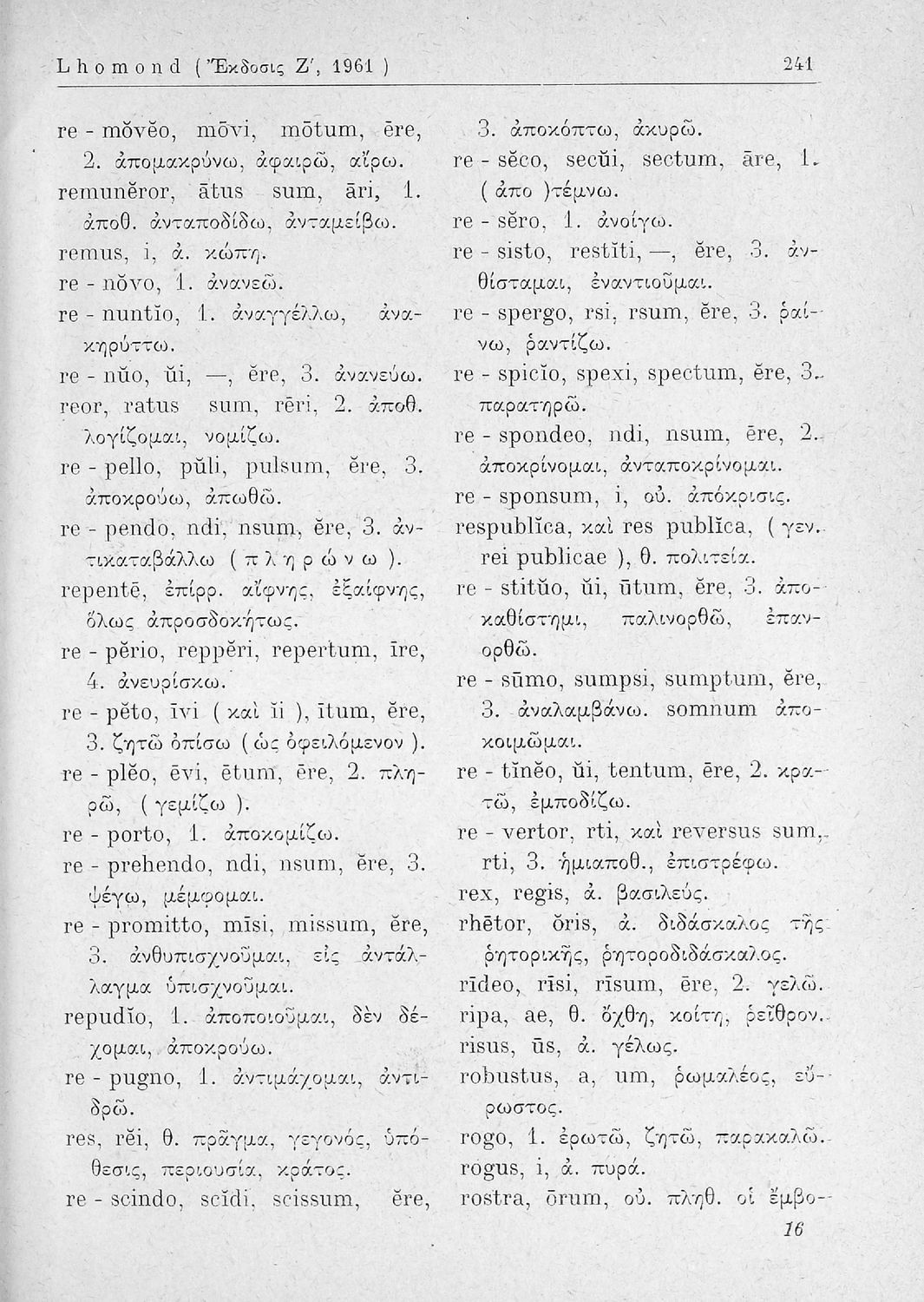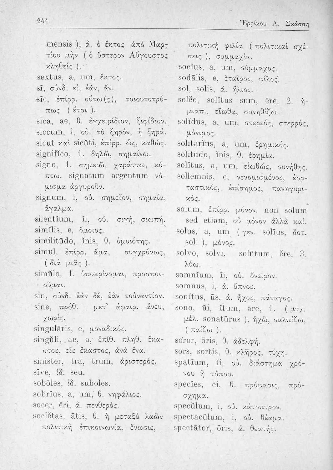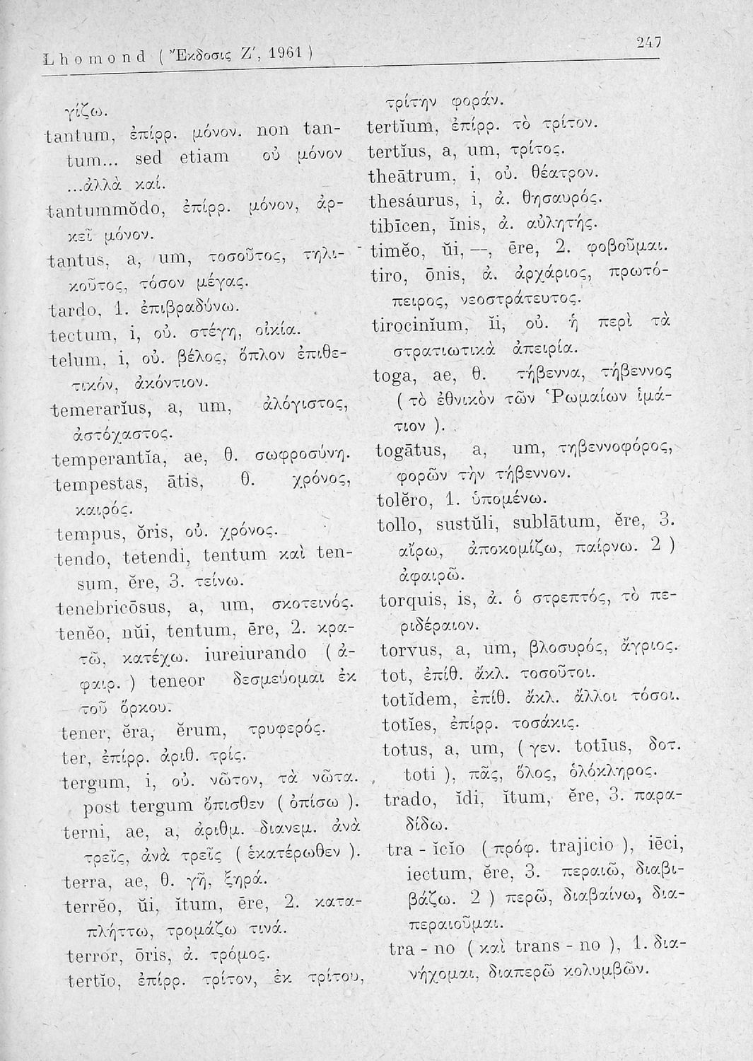 Σχολικό εγχειρίδιο Λατινικών για τη Γ΄ Γυμνασίου που περιέχει 54 κείμενα/περικοπές στα λατινικά, ερμηνευτικά υπομνήματα, λεξιλόγιο και κατάλογο με τα συντακτικά φαινόμενα (αφαιρετική, προθέσεις, σύνδεσμοι) που