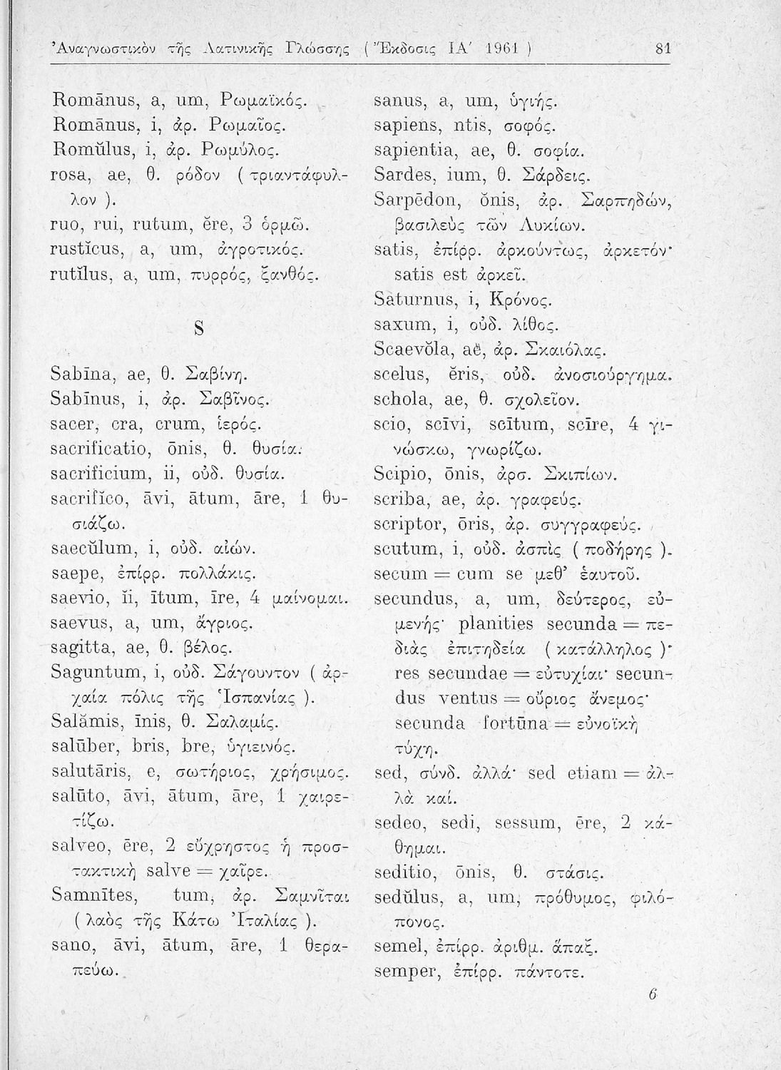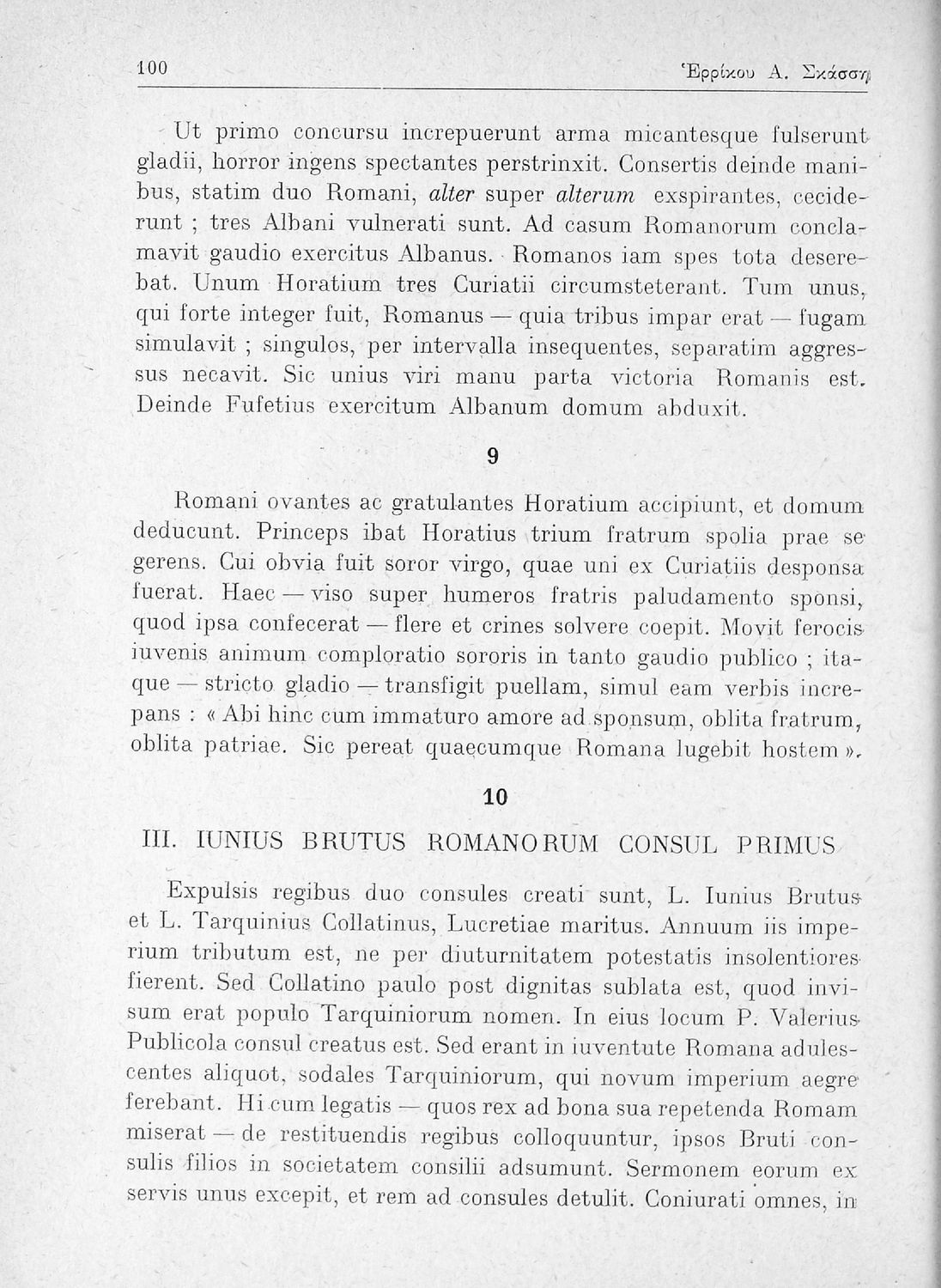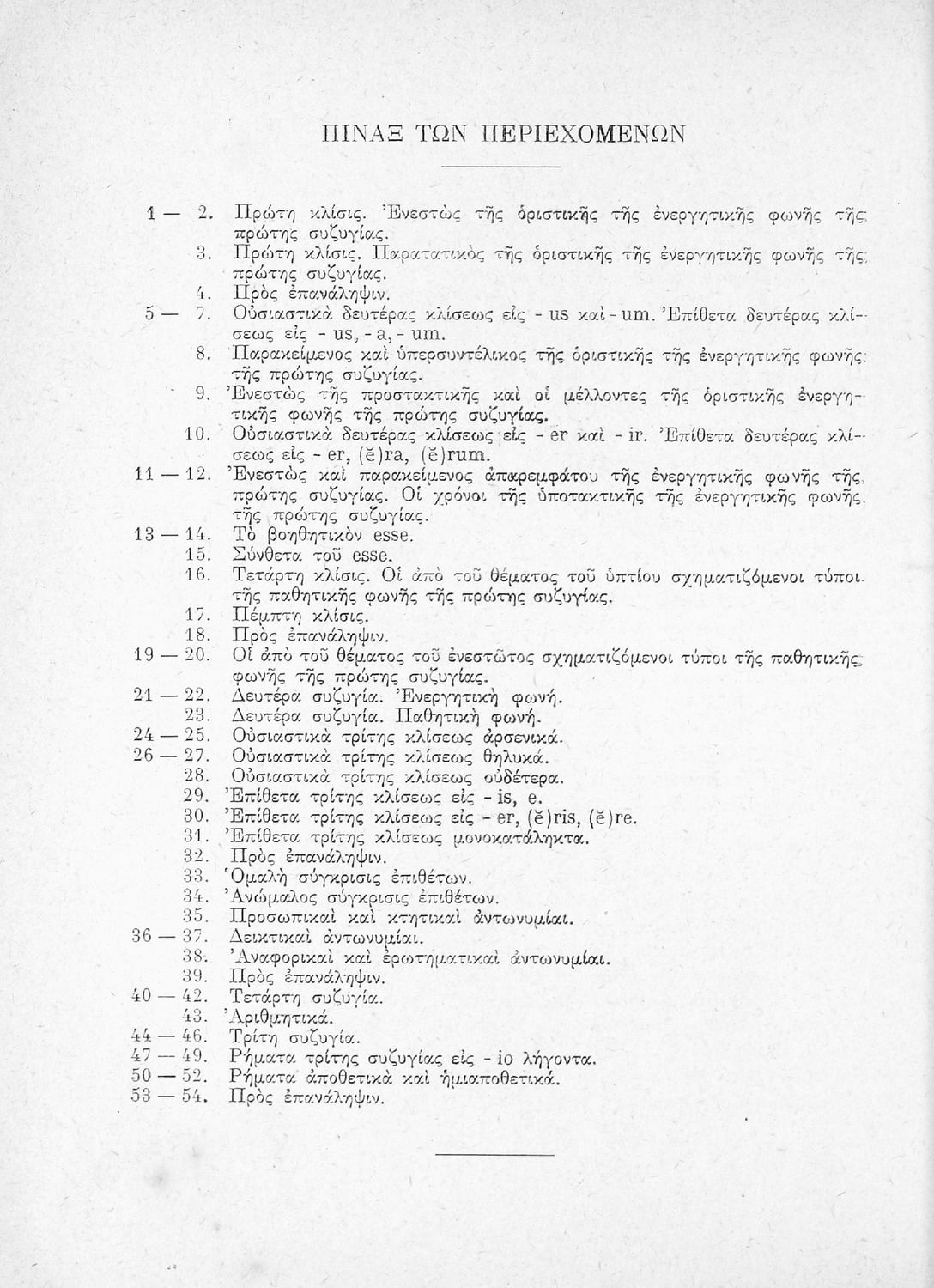 Αναγνωστικό Λατινικών για τη Γ΄ Γυμνασίου που περιέχει 54 κείμενα/περικοπές στα λατινικά, ερμηνευτικά υπομνήματα, λεξιλόγιο και κατάλογο με τα συντακτικά φαινόμενα (αφαιρετική, προθέσεις, σύνδεσμοι) που διδάσκονται με βάση τις περικοπές. Αναγνωστικό Λατινικών που περιέχει σύντομο βιογραφικό σημείωμα του Lhomond, 64 αποσπάσματα από το Σχολικό εγχειρίδιο του, ερμηνευτικές σημειώσεις και λεξιλόγιο. Παρουσιάζει βίους επιφανών Ρωμαίων από το 753 π.Χ μέχρι το 14 μ.Χ. Ο επιμελητής ήταν καθηγητής της Λατινικής Φιλολογίας στο Πανεπιστήμιο Αθηνών.