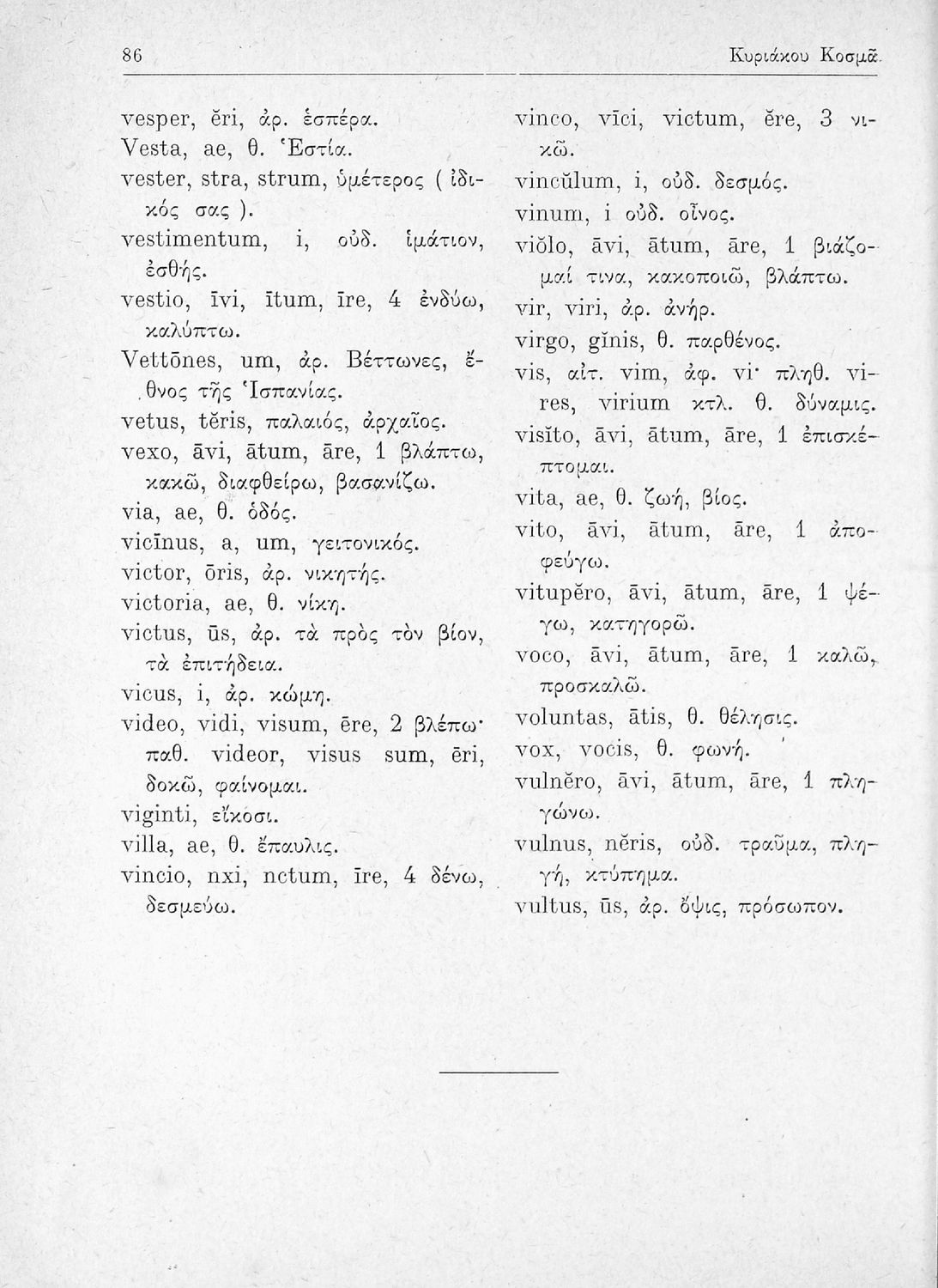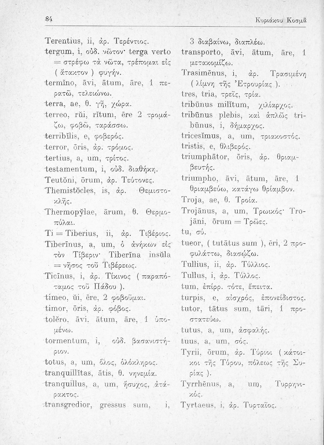 LDR 02123 2200217 4500 035 ## _a01-17315 040 ## _aΙνστιτούτο Εκπαιδευτικής Πολιτικής 041 ## _ael 100 ## _aΚυριάκος Κοσμάς _aLhomond _aΕρρίκος Σκάσσης (σχόλια) 110 ## _a17315 245 0# _aΑναγνωστικόν της λατινικής γλώσσης δια την Γ΄ τάξιν των Εξαταξίων Γυμνασίων, De viris illustribus urbis Romae 250 ## _a11η Έκδοση 260 ## _aΑθήνα _bΟργανισμός Εκδόσεως Σχολικών Βιβλίων _c1961 300 ## _a254 _c20 520 ## _aΑναγνωστικό Λατινικών για τη Γ΄ Γυμνασίου που περιέχει 54 κείμενα/περικοπές στα λατινικά, ερμηνευτικά υπομνήματα, λεξιλόγιο και κατάλογο με τα συντακτικά φαινόμενα (αφαιρετική, προθέσεις, σύνδεσμοι) που διδάσκονται με βάση τις περικοπές. Αναγνωστικό Λατινικών που περιέχει σύντομο βιογραφικό σημείωμα του Lhomond, 64 αποσπάσματα από το Σχολικό εγχειρίδιο του, ερμηνευτικές σημειώσεις και λεξιλόγιο. Παρουσιάζει βίους επιφανών Ρωμαίων από το 753 π.Χ μέχρι το 14 μ.Χ. Ο επιμελητής ήταν καθηγητής της Λατινικής Φιλολογίας στο Πανεπιστήμιο Αθηνών. 521 ## _aΓ' Γυμνασίου 522 ## _aΕλλάδα 546 ## _aΑπλή καθαρεύουσα 563 ## _aΣκληρό Εξώφυλλο 583 ## _a1049/27-4-1961 _c1961 650 #4 _aΑινείας _aΑννίβας _aΑσκληπιός _aΑύγουστος _aΒρούτος _aΓαλάτες _aΚαίσαρας _aΚαρχηδόνα _aΚιγκιννάτος _aΚικέρωνας _aΠάτροκλος _aΡωμύλος _aΣαβίνοι _aΣκιπίων _aΤυρταίος