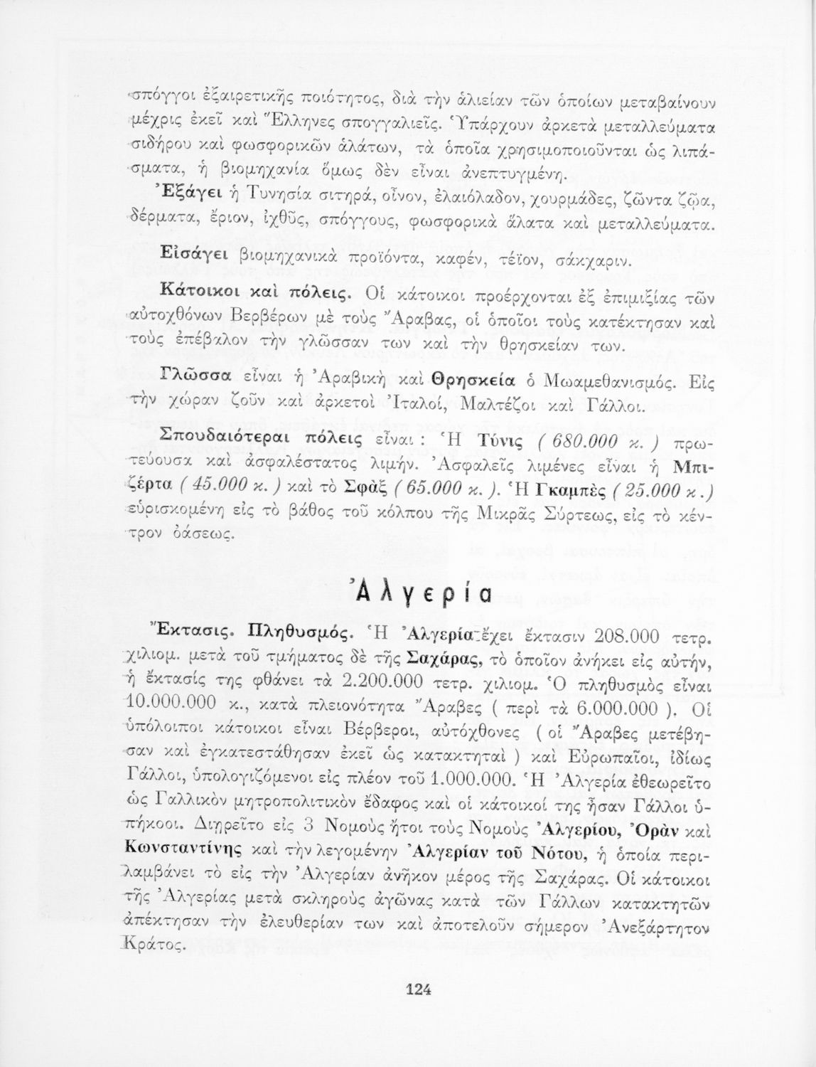 Σχολικό εγχειρίδιο Γεωγραφίας που εξετάζει ενδεικτικές χώρες και περιοχές από τις πέντε ηπείρους εκτός της Ευρώπης από γεωφυσική και οικονομική πλευρά. Φέρει το σύμβολο της δικτατορίας.