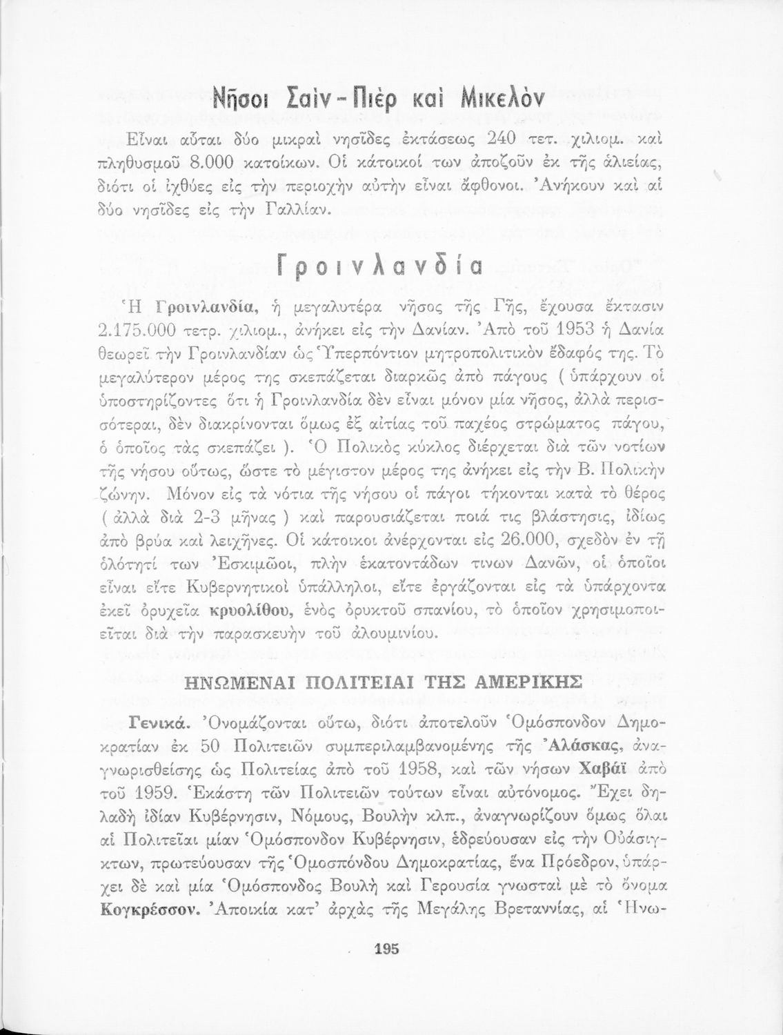 Βαθμίδα εκπαίδευσης: Δευτεροβάθμια Τάξη: Γ' Γυμνασίου Μάθημα: Γεωγραφία Γλώσσα: Απλή καθαρεύουσα Παρουσίαση περιεχομένου: Σχολικό εγχειρίδιο Γεωγραφίας Γ΄ Γυμνασίου που παρουσιάζει τα γενικά πολιτικά, οικονομικά και γεωφυσικά χαρακτηριστικά των ηπείρων πλην της Ευρώπης και εξετάζει ενδεικτικές χώρες και περιοχές |