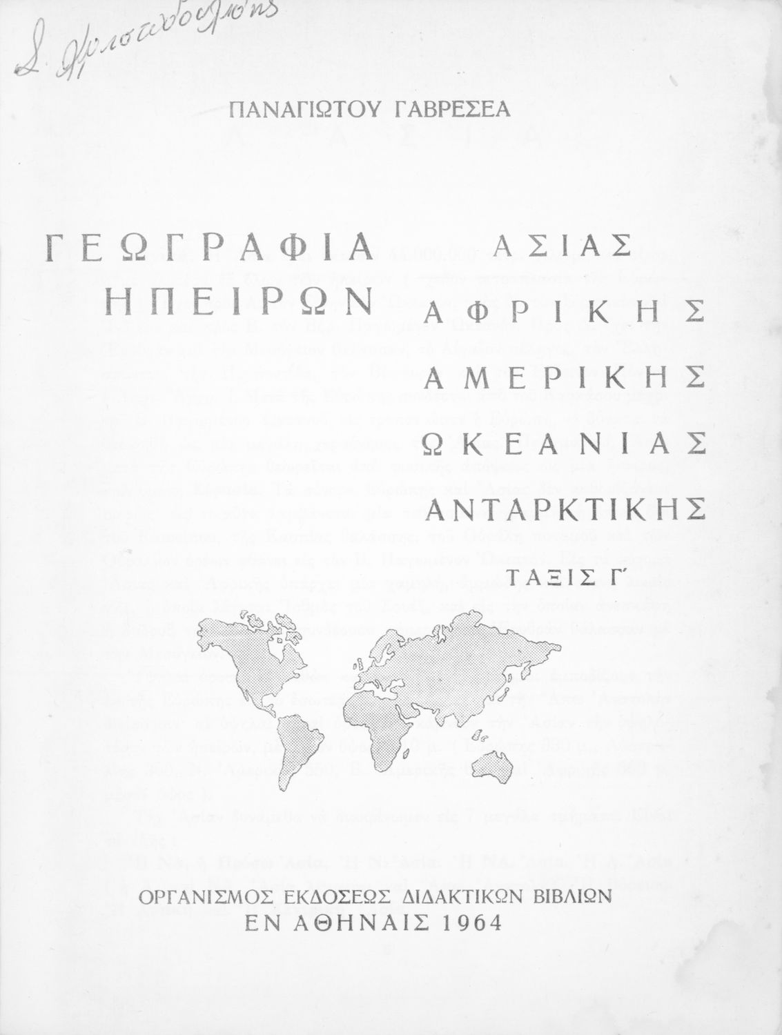 Τίτλος: Γεωγραφία Ηπείρων Ασίας, Αφρικής, Αμερικής, Ωκεανίας, Ανταρκτικής τάξις Γ΄
