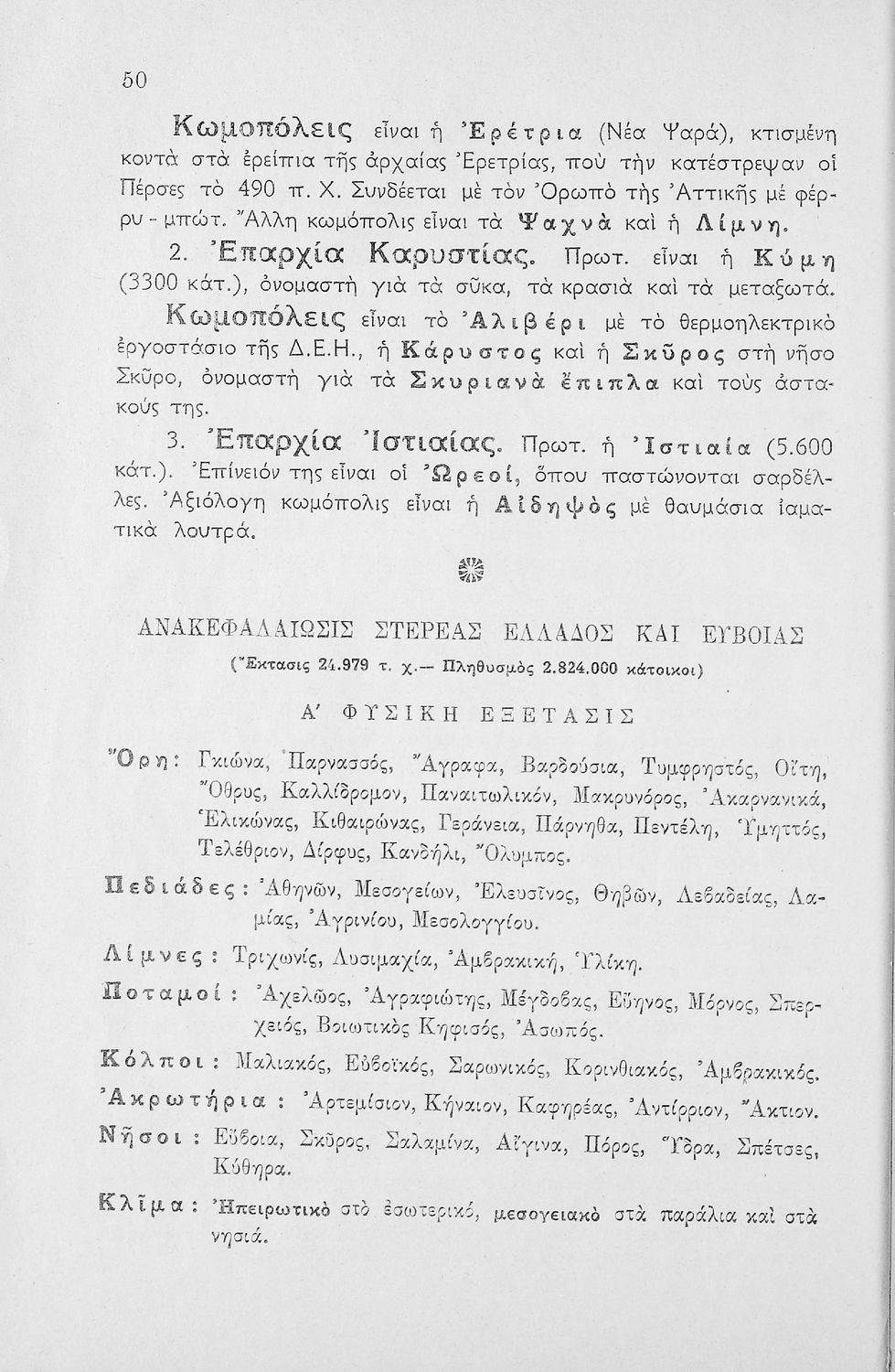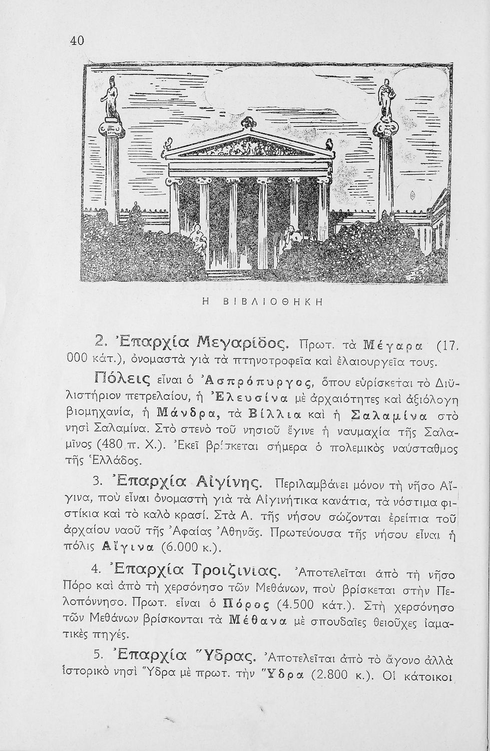 Μαθητικό βοήθημα Γεωγραφίας Δ΄ Δημοτικού που περιλαμβάνει εισαγωγή στην πατριδογνωσία και εξετάζει την Ελλάδα ανά διαμέρισμα και νομό από γεωφυσική, οικονομική και πολιτική άποψη.