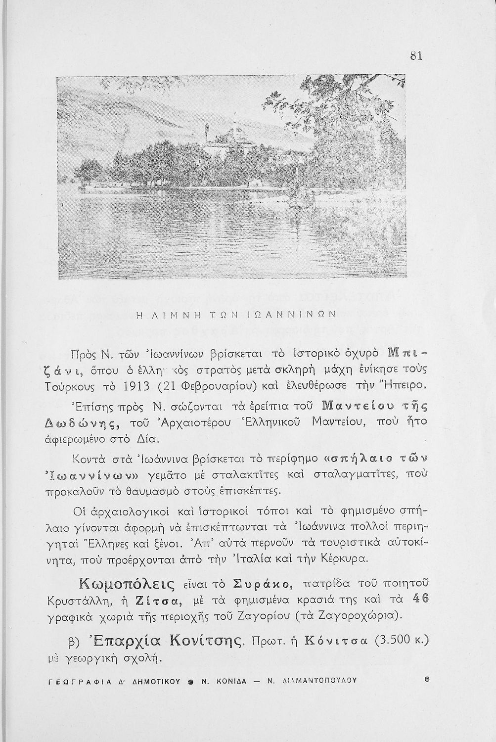 Κωδικός αναγνώρισης: 01-17318 Τίτλος: Γεωγραφία της Ελλάδος για την Δ΄ τάξι (και για τις συνδιδασκόμενες Γ΄ και Δ΄ τάξεις) Συγγραφέας: Ν. Κονιδάς, Ν. Διαμαντόπουλος Μέγεθος και υπόστρωμα: Μαθητικό βοήθημα, 22εκ., μαλακό εξώφυλλο, 156 σελίδες. Σκίτσα και φωτογραφίες (ασπρόμαυρα) και χάρτες (έγχρωμοι). |