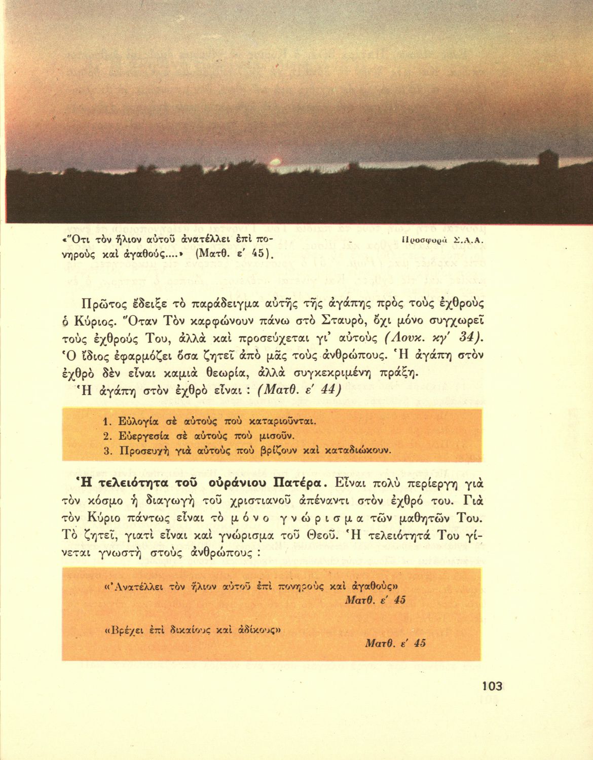 Σχολικό εγχειρίδιο Θρησκευτικών Β' Γυμνασίου που περιλαμβάνει τη διδασκαλία του Ιησού Χριστού και την ιστορία της δημιουργίας, της εδραίωσης και της εξάπλωσης της χριστιανικής εκκλησίας από την εποχή των Αποστόλων μέχρι τη συγκρότηση του Παγκόσμιου Συμβουλίου Εκκλησιών.
