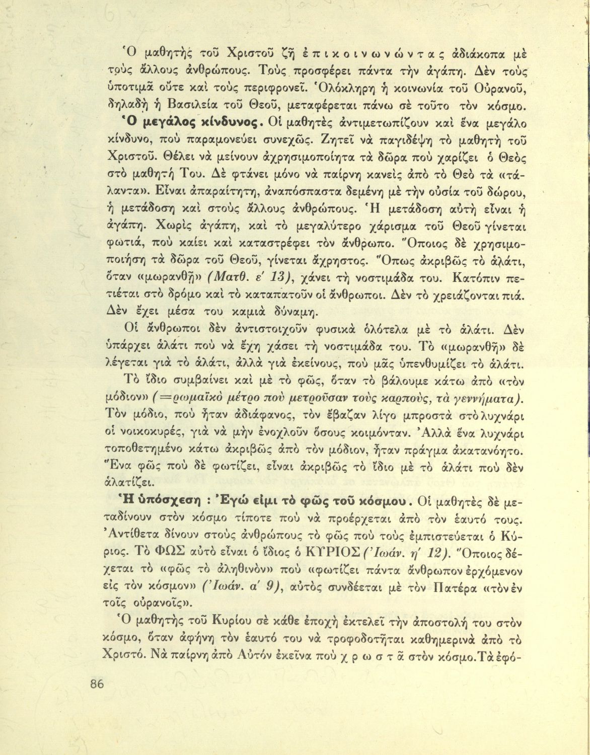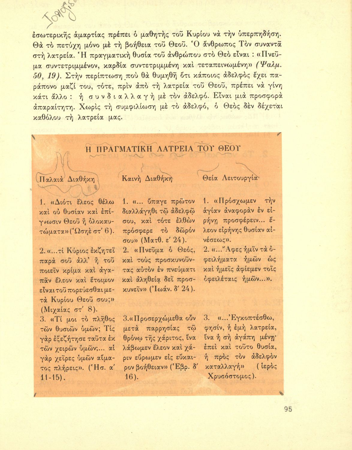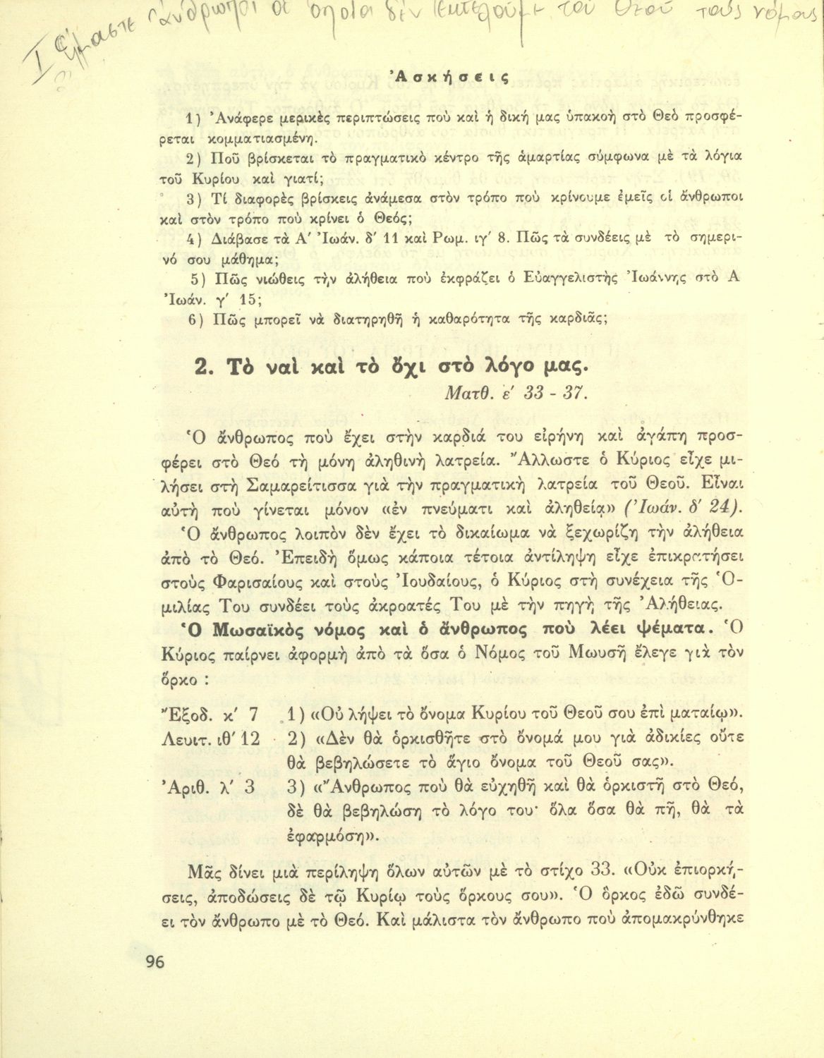 Σχολικό εγχειρίδιο Θρησκευτικών Β' Γυμνασίου που περιλαμβάνει τη διδασκαλία του Ιησού Χριστού και την ιστορία της δημιουργίας, της εδραίωσης και της εξάπλωσης της χριστιανικής εκκλησίας από την εποχή των Αποστόλων μέχρι τη συγκρότηση του Παγκόσμιου Συμβουλίου Εκκλησιών.