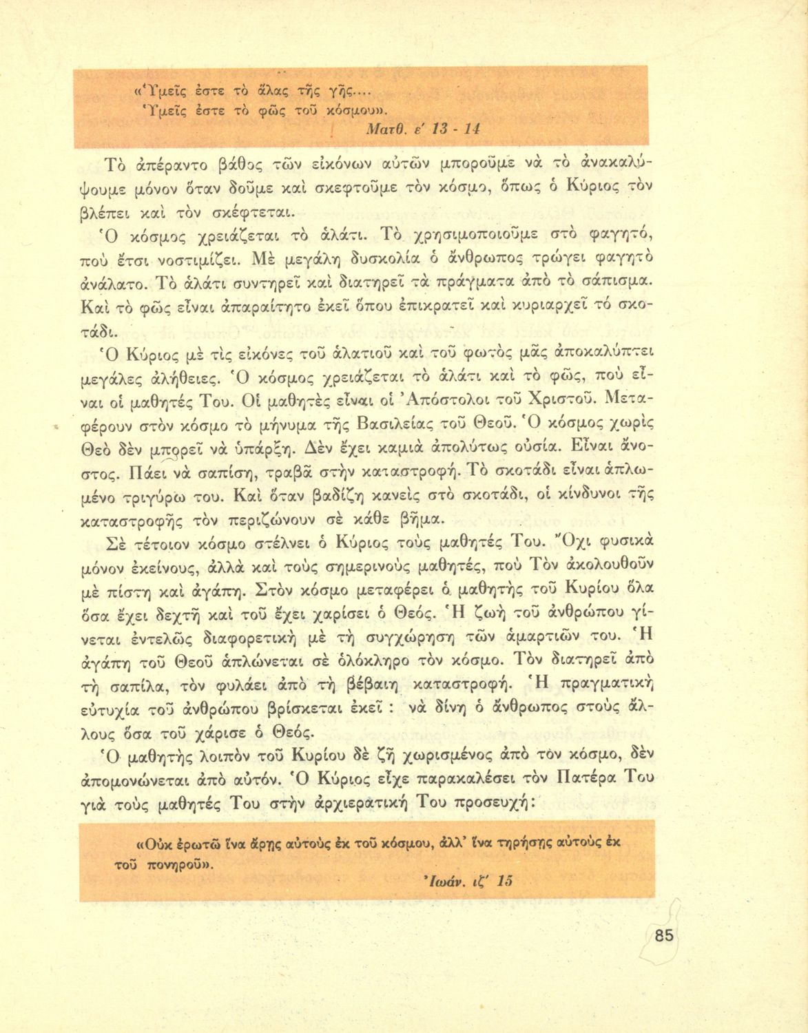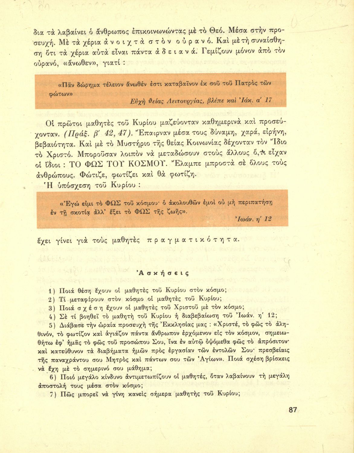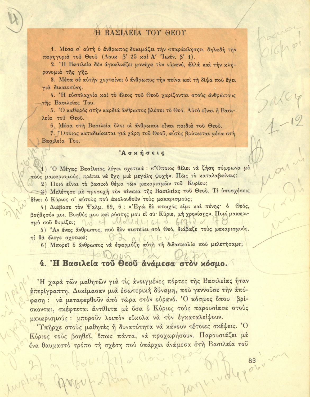 Σχολικό εγχειρίδιο Θρησκευτικών Β' Γυμνασίου που περιλαμβάνει τη διδασκαλία του Ιησού Χριστού και την ιστορία της δημιουργίας, της εδραίωσης και της εξάπλωσης της χριστιανικής εκκλησίας από την εποχή των Αποστόλων μέχρι τη συγκρότηση του Παγκόσμιου Συμβουλίου Εκκλησιών.
