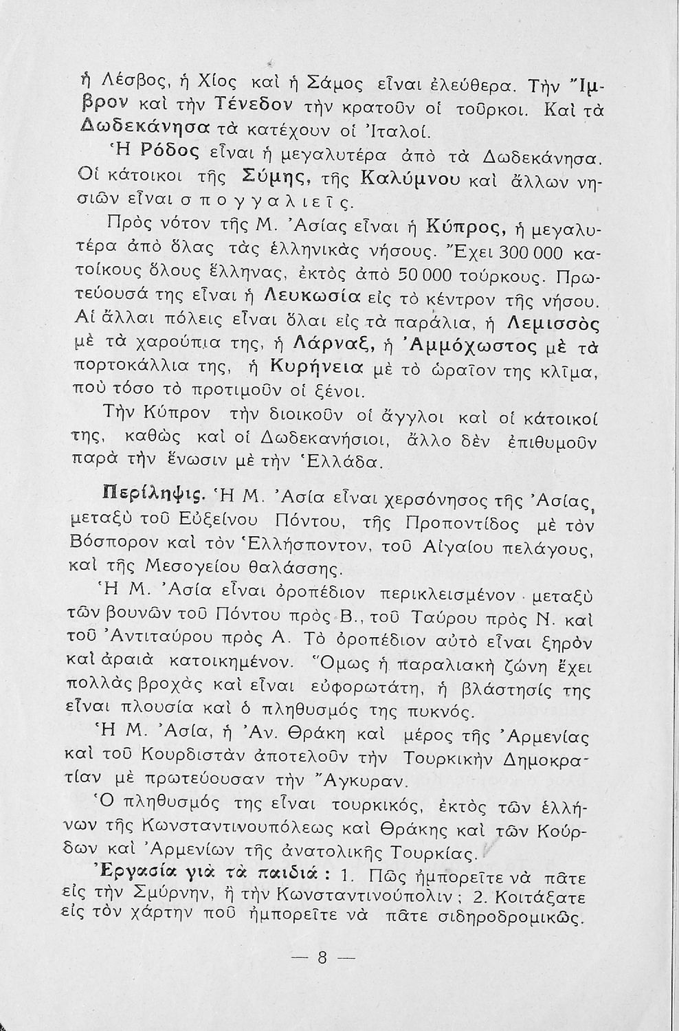 LDR 01131 2200193 4500 035 ## _a01-17322 040 ## _aΙνστιτούτο Εκπαιδευτικής Πολιτικής 041 ## _ael 100 ## _aΠ. Δημητράτος 110 ## _a17322 245 0# _aΜαθήματα γεωγραφίας εις τρία βιβλία δια τα παιδιά της πέμπτης Δημοτικού - Ήπειροι και Ωκεανοί 250 ## _a2η Έκδοση 260 ## _aΑθήνα _bΙωάννης Δ. Κολλάρος 300 ## _a110 _bΕικόνες, χάρτες (ασπρόμαυρες) _c20 520 ## _aΜαθητικό βοήθημα Γεωγραφίας Ε΄ Δημοτικού που περιλαμβάνει εισαγωγή στη φυσική και μαθηματική γεωγραφία και εστιάζει στις ηπείρους και τους ωκεανούς. Περιέχει κα εργασίες. 521 ## _aΕ' Δημοτικού 522 ## _aΕλλάδα 546 ## _aΑπλή καθαρεύουσα 650 #4 _aΑσία _aΕυρώπη _aΚλίμα _aΌροι _aΠληθυσμός _aΠόλεις