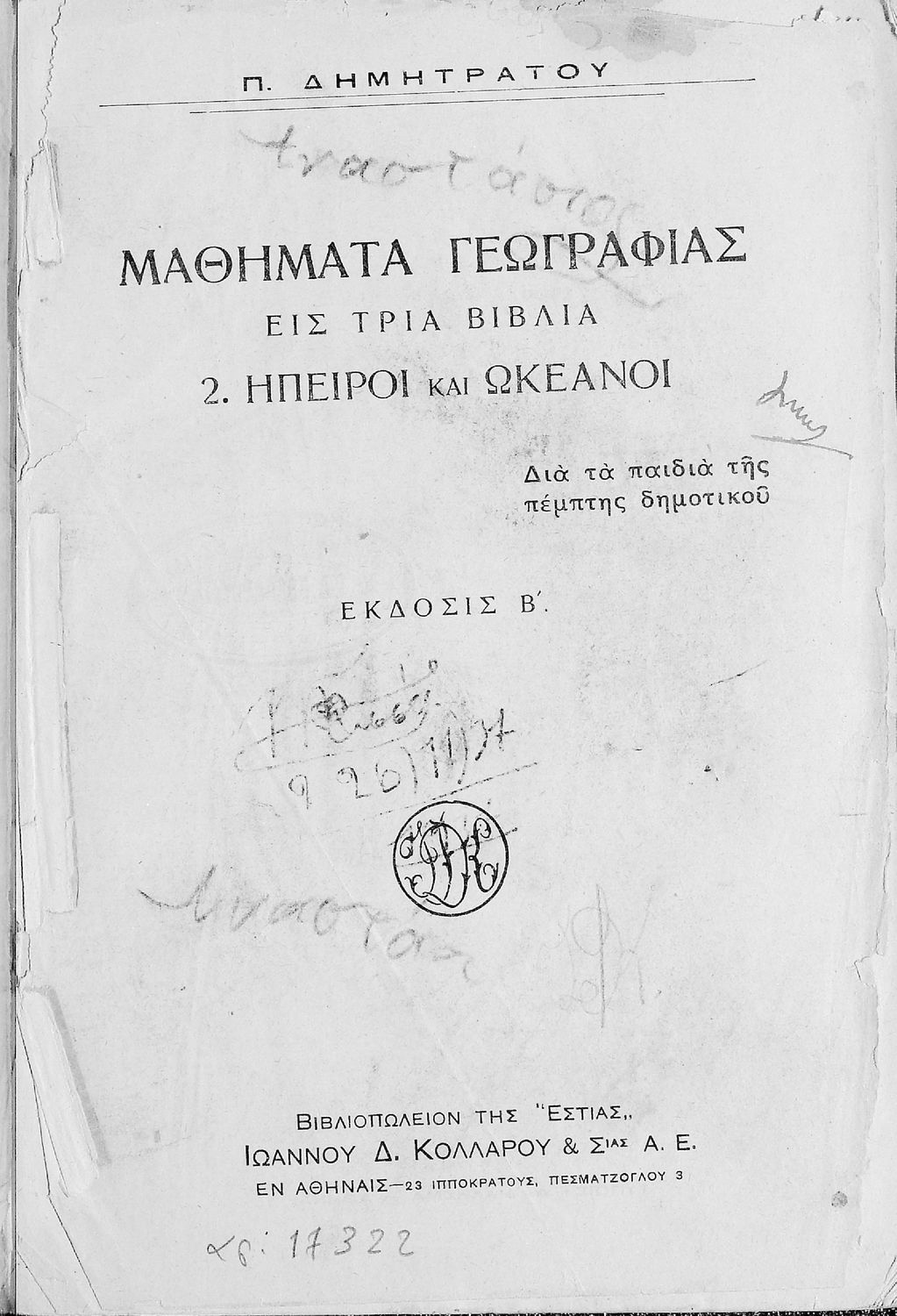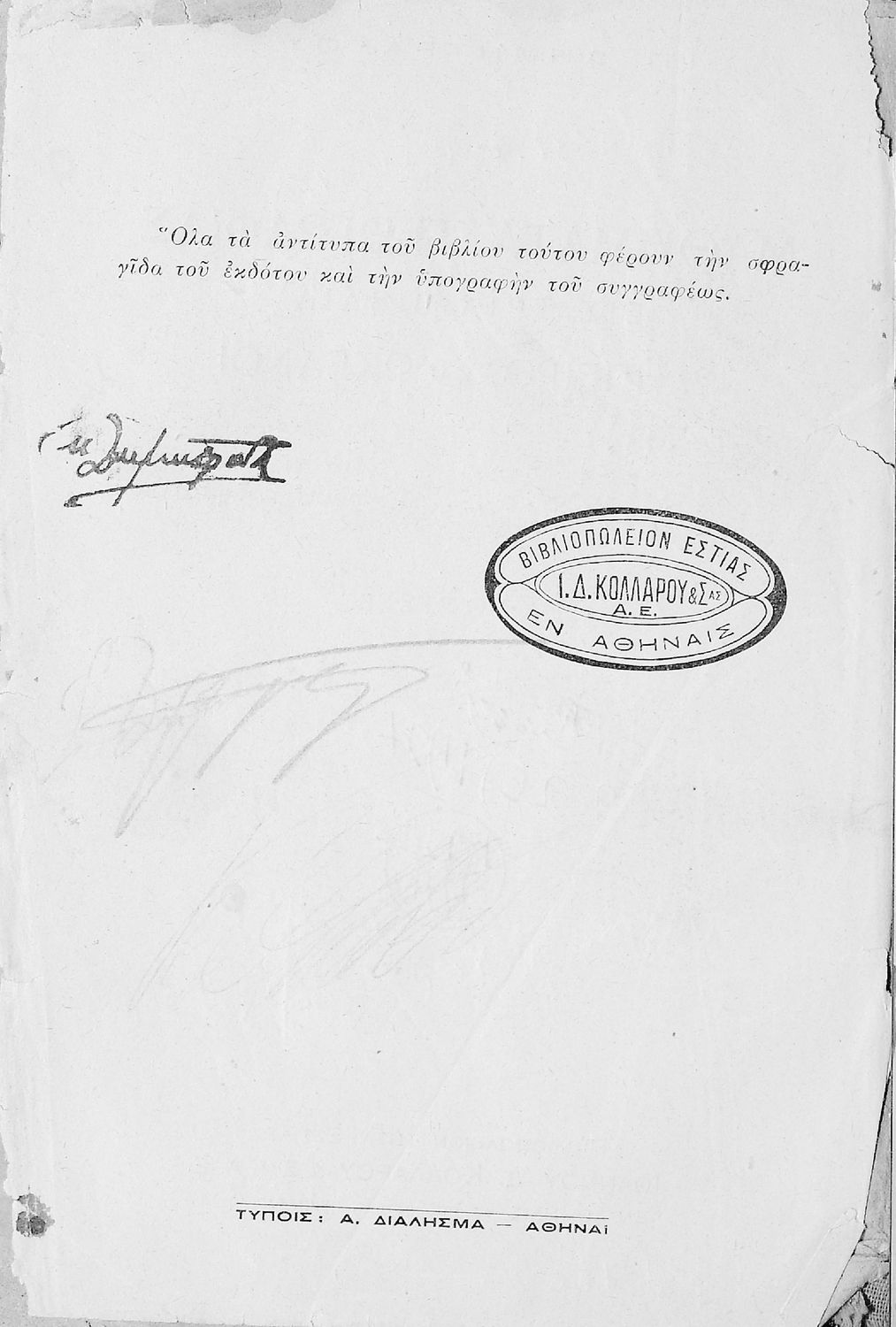 Εκδότης: Ιωάννης Δ. Κολλάρος Τόπος έκδοσης: Αθήνα Έκδοση: 2η |