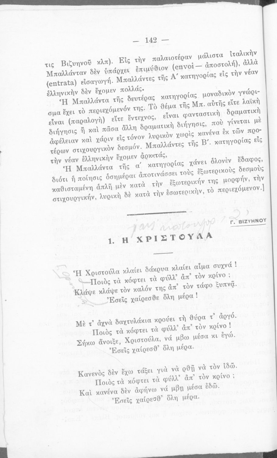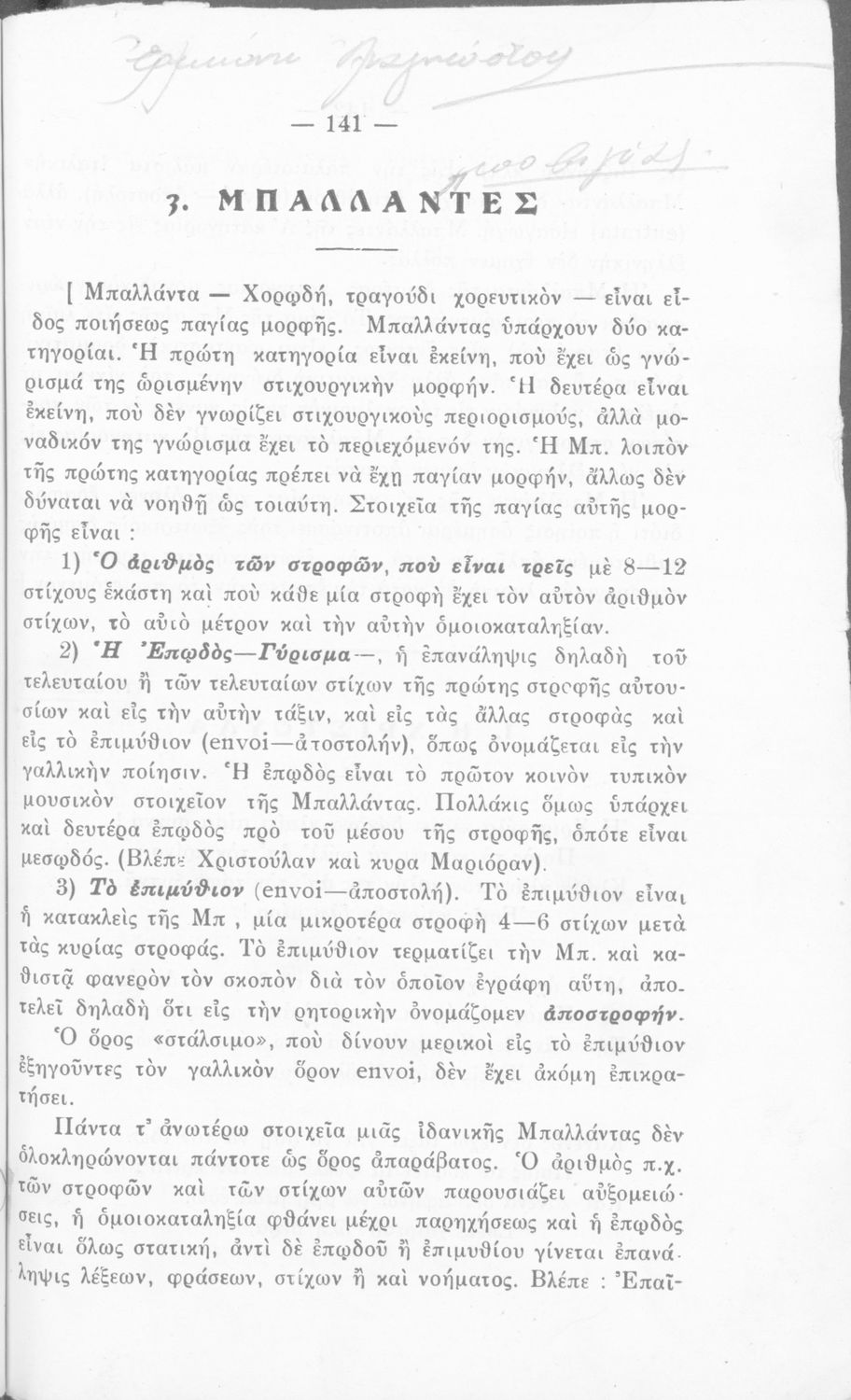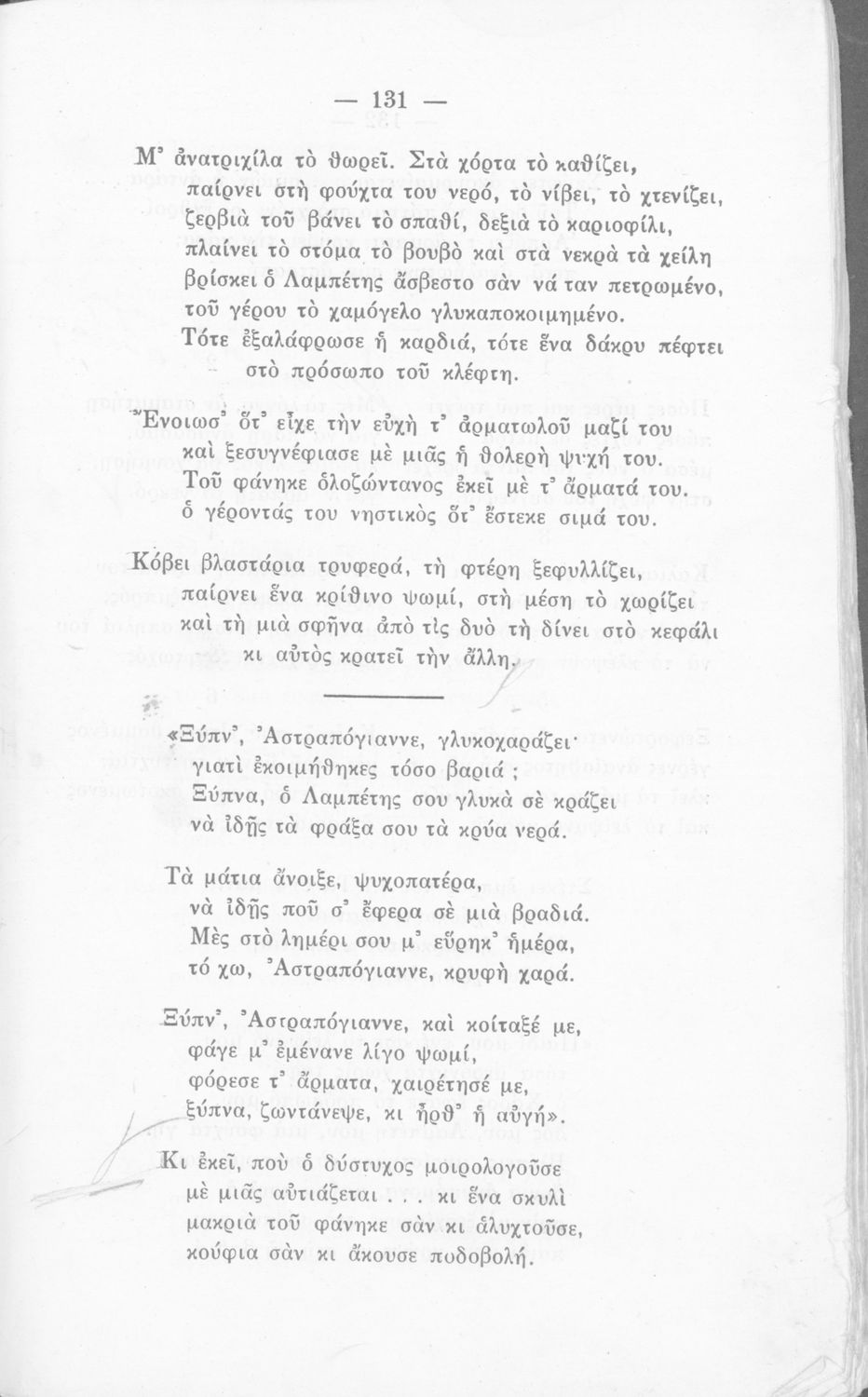 Σχολικό εγχειρίδιο για την Β΄ Γυμνασίου και την Γ΄ Αστικού Θηλέων για το μάθημα των Νέων Ελληνικών. Το εγχειρίδιο αποτελείται από κείμενα πεζού λόγου, επικολυρικά ποιήματα, ωδές, ηθογραφικά διηγήματα, ρητορικά