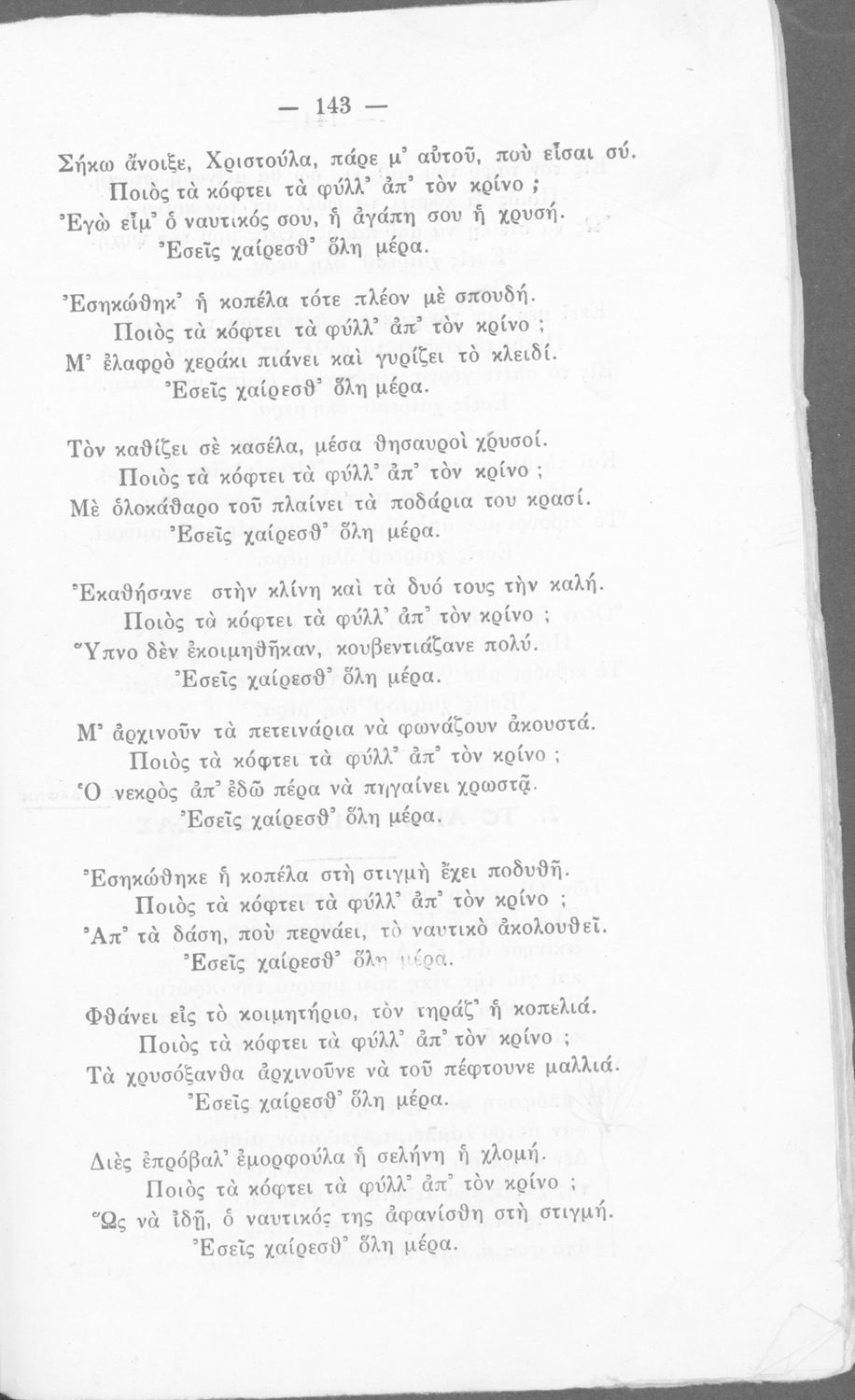 Σχολικό εγχειρίδιο Νέων Ελληνικών Γ' Ελληνικού Σχολείου που περιλαμβάνει ποιήματα και πεζά Ελλήνων συγγραφέων και δημοτικά τραγούδια εμπνευσμένα από την σύγχρονη ελληνική ιστορία, την ελληνική φύση και τη ζωή ...