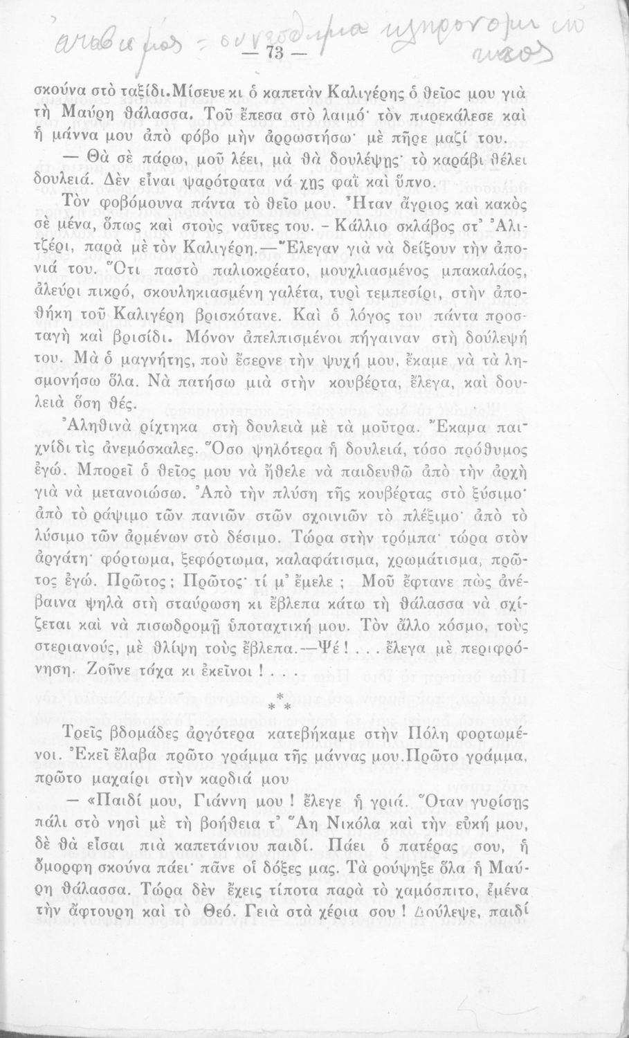 Σχολικό εγχειρίδιο για την Β΄ Γυμνασίου και την Γ΄ Αστικού Θηλέων για το μάθημα των Νέων Ελληνικών. Το εγχειρίδιο αποτελείται από κείμενα πεζού λόγου, επικολυρικά ποιήματα, ωδές, ηθογραφικά διηγήματα, ρητορικά