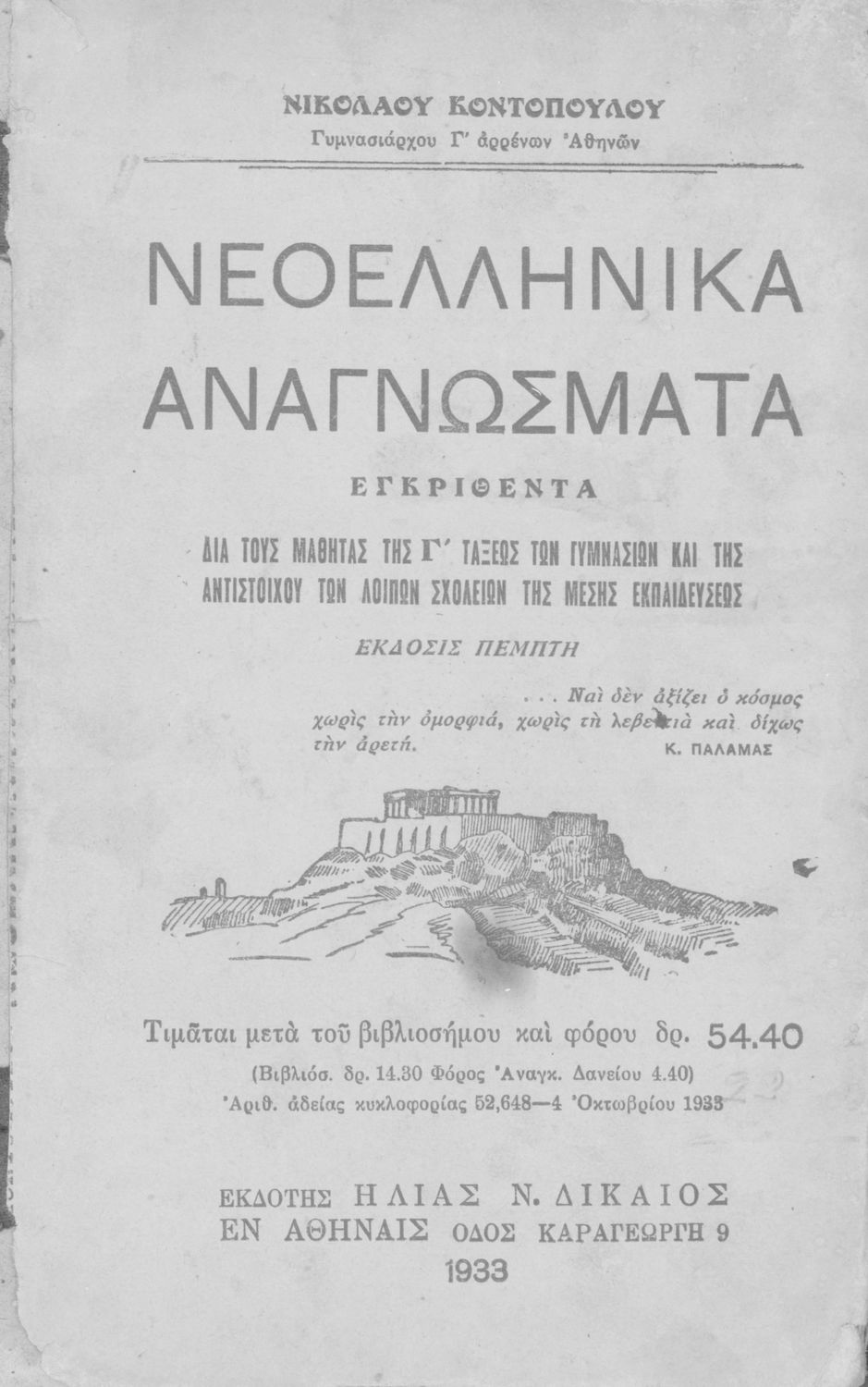 Εκδότης: Ηλίας Ν. Δικαίος Έτος έκδοσης: 1933 Τόπος έκδοσης: Αθήνα Έκδοση: 5η Υπουργική απόφαση / Σύμβαση: 41719/26-8-1933 Έτος έγκρισης: 1933 |