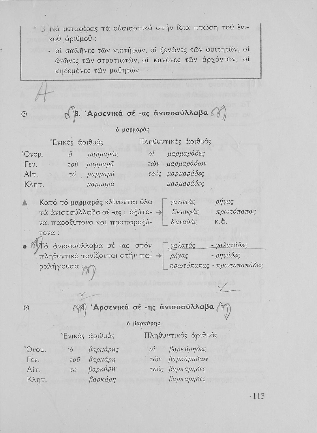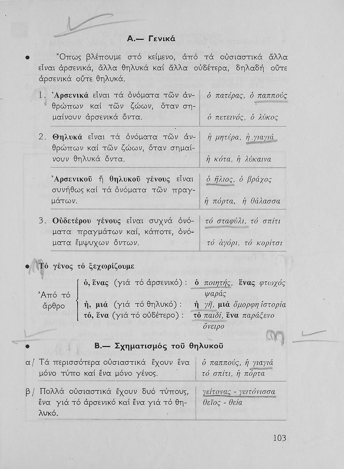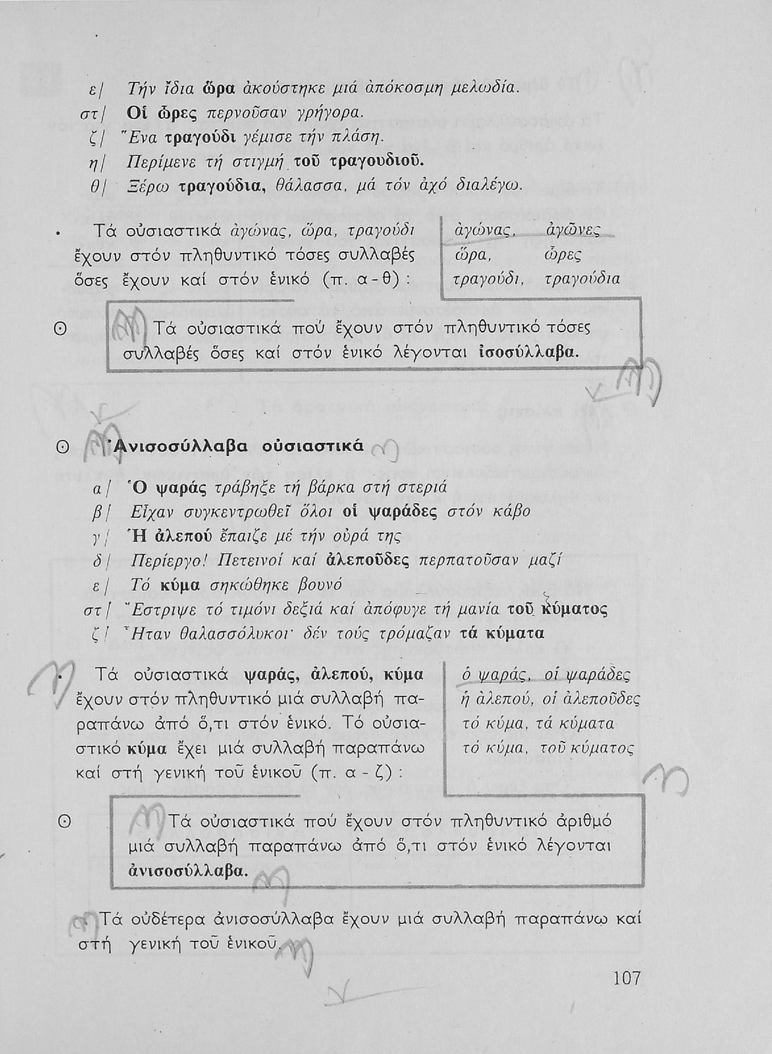 Σχολικό εγχειρίδιο της Ε΄ και ΣΤ΄ τάξης Δημοτικού για την γραμματική της ελληνικής γλώσσας με κανόνες και παραδείγματα. Στο επίμετρο υπάρχουν πίνακες με ανώμαλους σχηματισμούς ρημάτων.