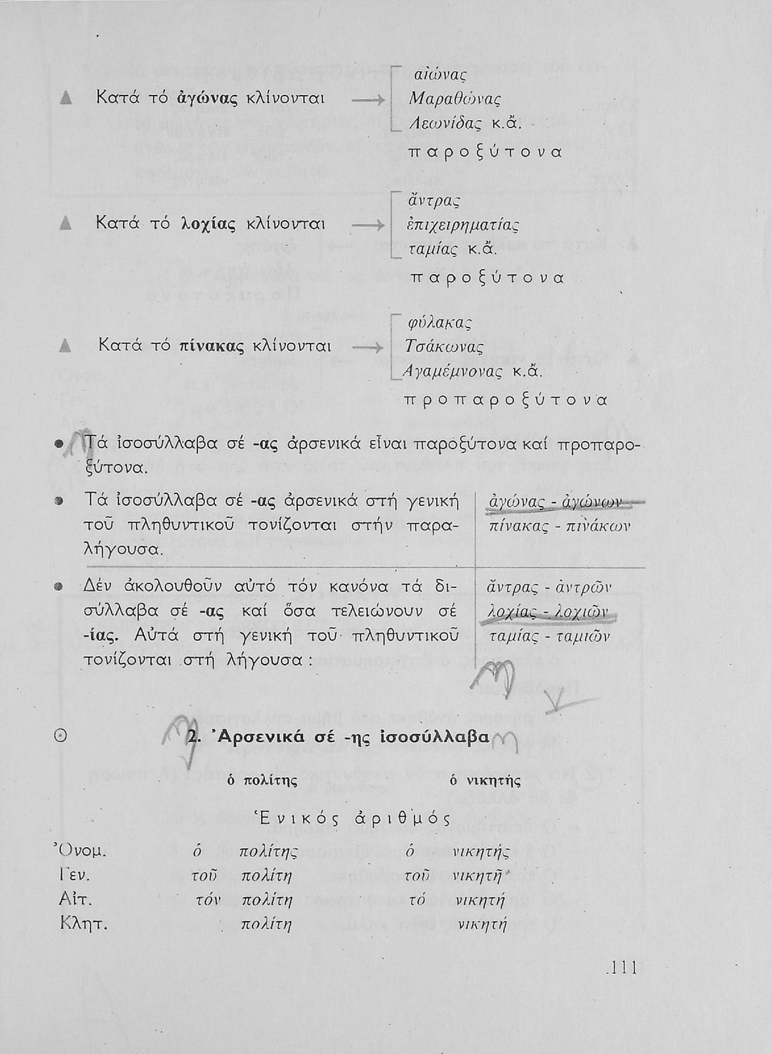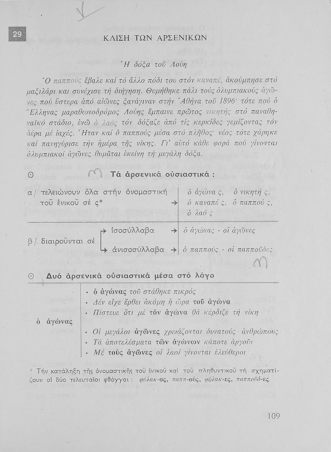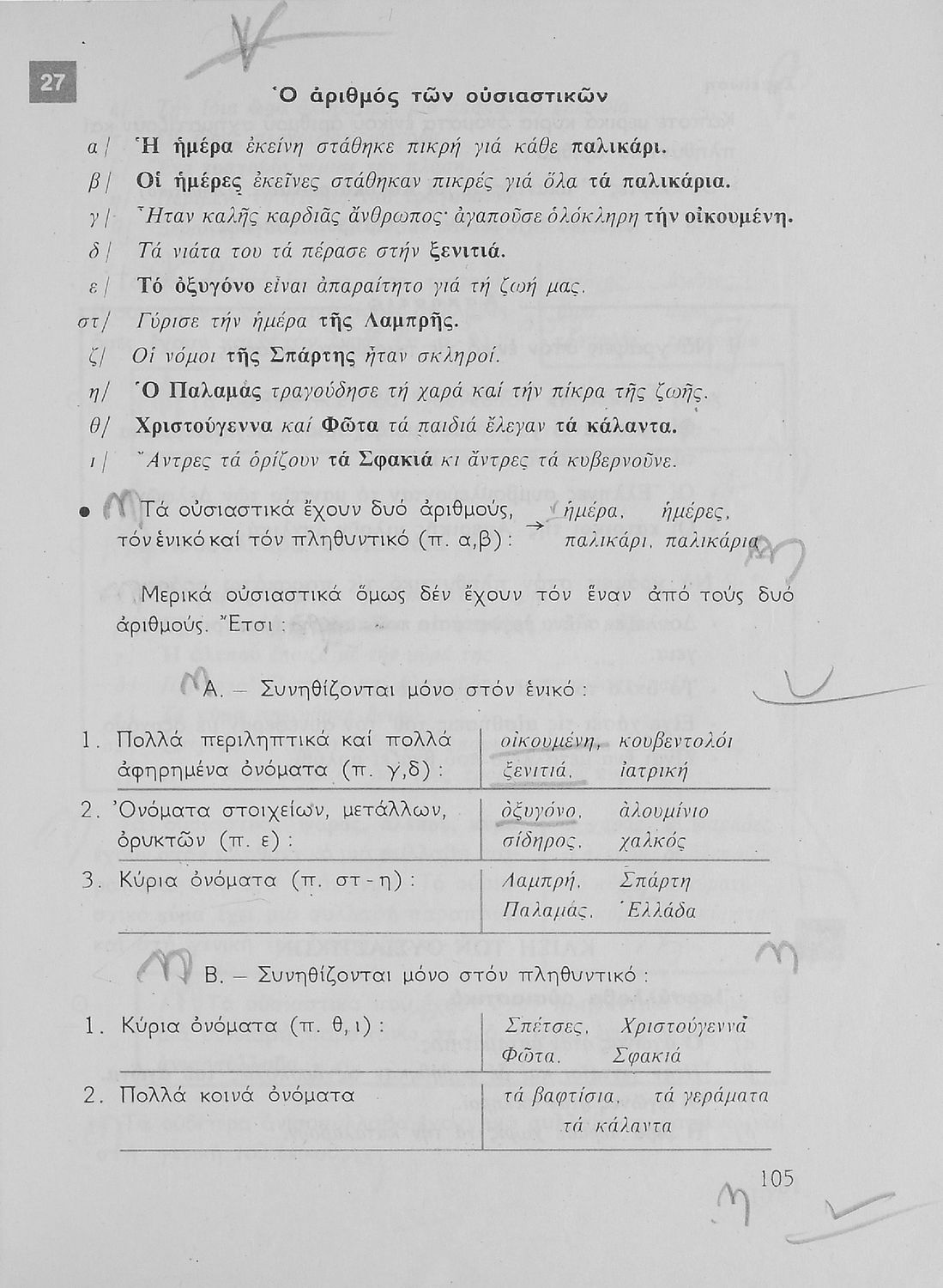 Σχολικό εγχειρίδιο για την Ε΄ και ΣΤ΄ τάξη Δημοτικού με γραμματικούς κανόνες και παραδείγματα για τα κλιτά και άκλιτα μέρη του λόγου.