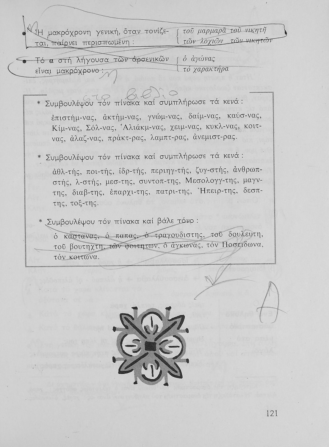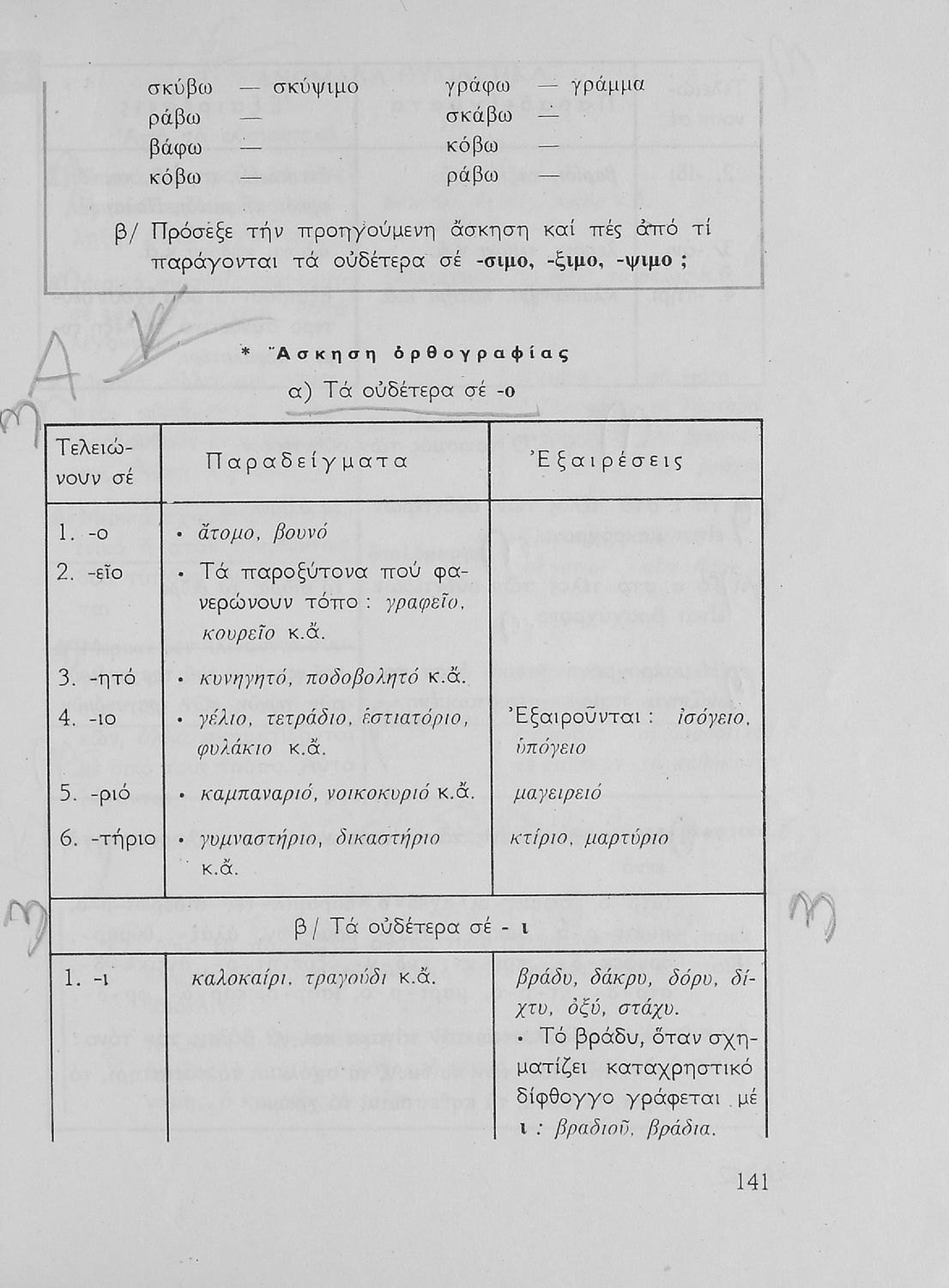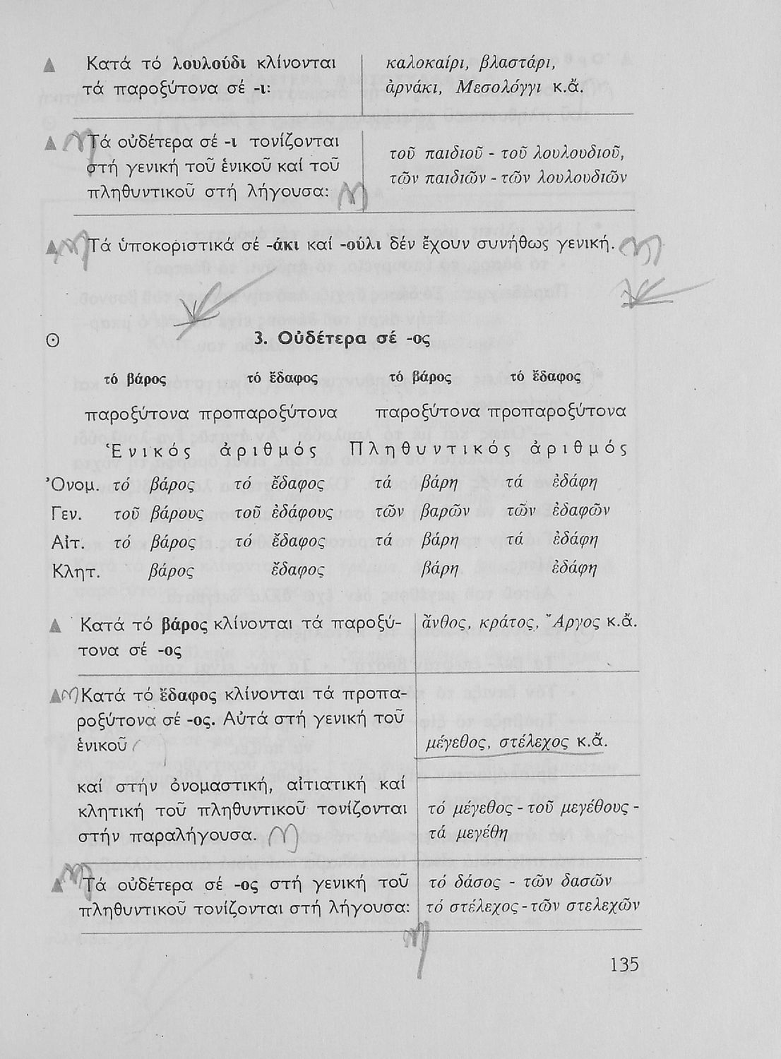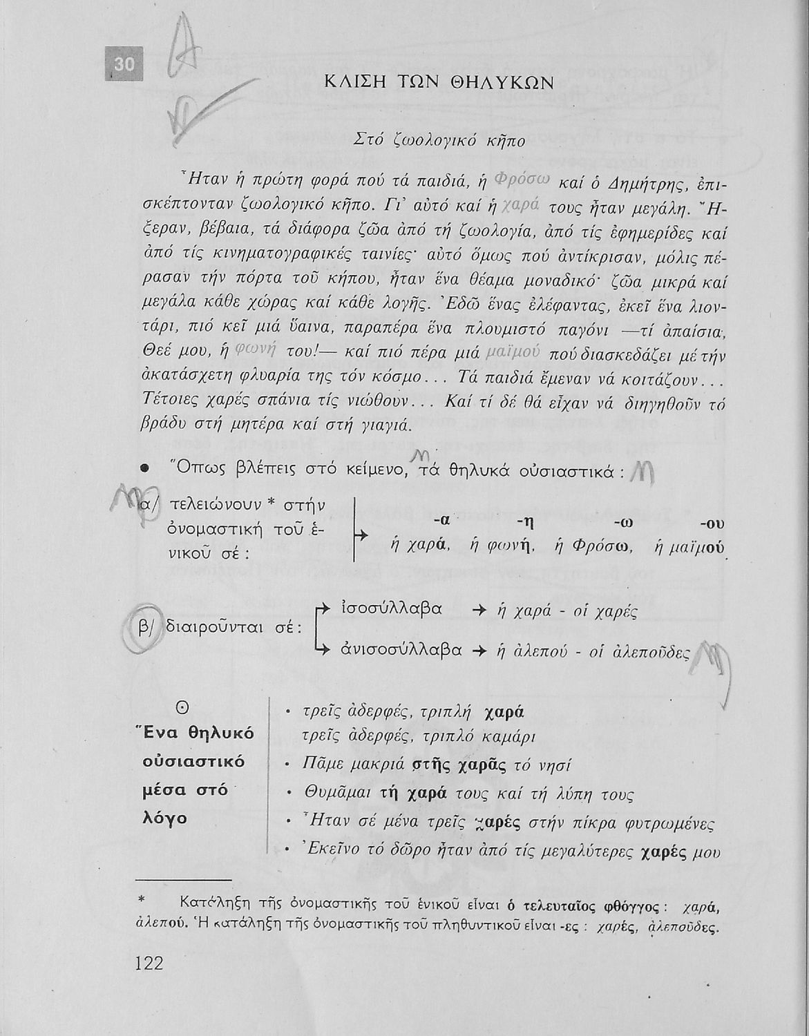 Σχολικό εγχειρίδιο Γλώσσας για την Ε΄ και ΣΤ΄ Δημοτικού για τη γραμματική της Ελληνικής γλώσσας με κανόνες και παραδείγματα. Απευθύνεται στους μαθητές των ανώτερων τάξεων του Δημοτικού Σχολείου. Στο επίμετρο υπάρχουν πίνακες με ανώμαλους σχηματισμούς ρημάτων.