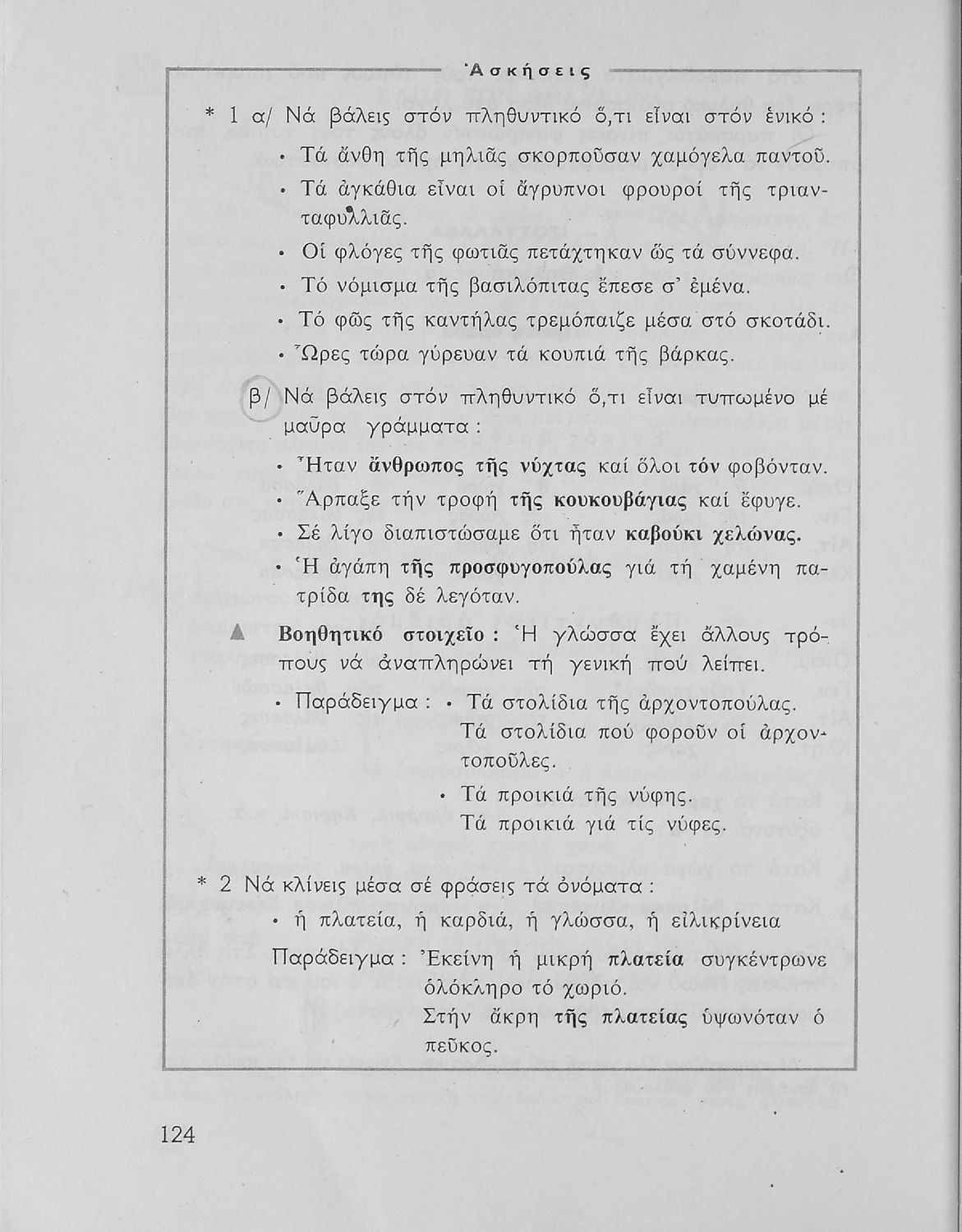 Σχολικό εγχειρίδιο Γλώσσας για τις Ε΄ και ΣΤ΄ Δημοτικού που περιλαμβάνει με κείμενα και ασκήσεις για τη διδασκαλία των γραμματικών φαινομένων.