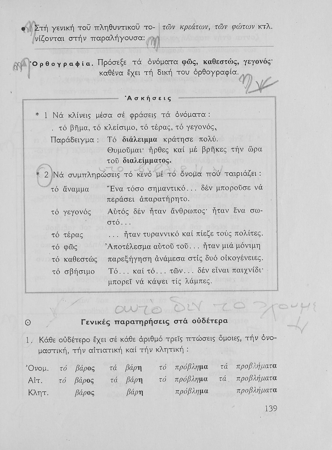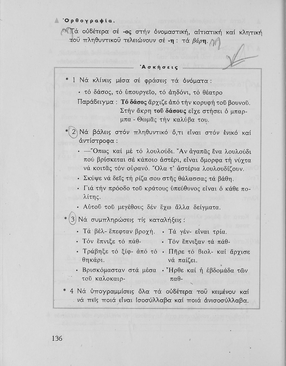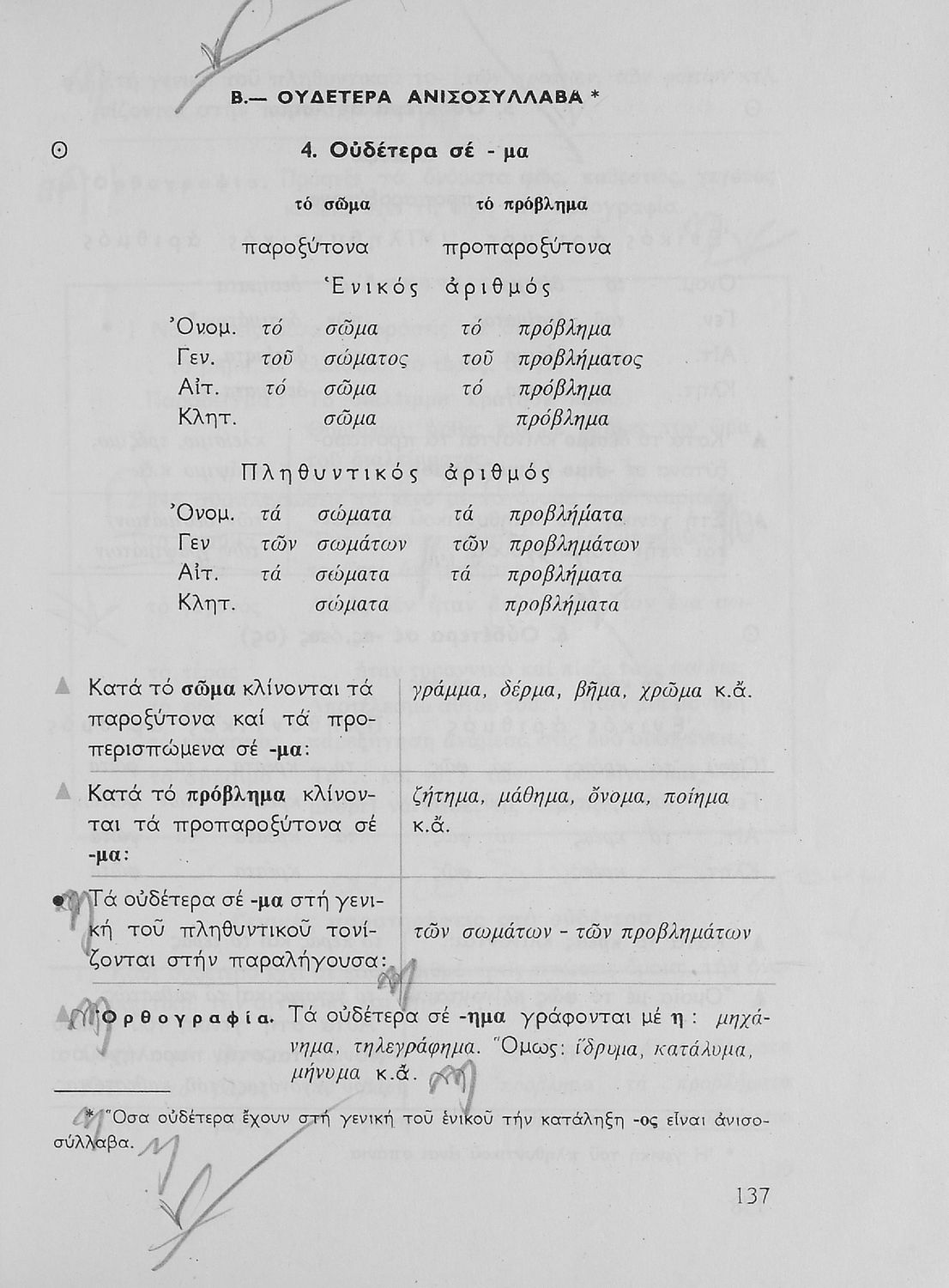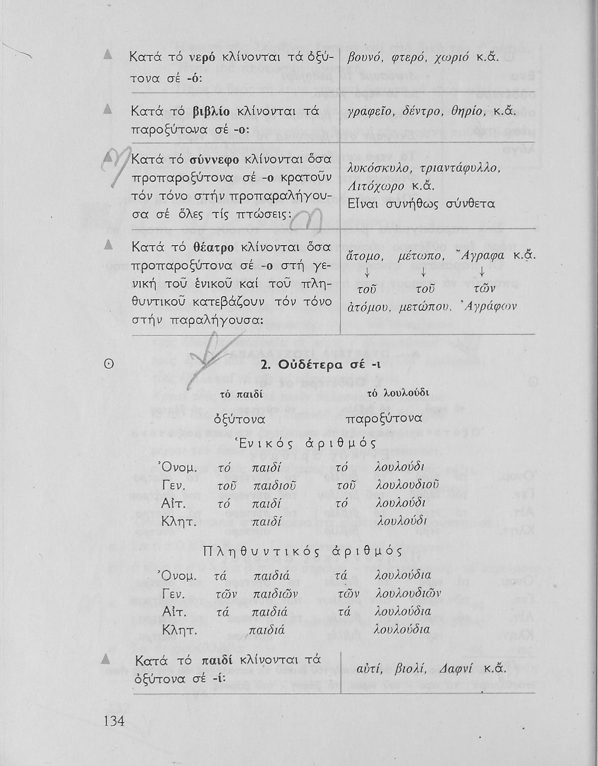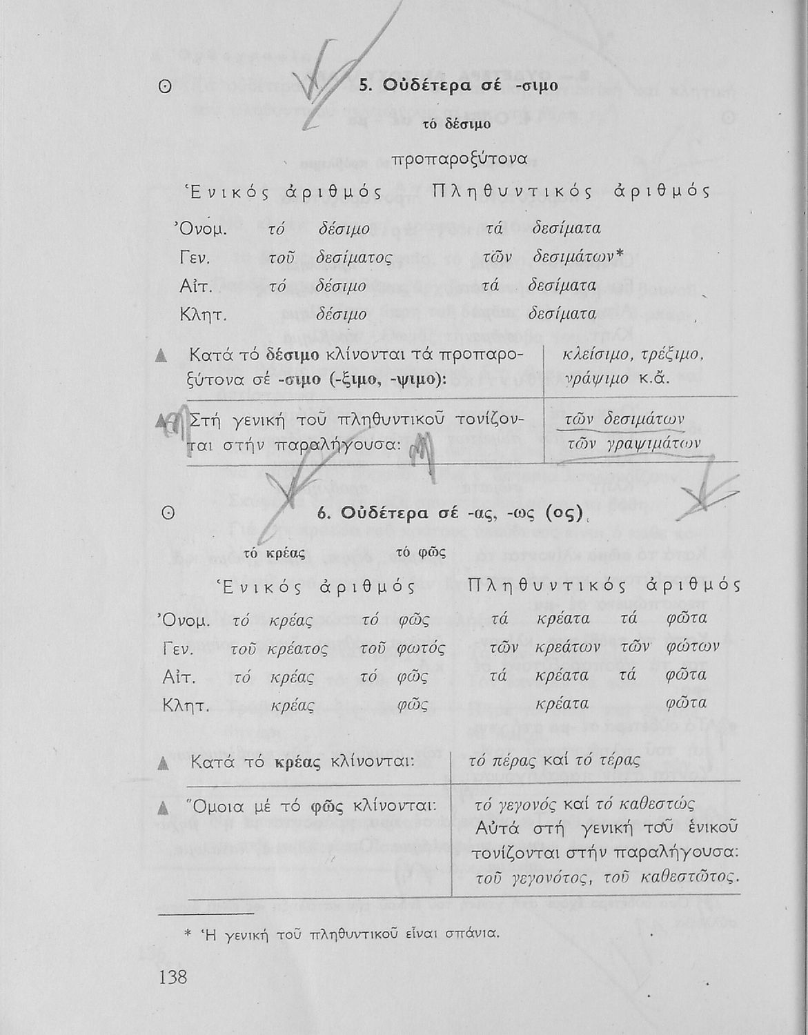 Σχολικό εγχειρίδιο για την Ε΄ και ΣΤ΄ τάξη Δημοτικού με γραμματικούς κανόνες και παραδείγματα για τα κλιτά και άκλιτα μέρη του λόγου.