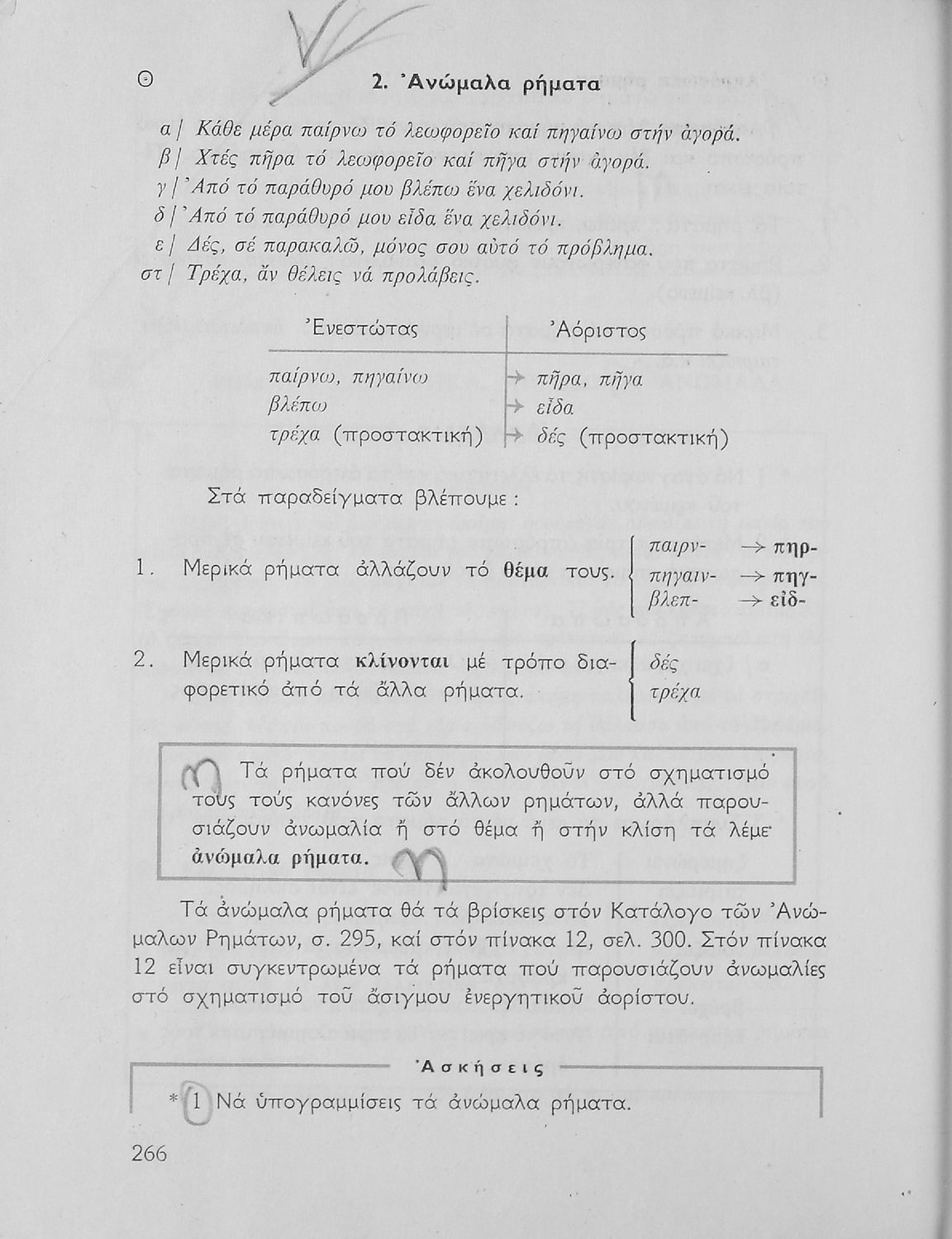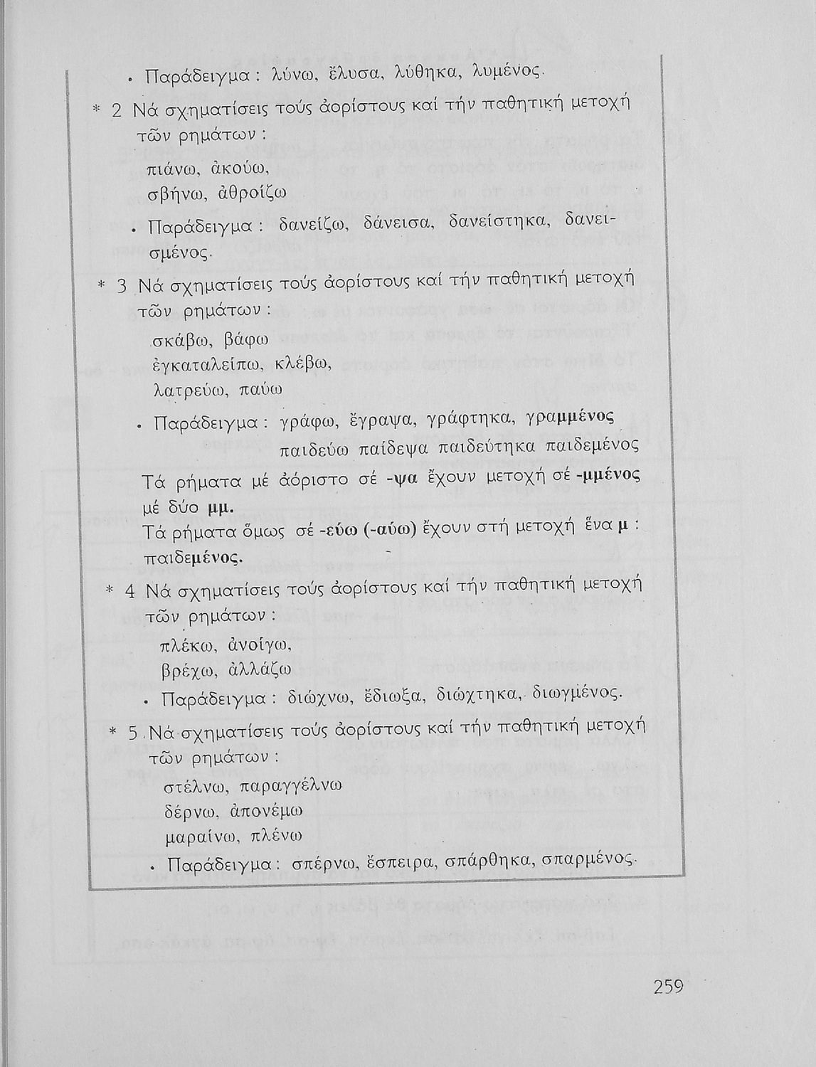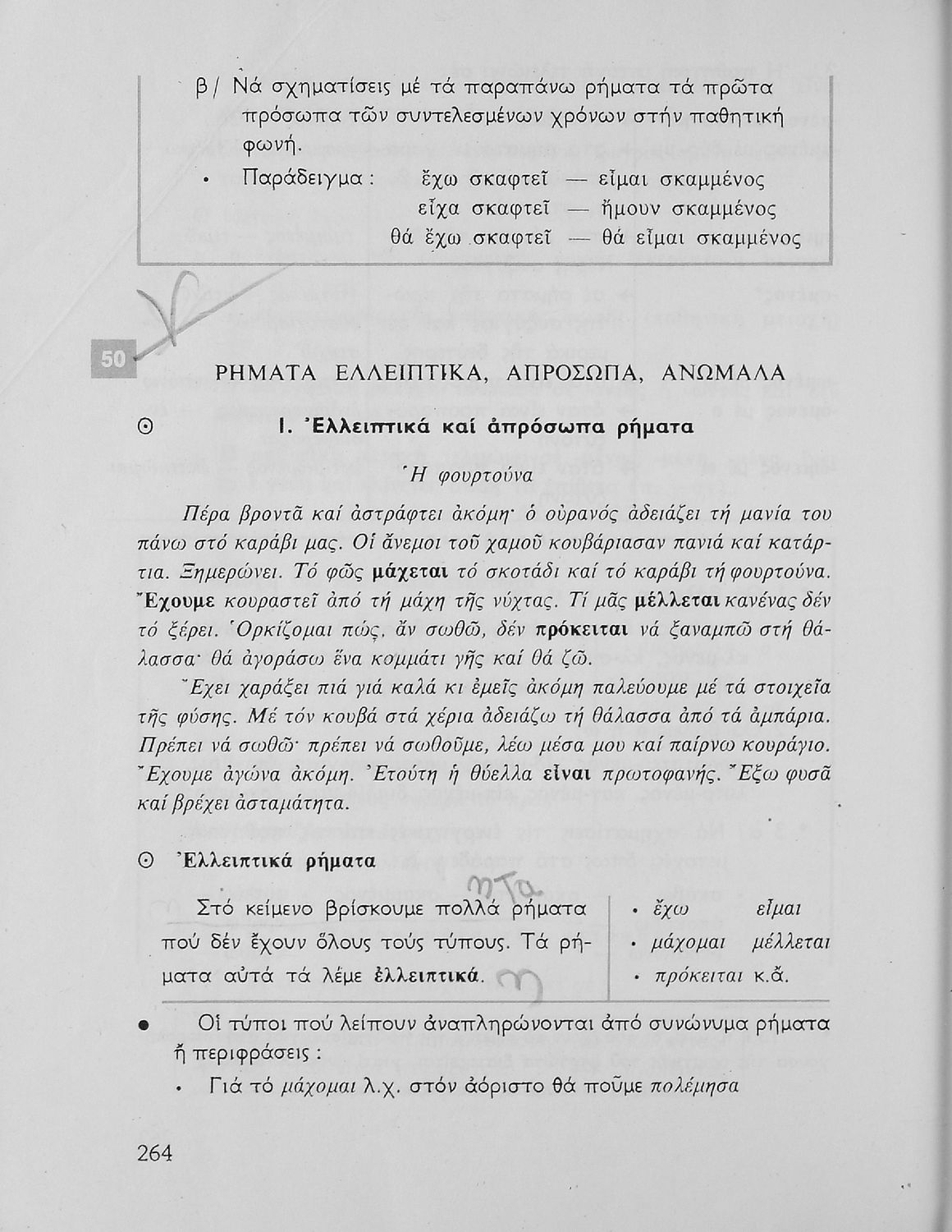 Σχολικό εγχειρίδιο της Ε΄ και ΣΤ΄ τάξης Δημοτικού για την γραμματική της ελληνικής γλώσσας με κανόνες και παραδείγματα. Στο επίμετρο υπάρχουν πίνακες με ανώμαλους σχηματισμούς ρημάτων.